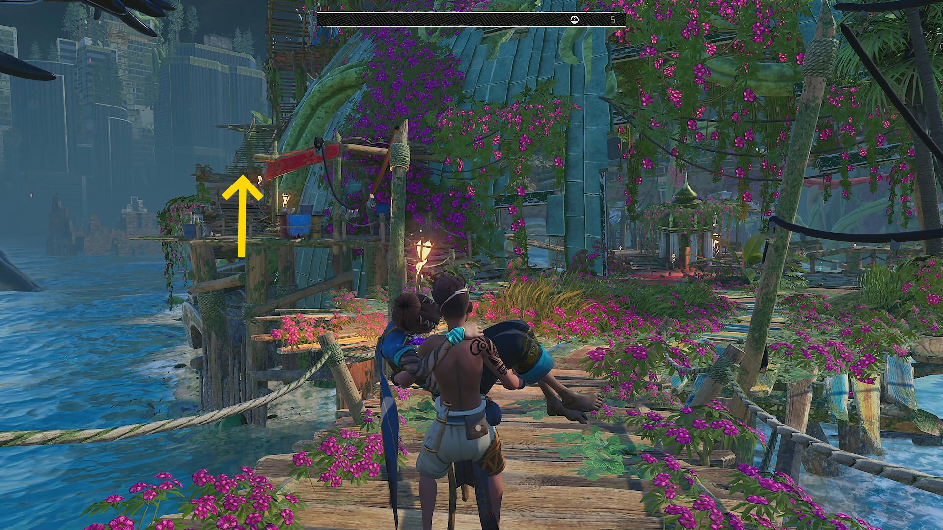 - 花の種があった小屋を背にして左前方、今まで進めなかったスロープが完成しているのでそちらに進む