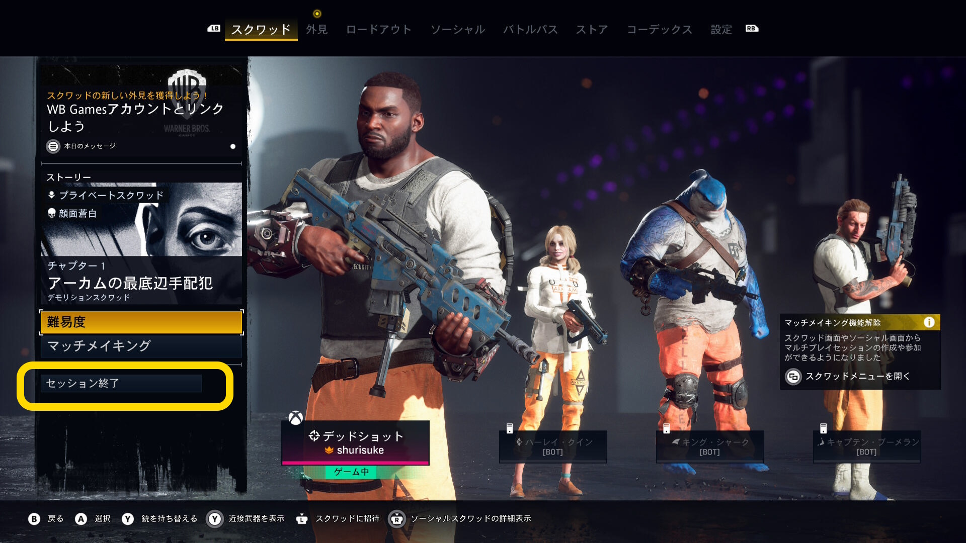 - シナリオ的にはスクワッドメンバー全員がバットマンにやられるものとなっている