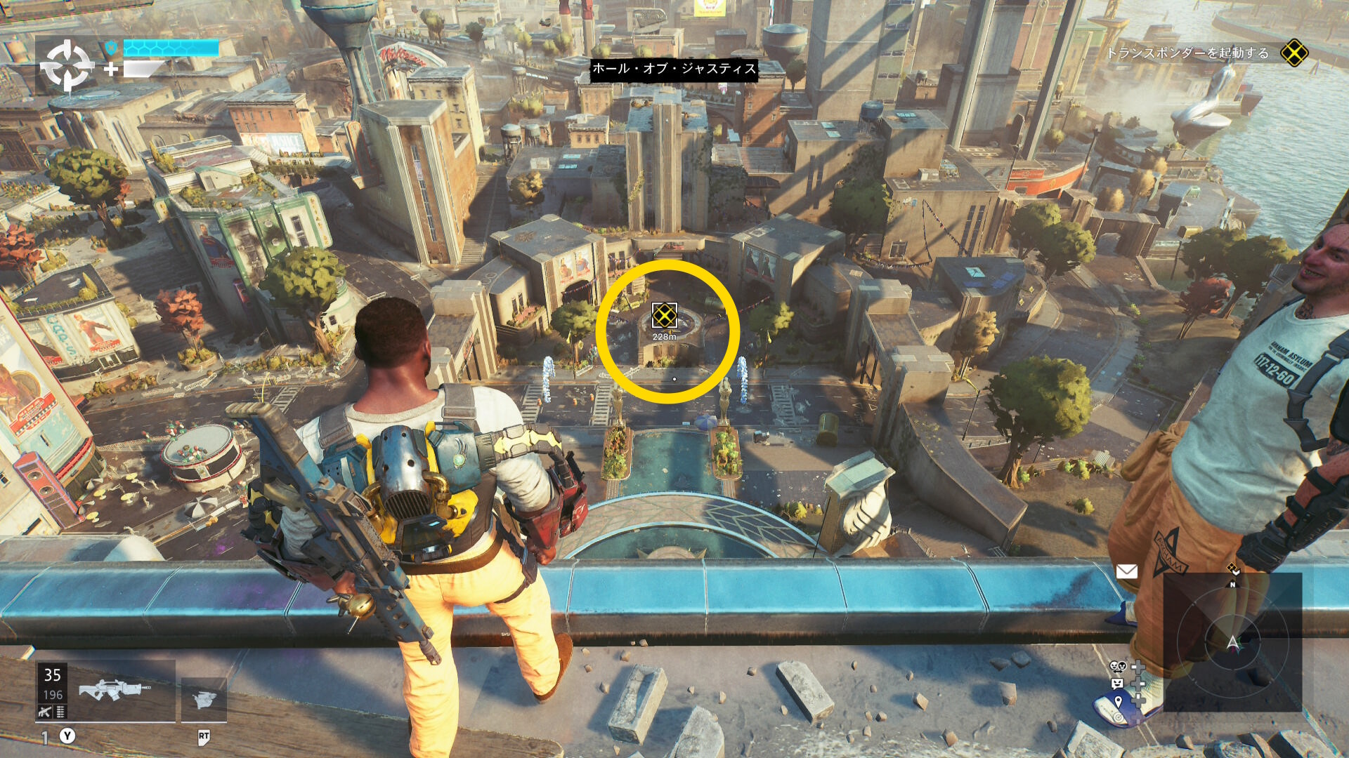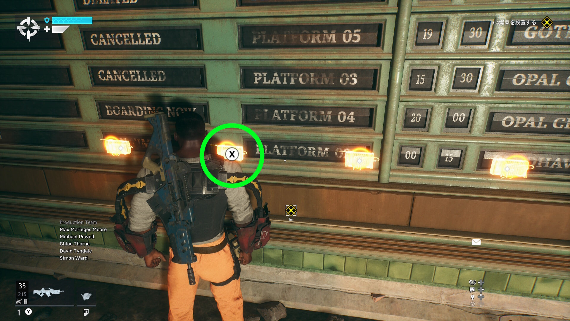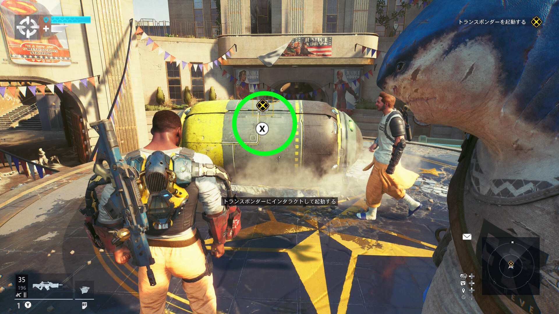 - カットシーン後、眼下に見えるマーカーにトランスポンダーがあるのでそこに向かう