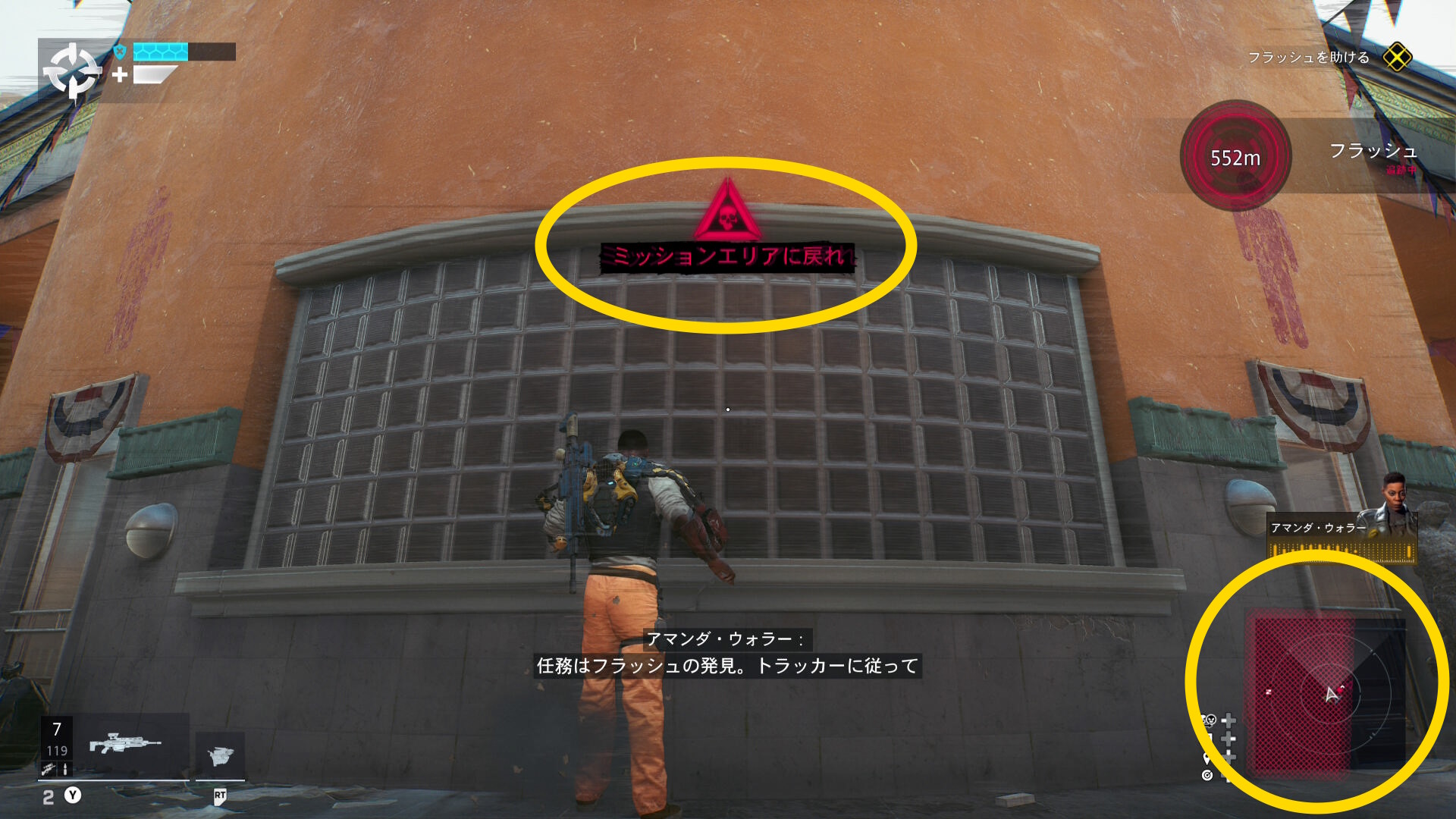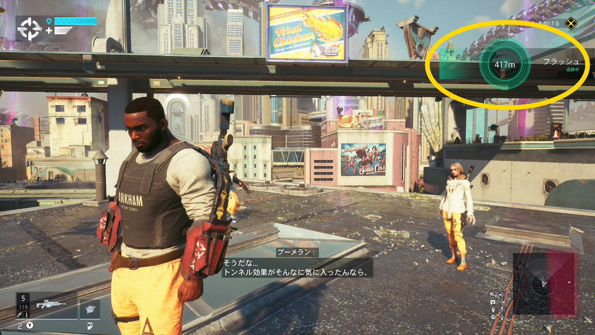 - フラッシュとの距離が残り100メートルほどになるとマーカーが出現し、最終的にあるビルの屋上に到着する