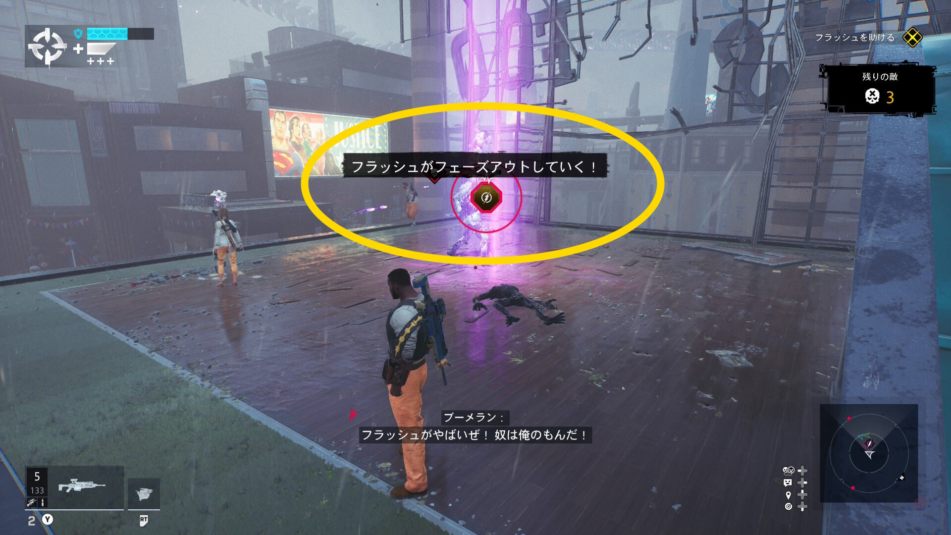 - なお、フラッシュがいる屋上から離れると(実際には離れなくても)敵がフラッシュを直接攻撃することがある