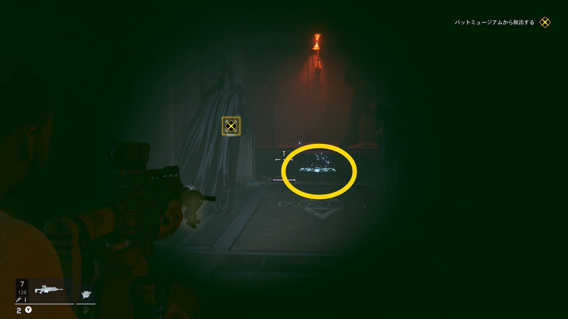 - ミュージアム内に(バットマン以外の)敵は出現しないが、床に何箇所かバットマンマークが描かれているところがある