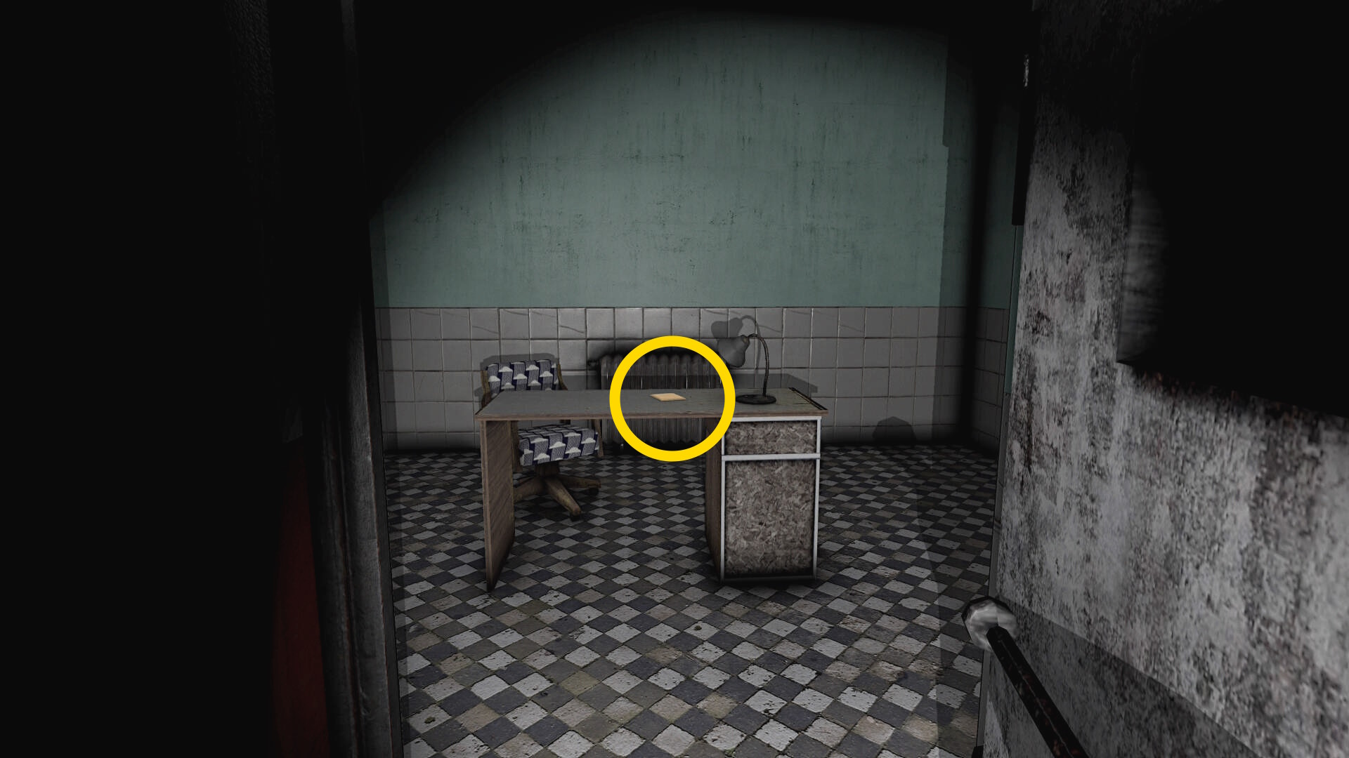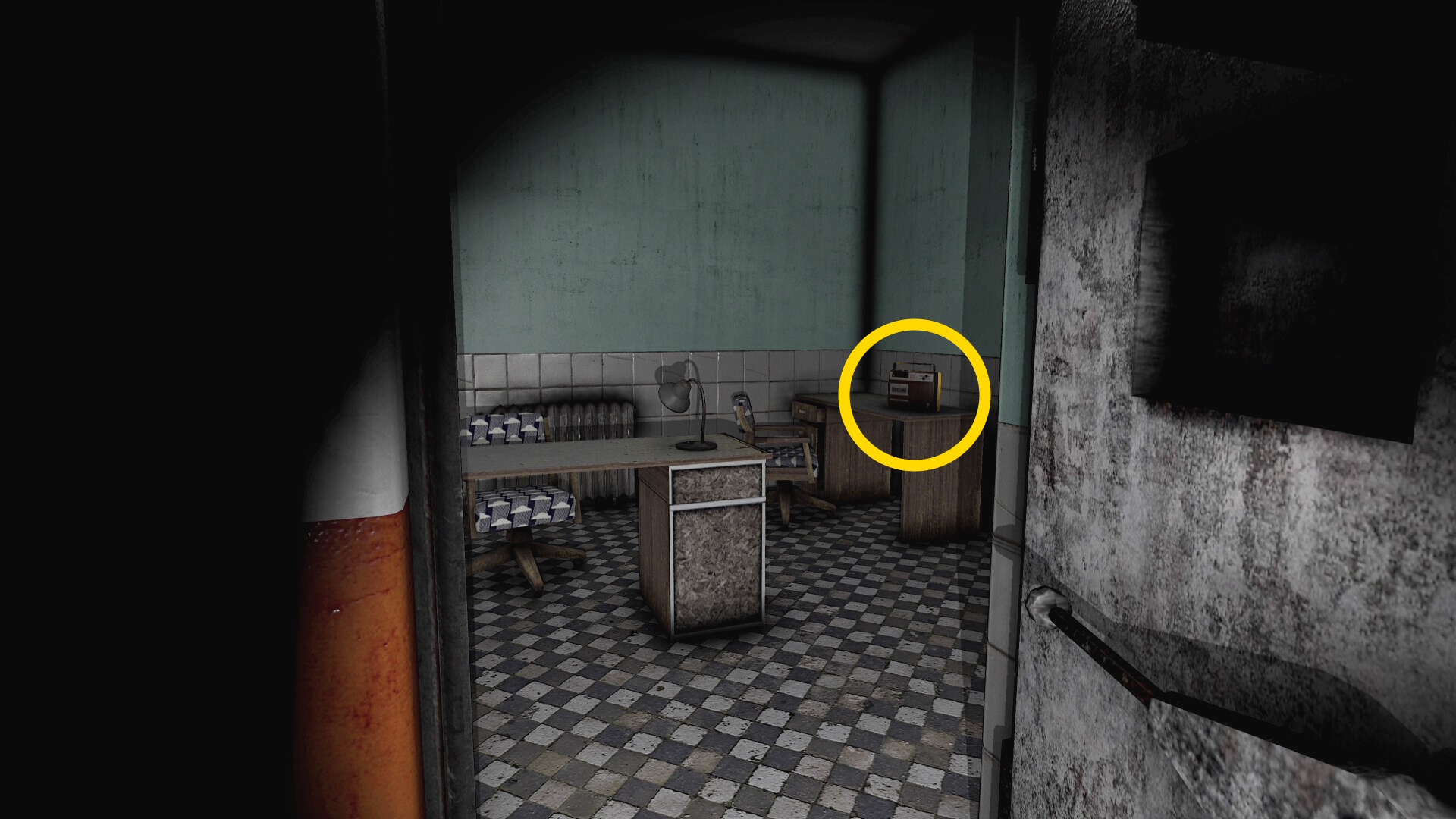 - 部屋を出て左に進み、ドアを通過してしまうとこの廊下に戻れなくなるので注意