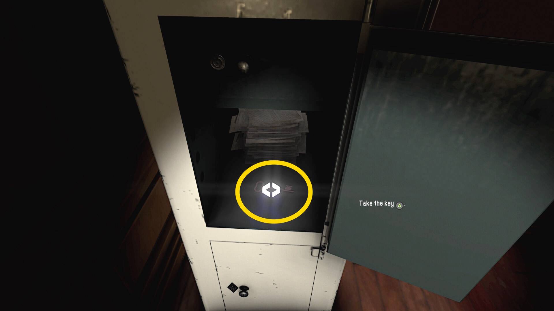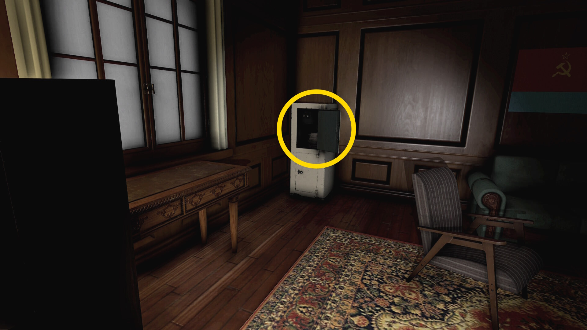 - コンピューターを離れ、右を向くと白い金庫が開いている