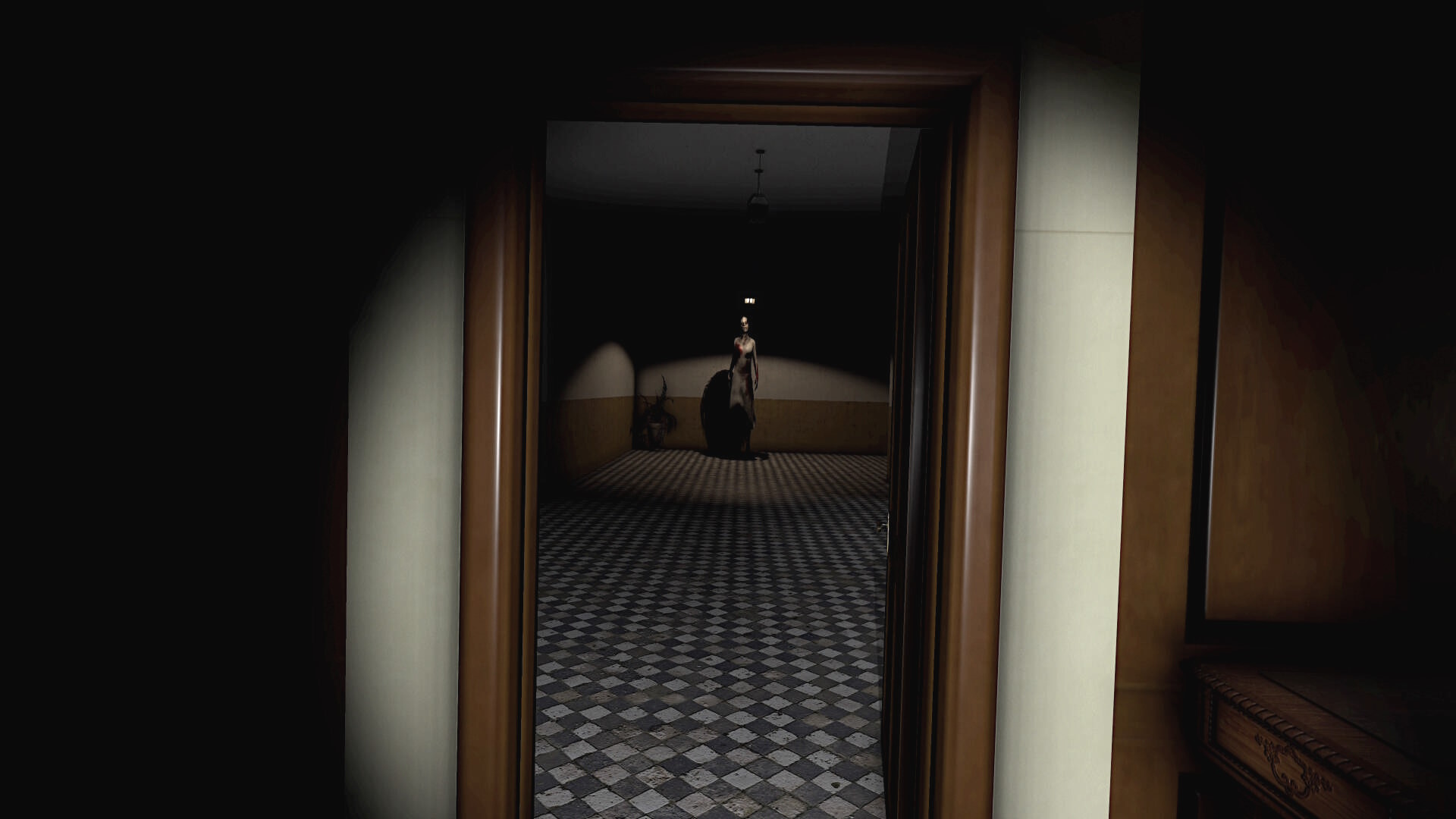 - もう一度廊下に出ると突き当りに長身の幽霊が立っている
