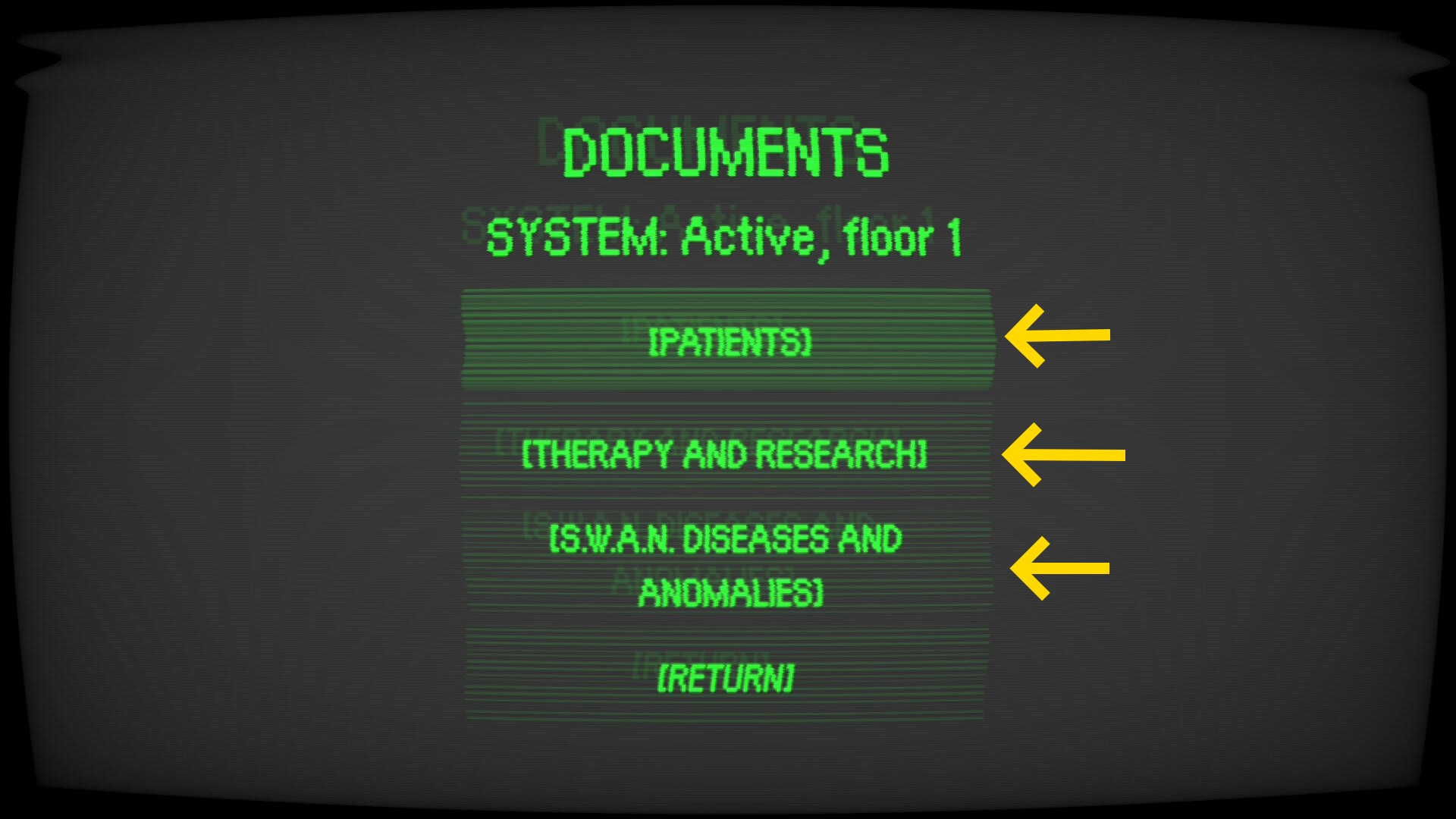 - それぞれ Documentation – Patients/Documentation – Therapy methods and research/Documentation – S.W.A.N. diseases and anomalies に記録される