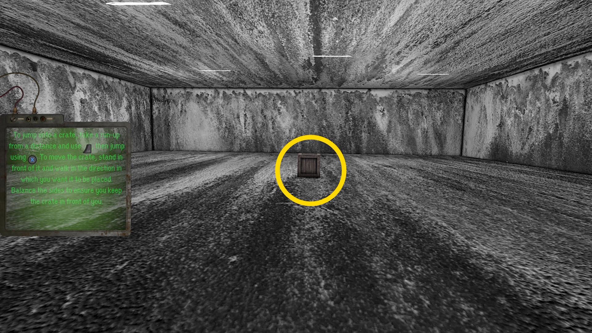 - まずは奥に見える木箱に乗る