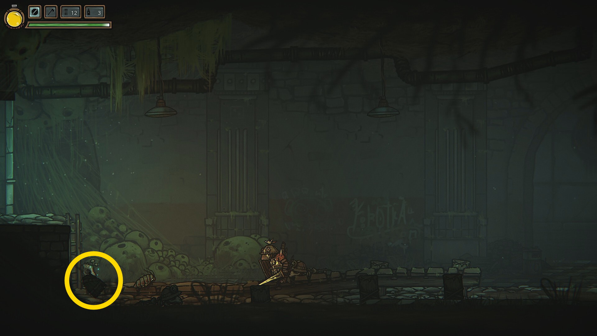 - ラダーを下りて左に進むとグラブ(石頭タイプ)が2体出現