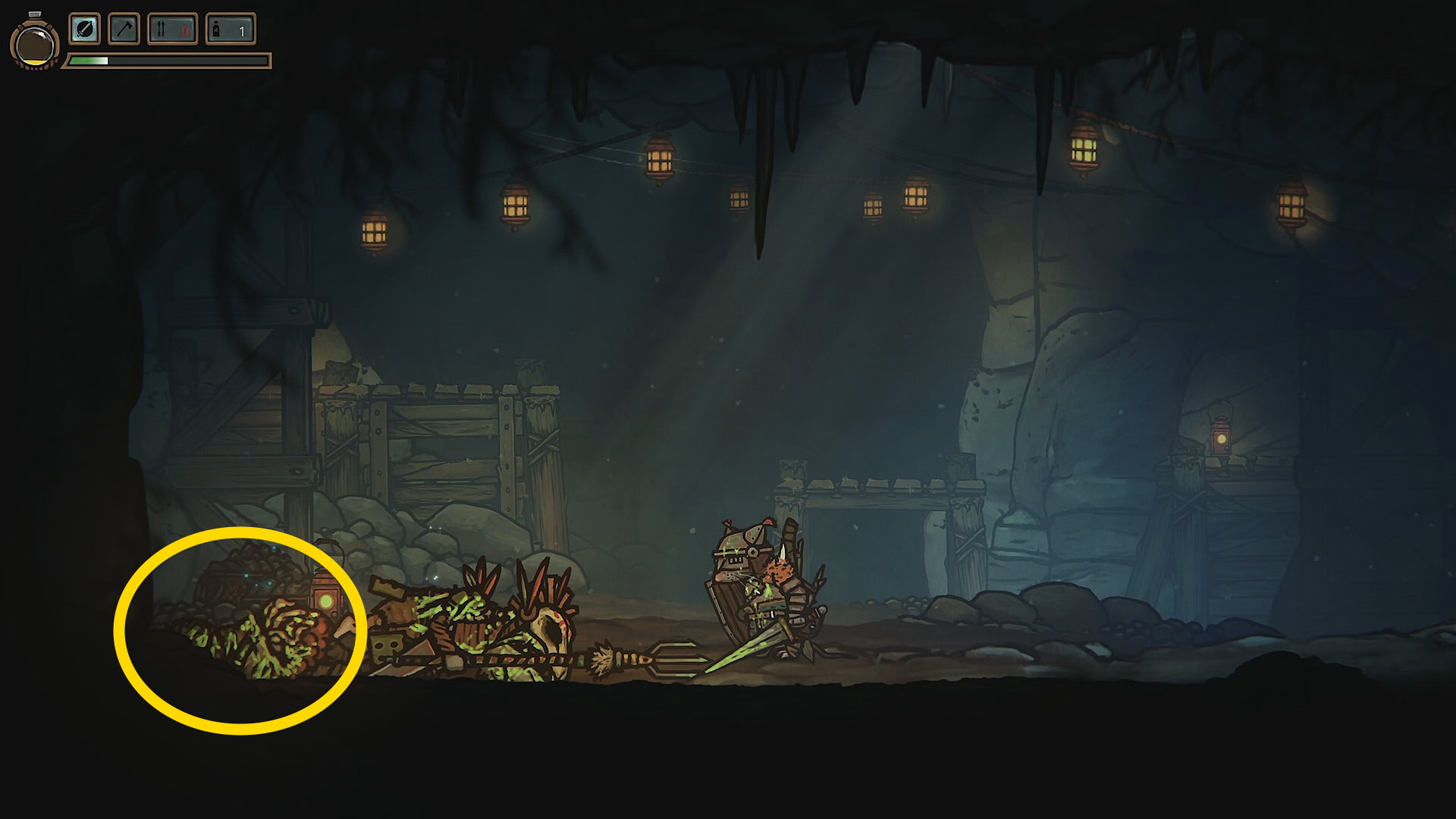 - 鉱夫の家を過ぎた辺りで棍棒持ち2体と戦闘開始(デニスも戦ってくれる。ある程度は任せてもよい)