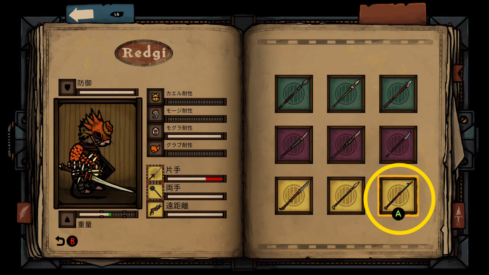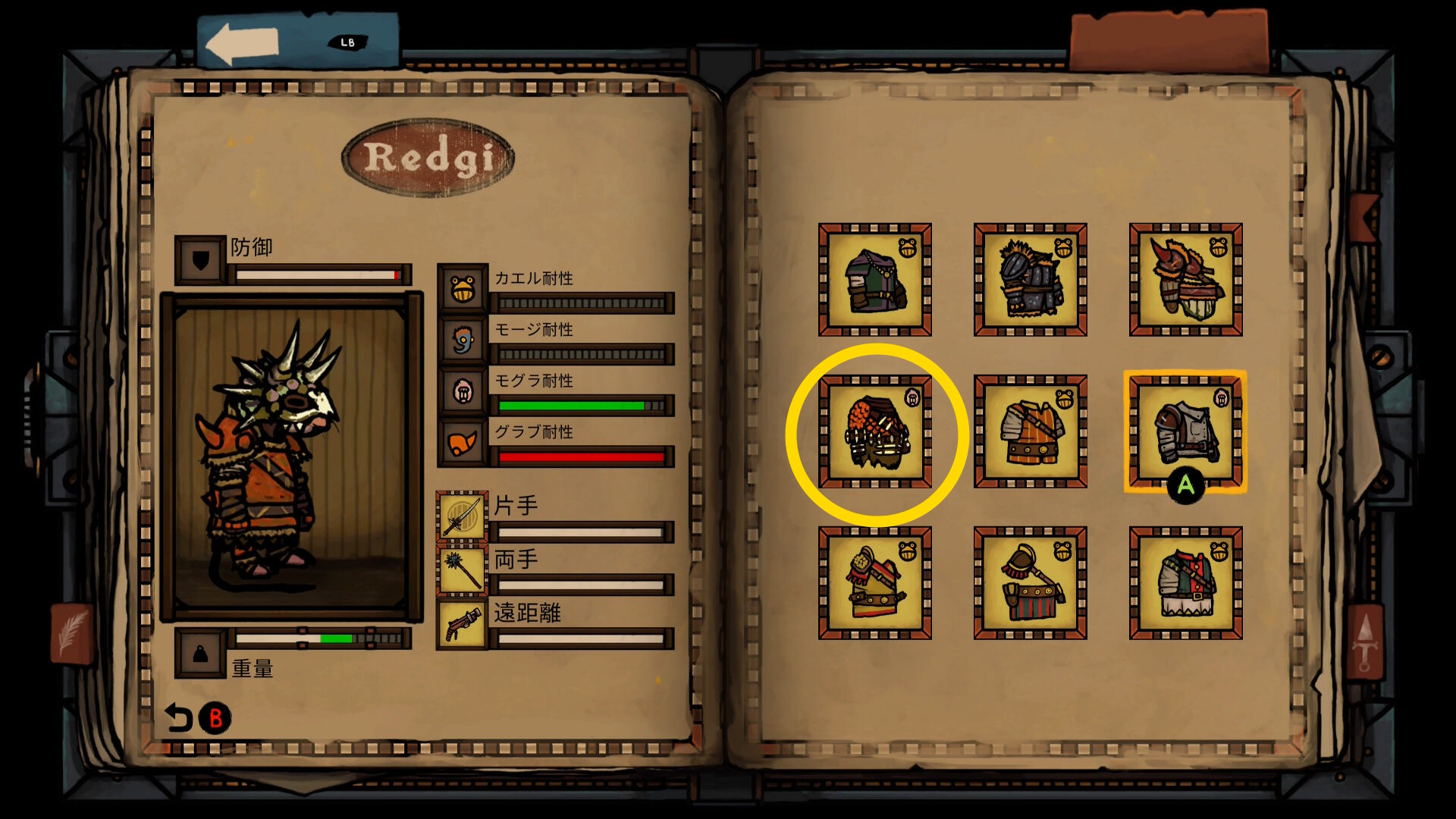 - アーマー:軽いアーマー + モグラ耐性のあるもの
