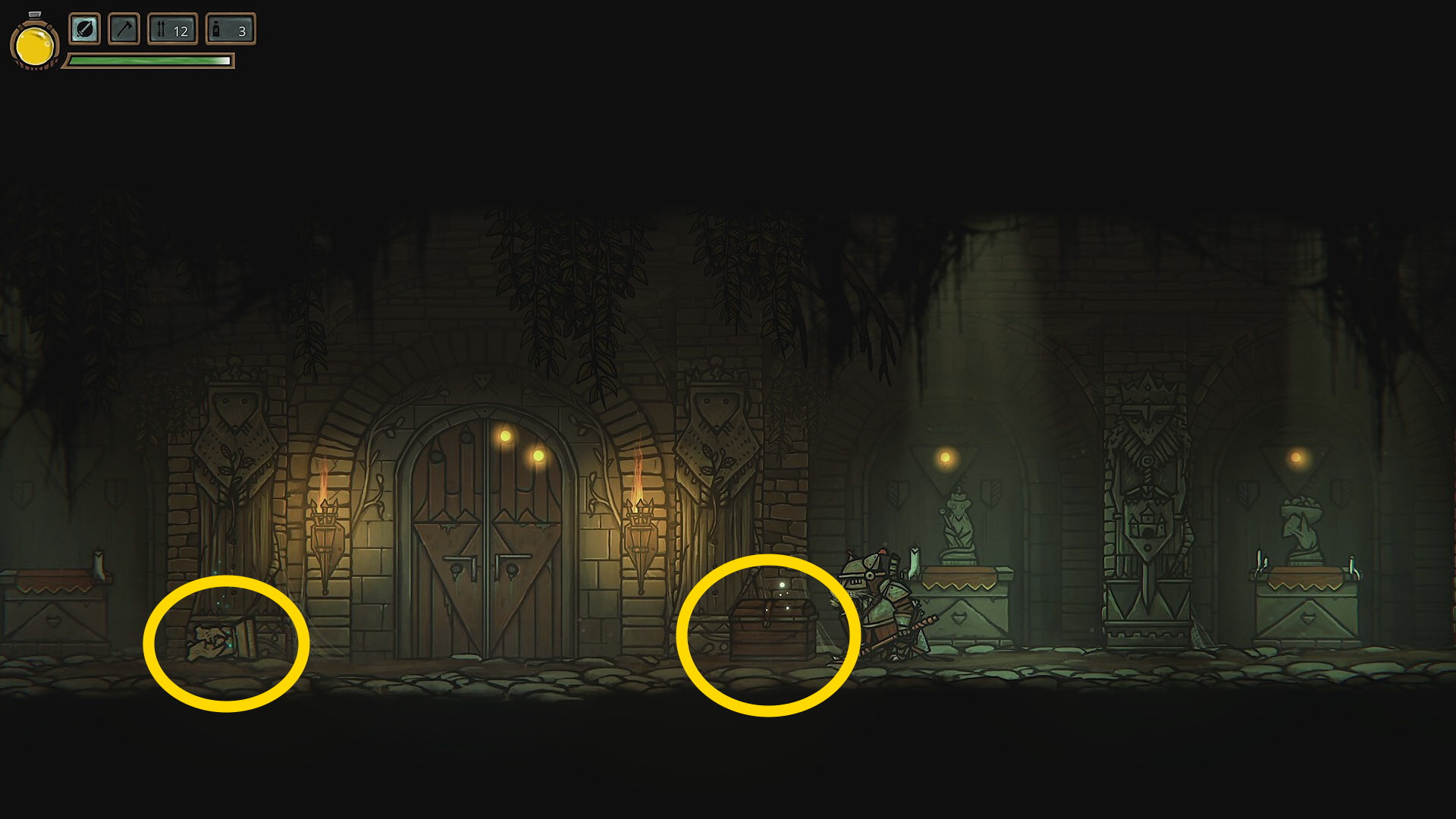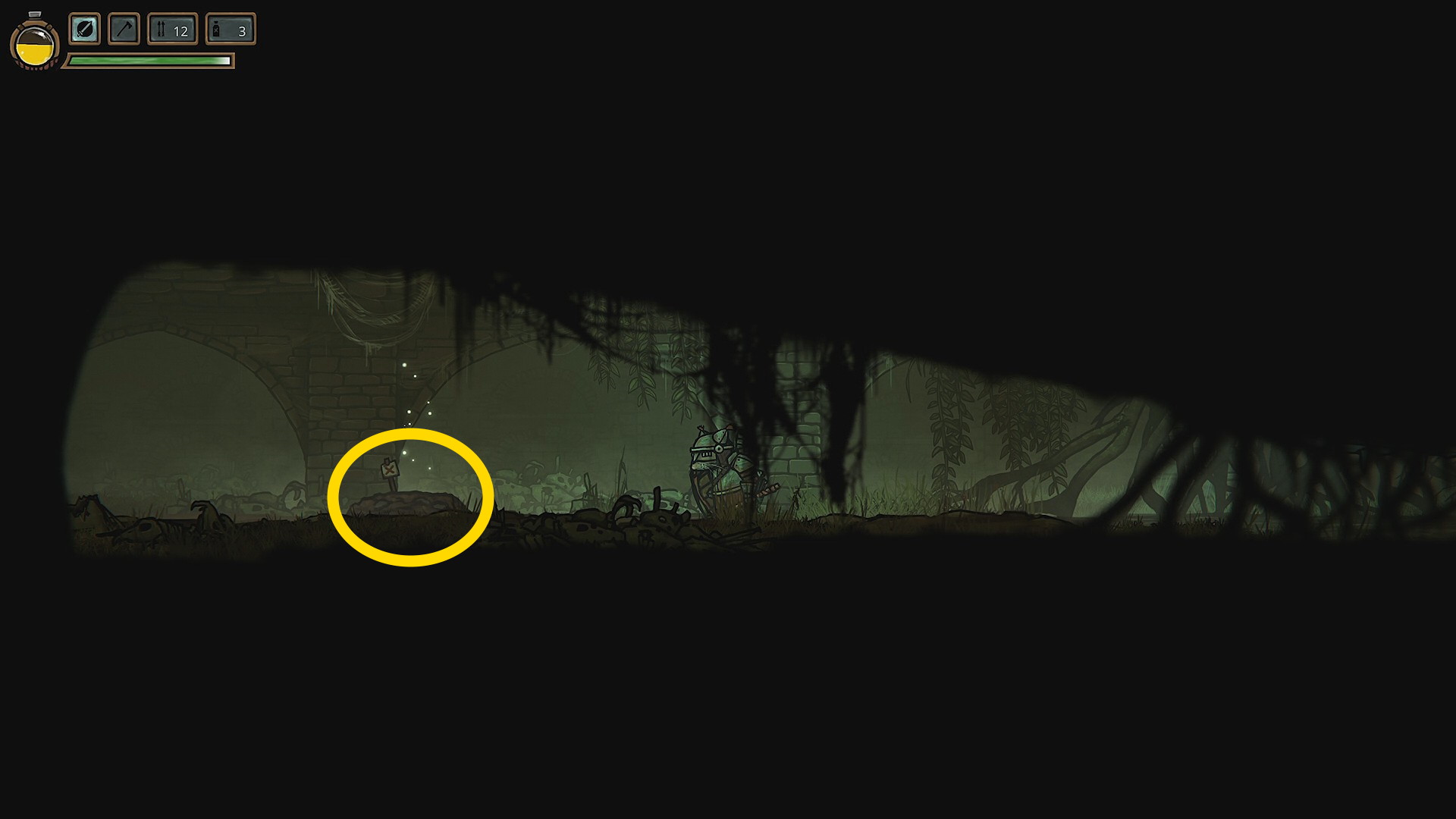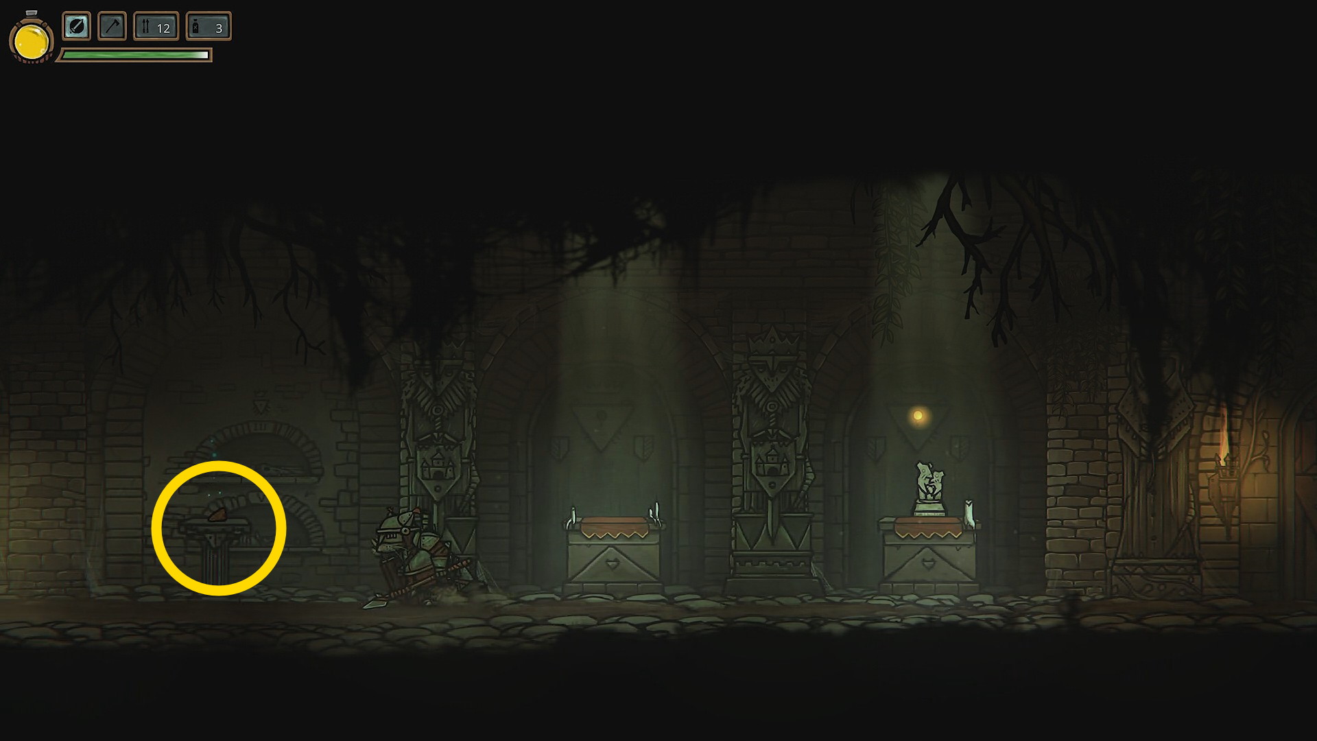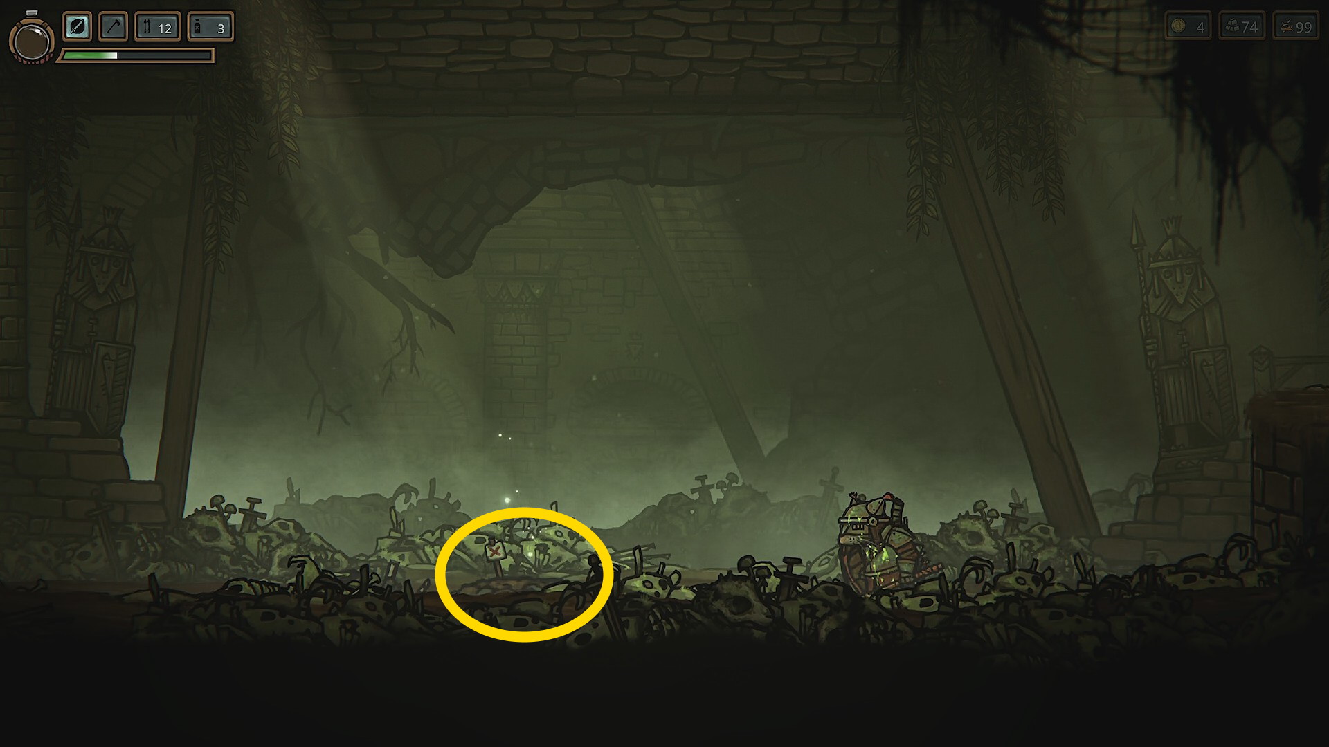 - なお、墳墓に入ると、このエリアをクリアするまで城に戻れなくなるため、装備などを整えていない場合はそれを行ってから入ること
