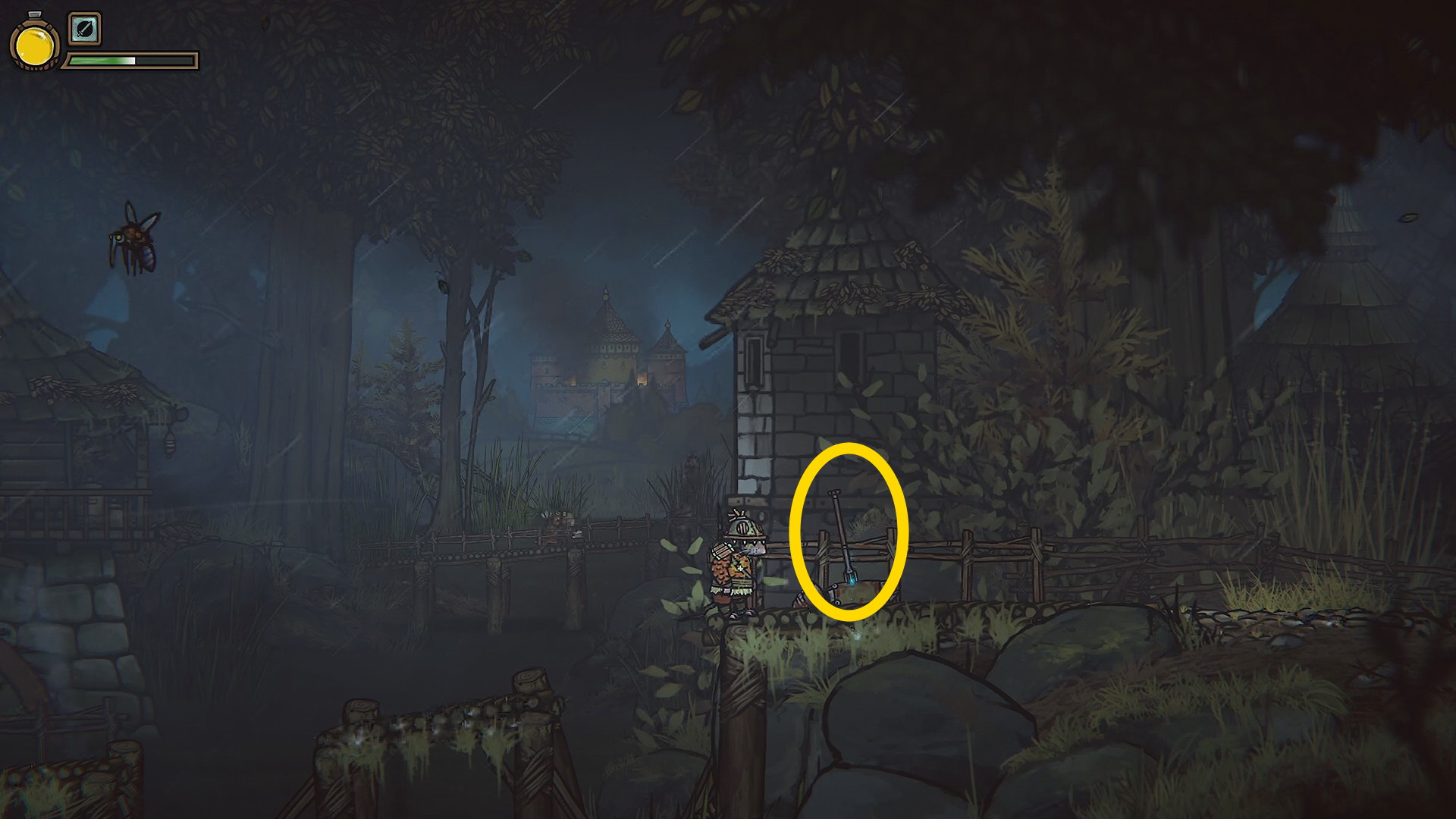- 会話後(じゃなくてもいいけど)、頭上の足場を移動して右上隅の死体から 片手剣 を回収(能力値は片手槍と変わらないので装備は各位の任意。当サイトでは片手槍のままいく)