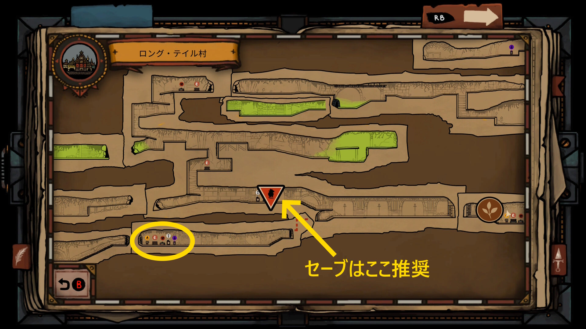 - すべて倒してからセーブした方が無難(なお、下画像のようにセーブは上層で行うことを推奨。近いのでやり直しする際のストレスが軽減される)