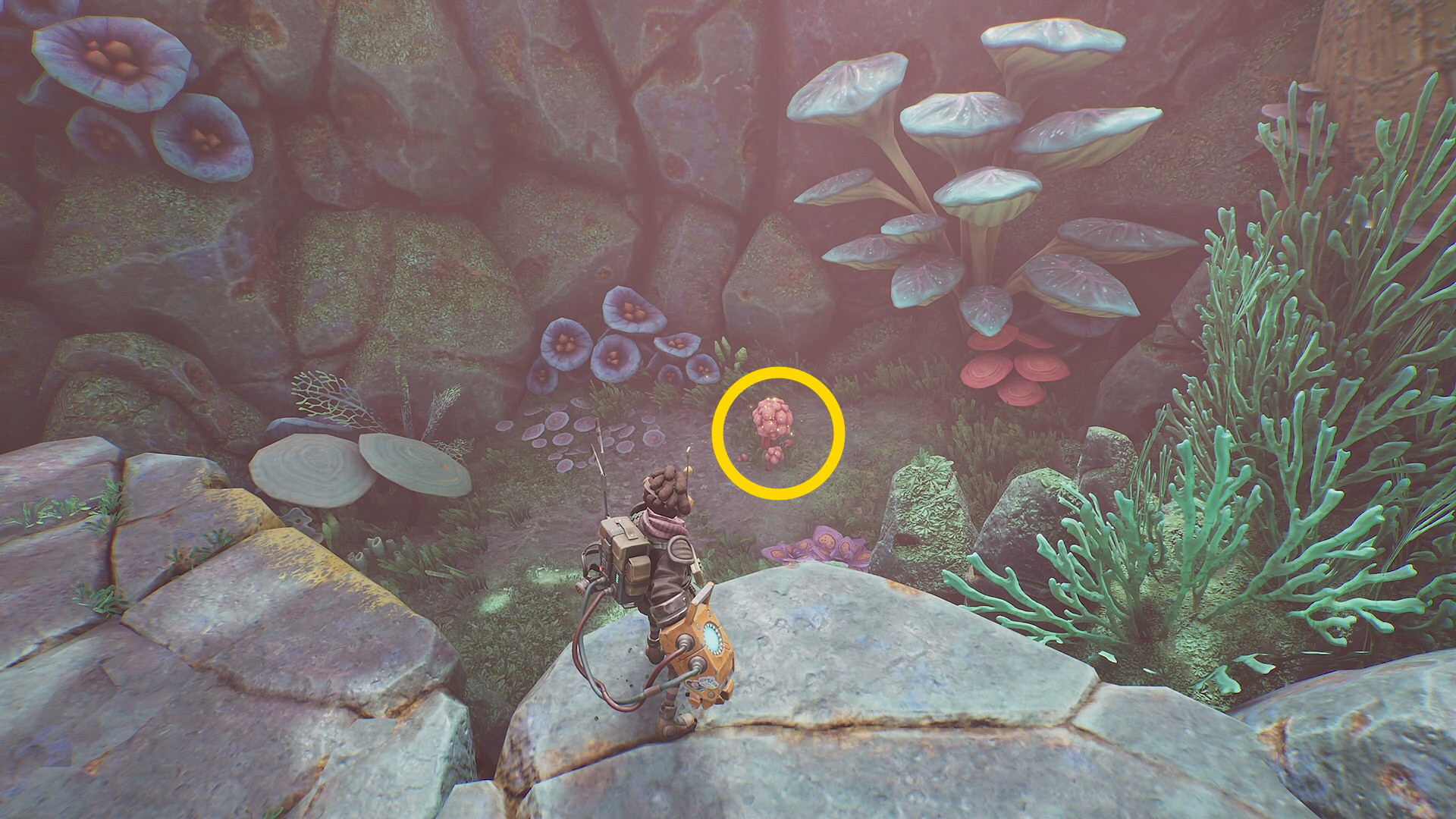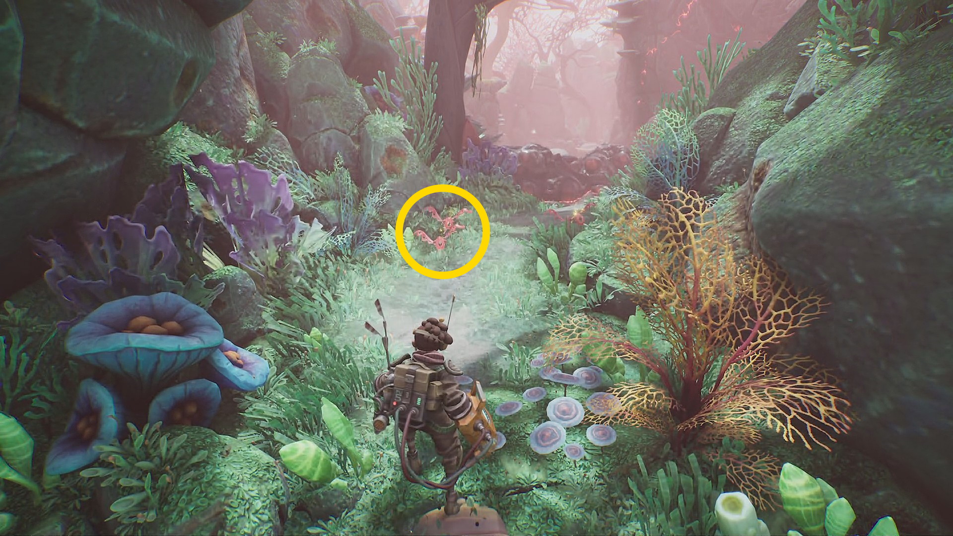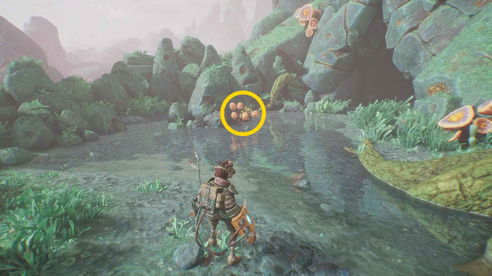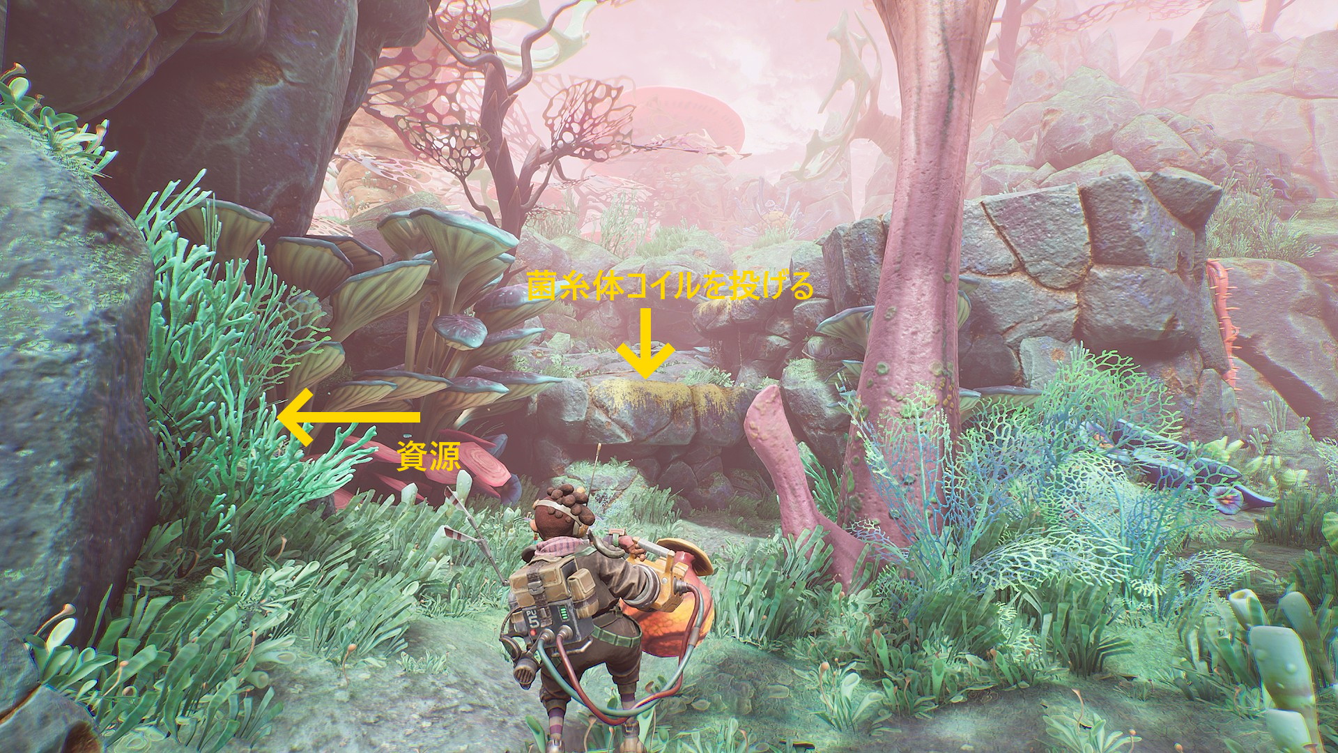 - 木に生えるランプ・フルーツを回収後、下におりると菌糸体コイルが目の前にある