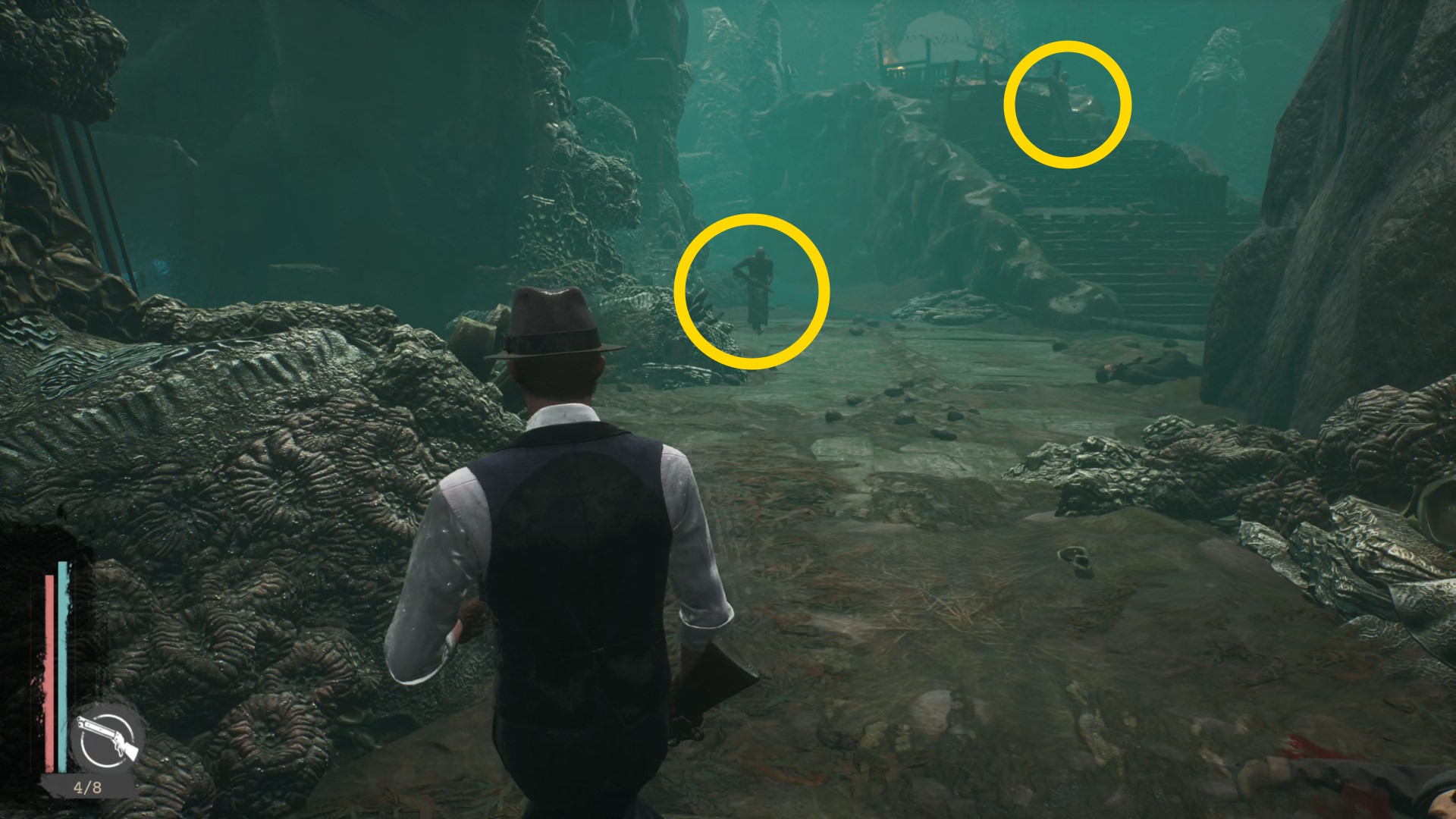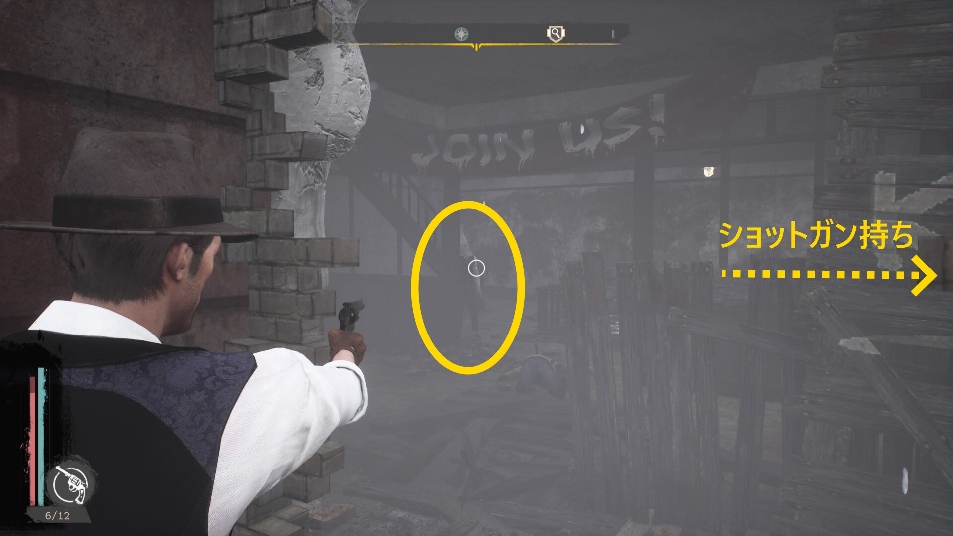 • 正面奥にフードを被ったリボルバー持ちが1人いる