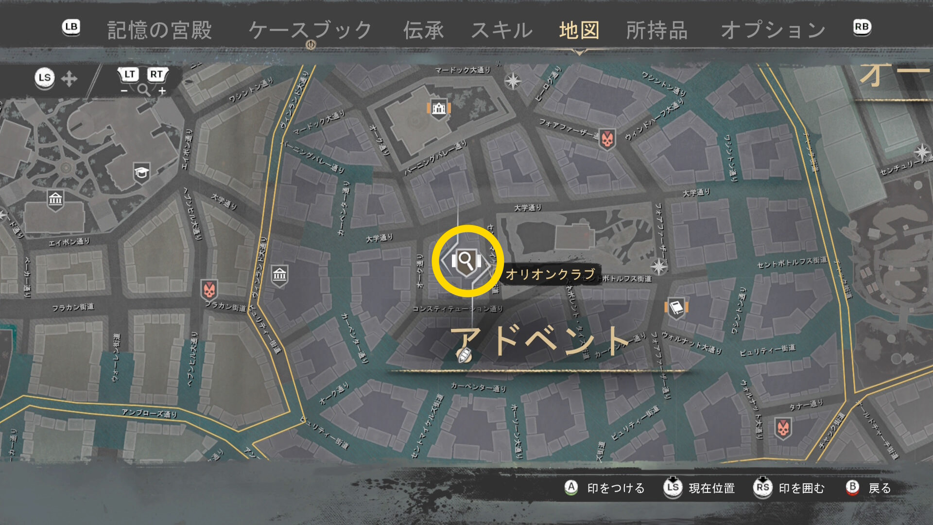 • オリオンクラブを出たら、ファストトラベルポイント「アドベント 中央」へ