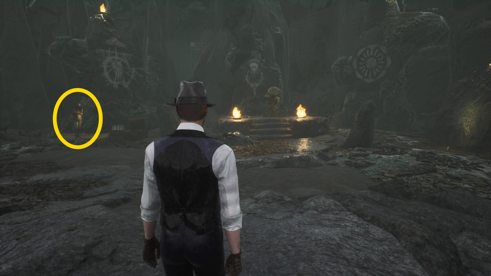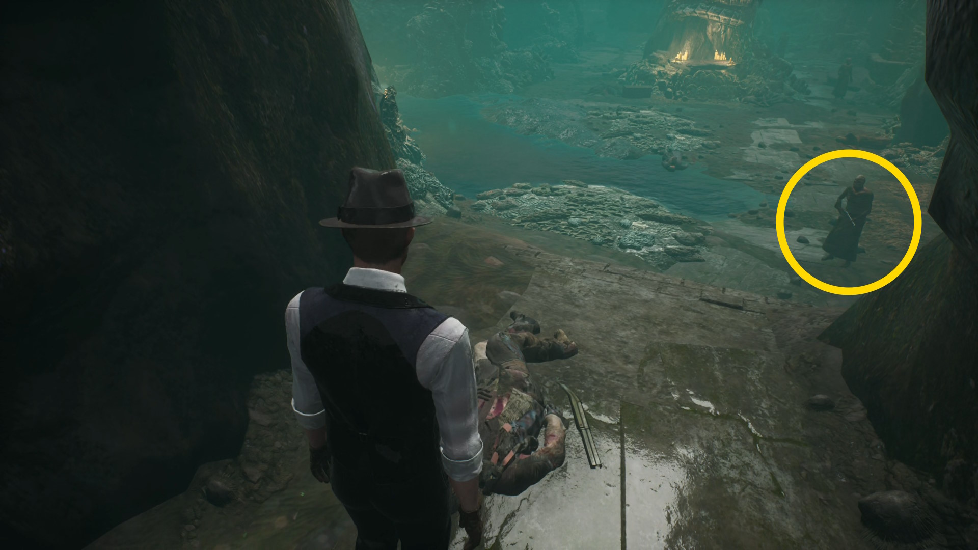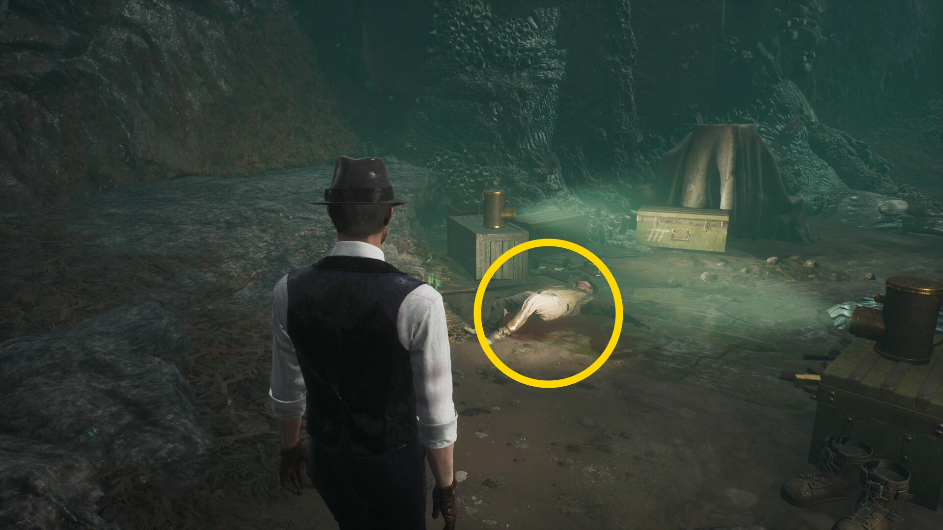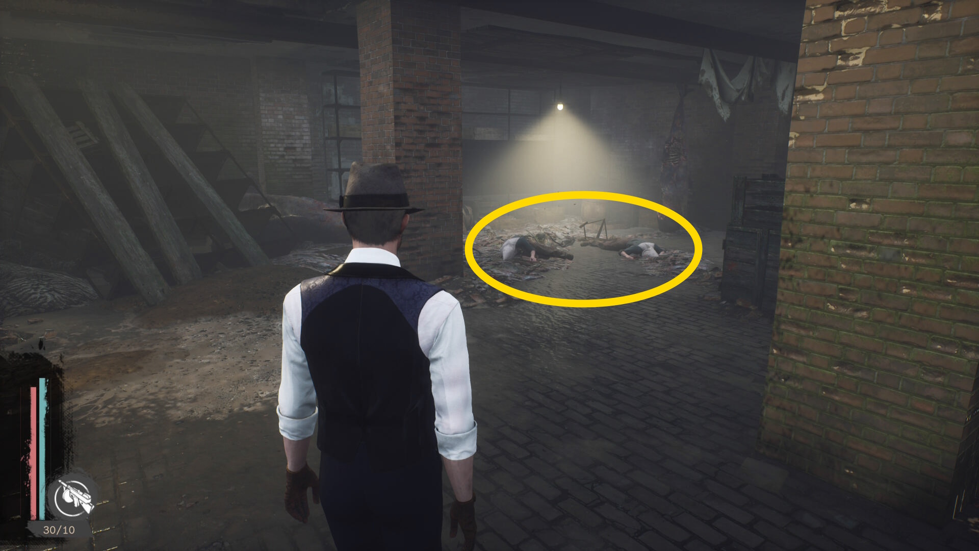 • 壁が消えるとフードの遺体が2体あるので調べる(どちらか片方でオーケー)