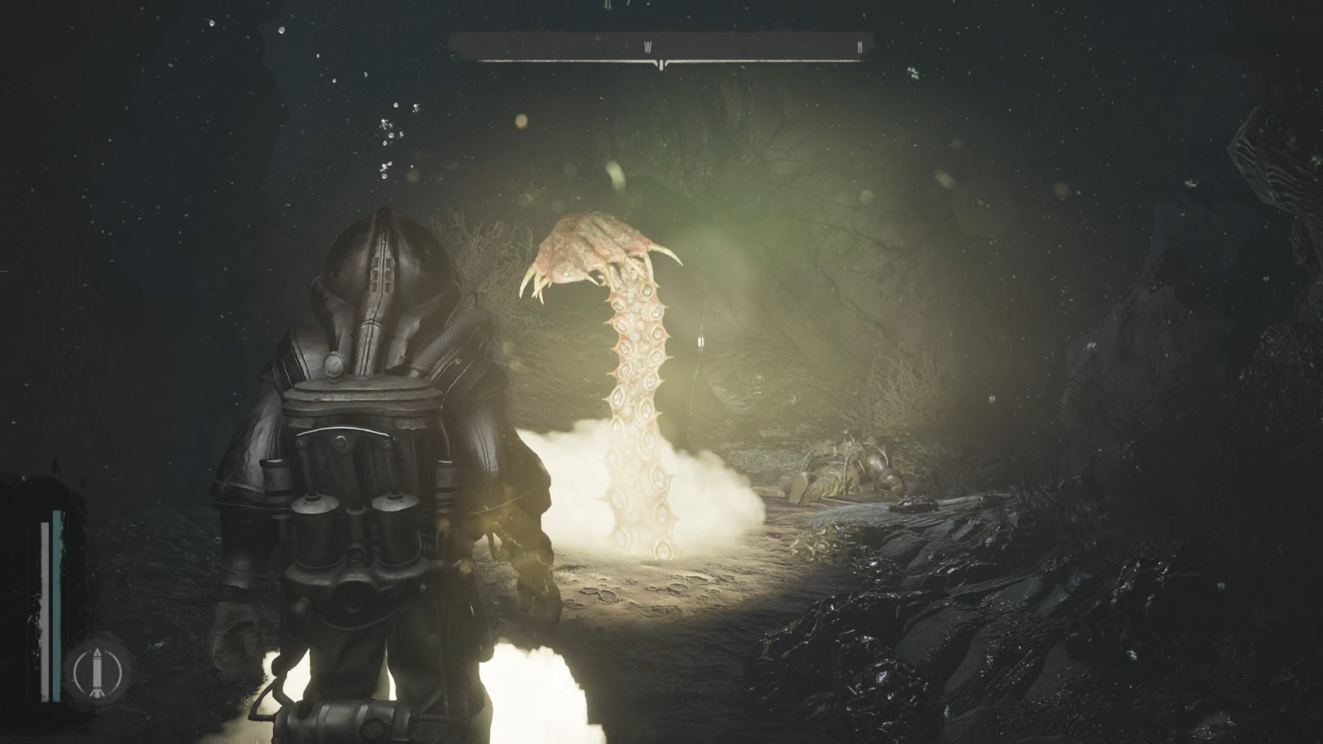 • 崖を登ると目の前の地面から細長い敵が出現する