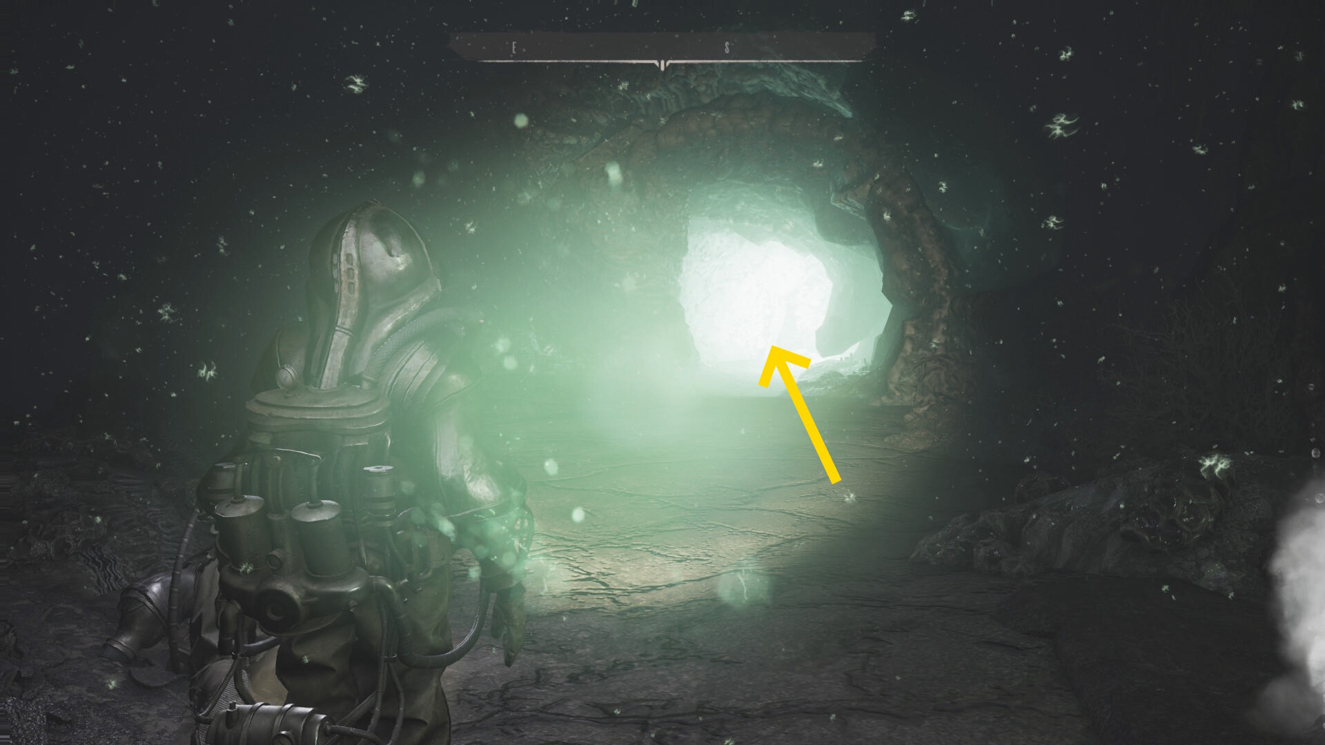 • 崖を登ると前方奥に明るく光る出口が見えてくる
