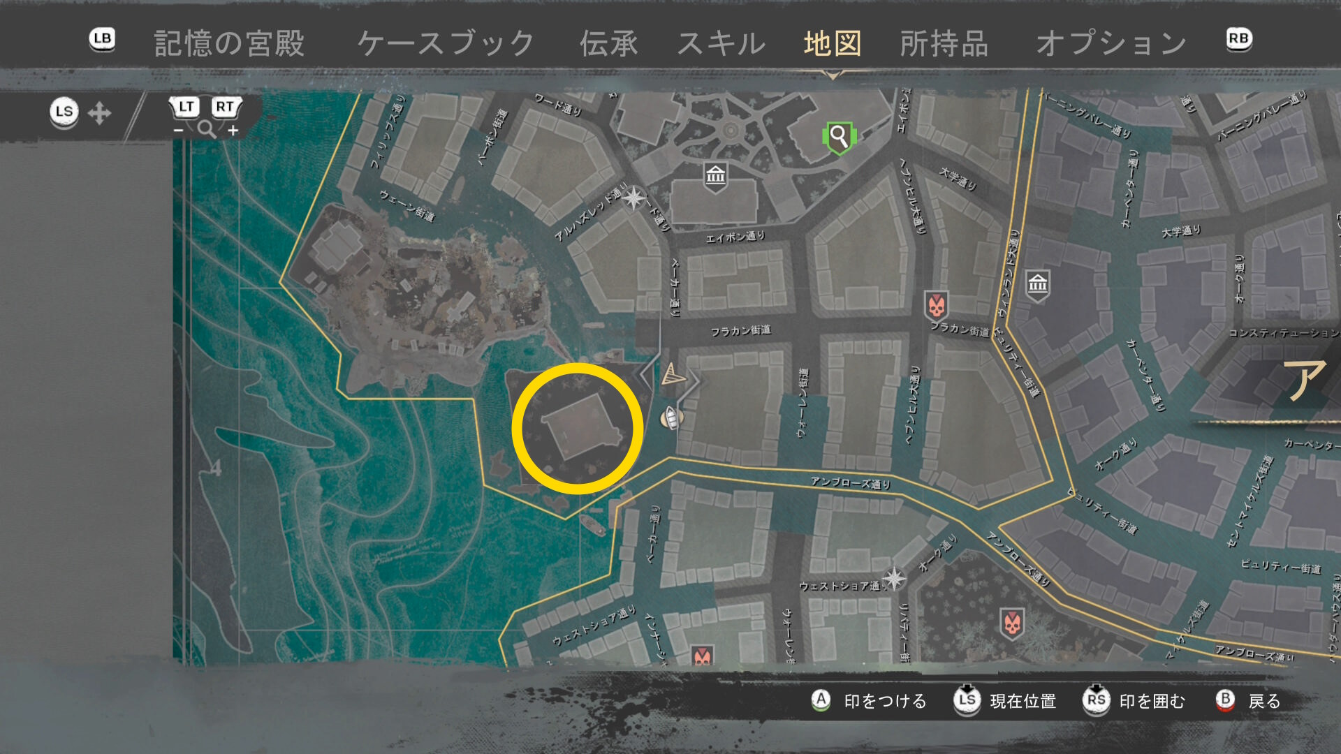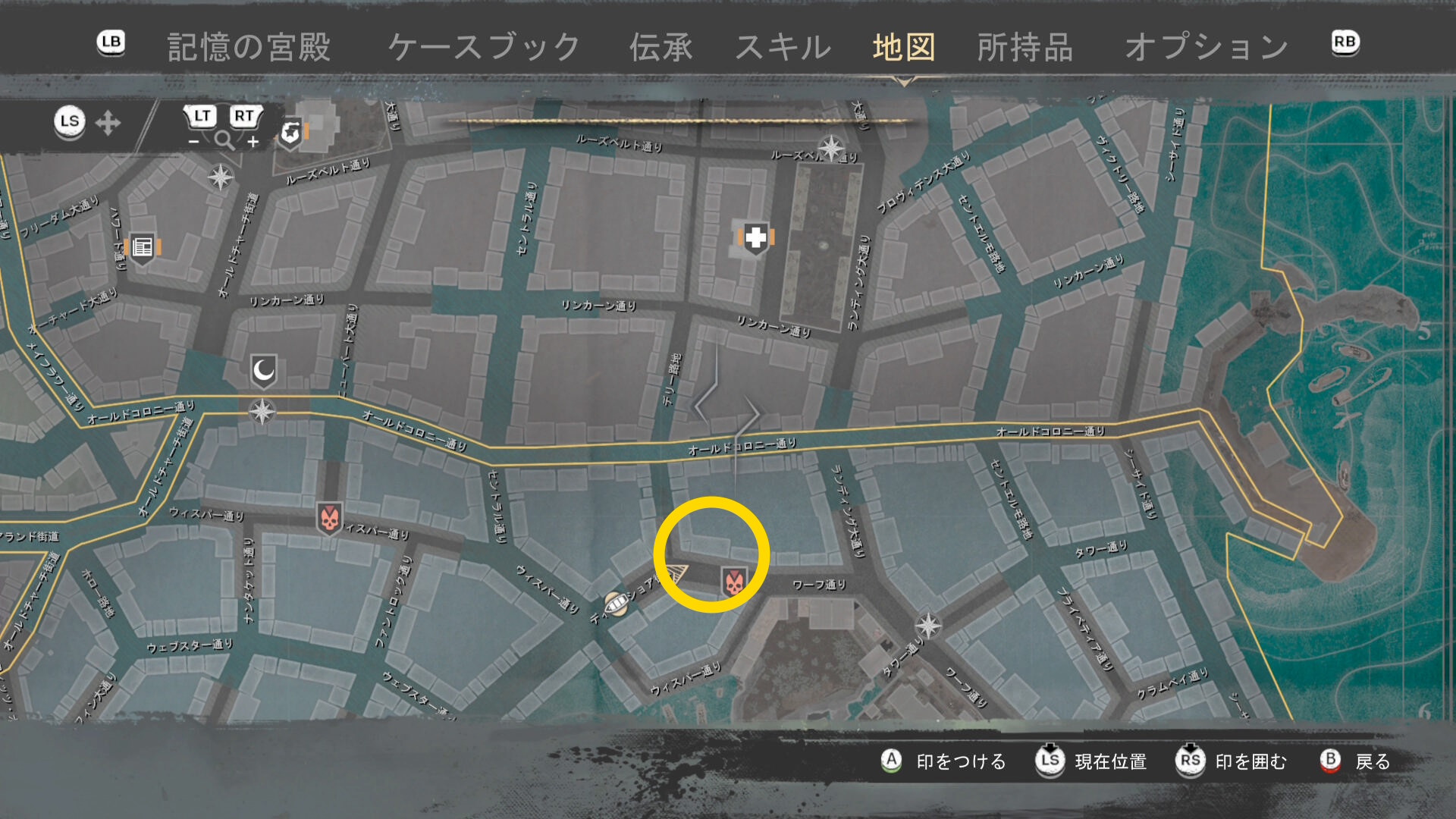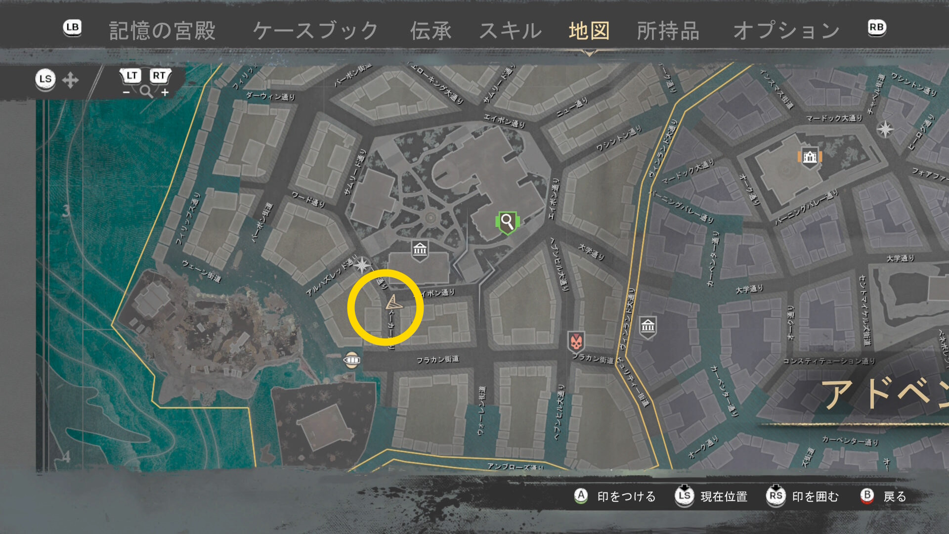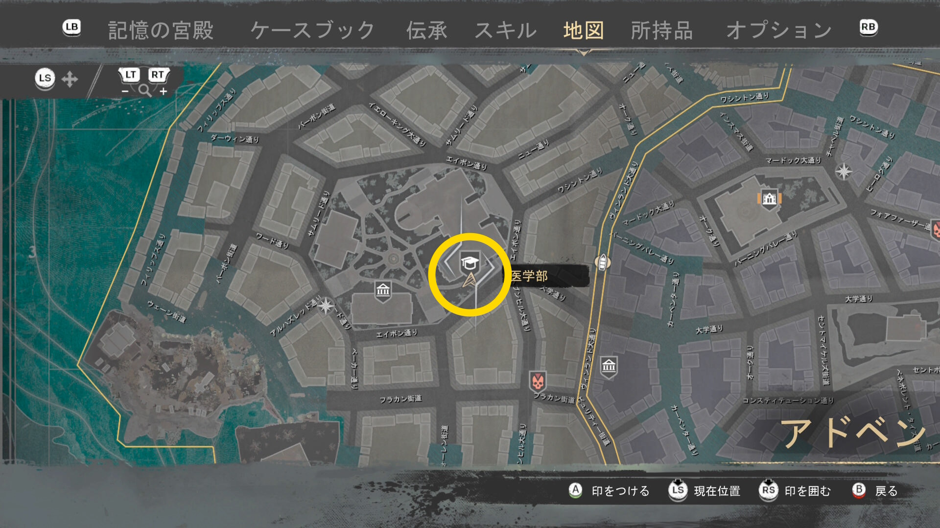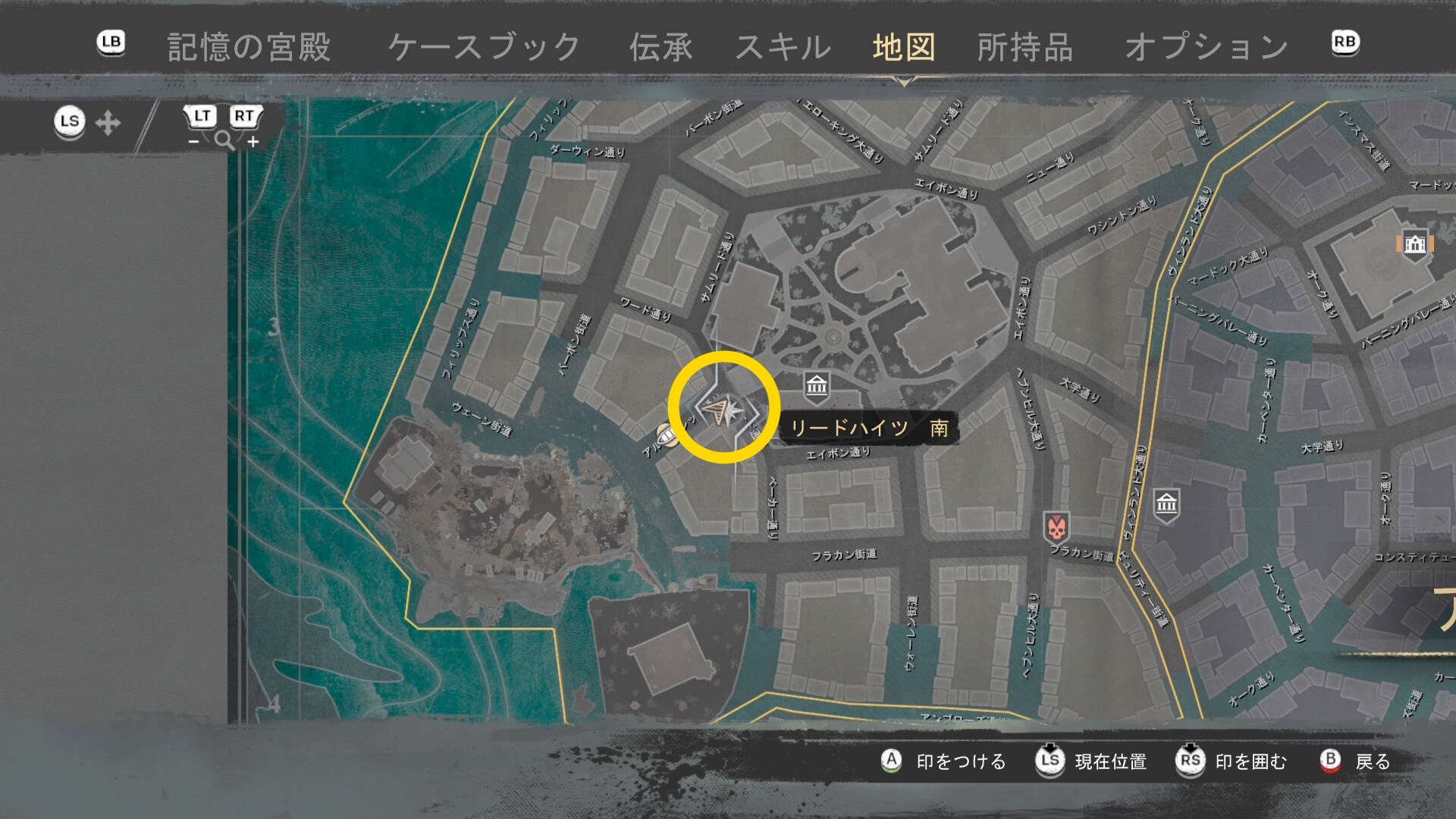 - 上陸したら大学の西側に進み、ファストトラベルポイント をアンロック(リードハイツ 南)