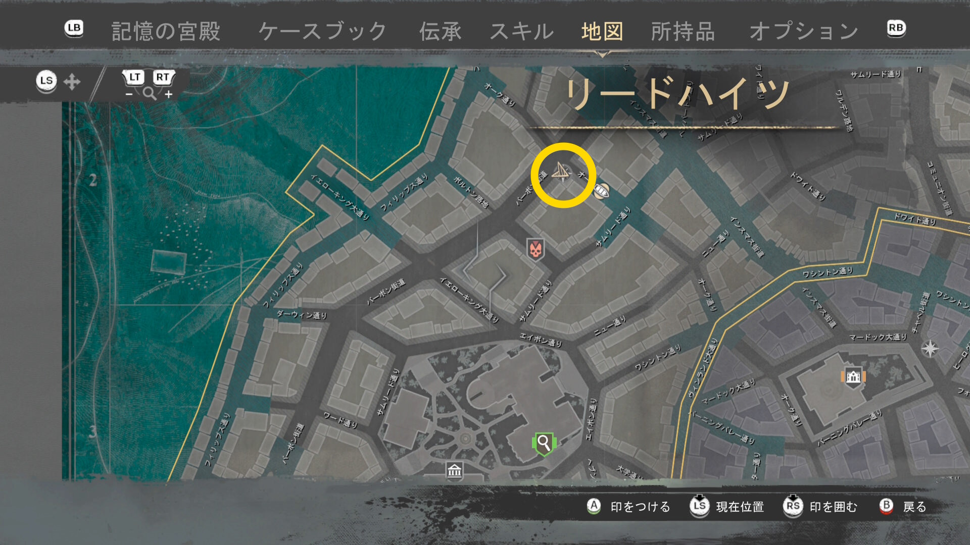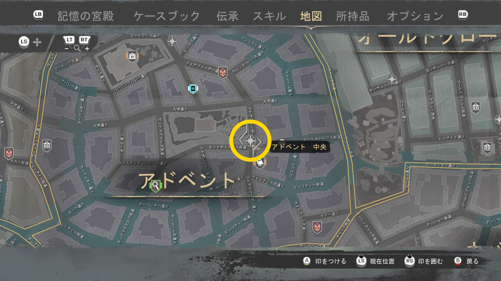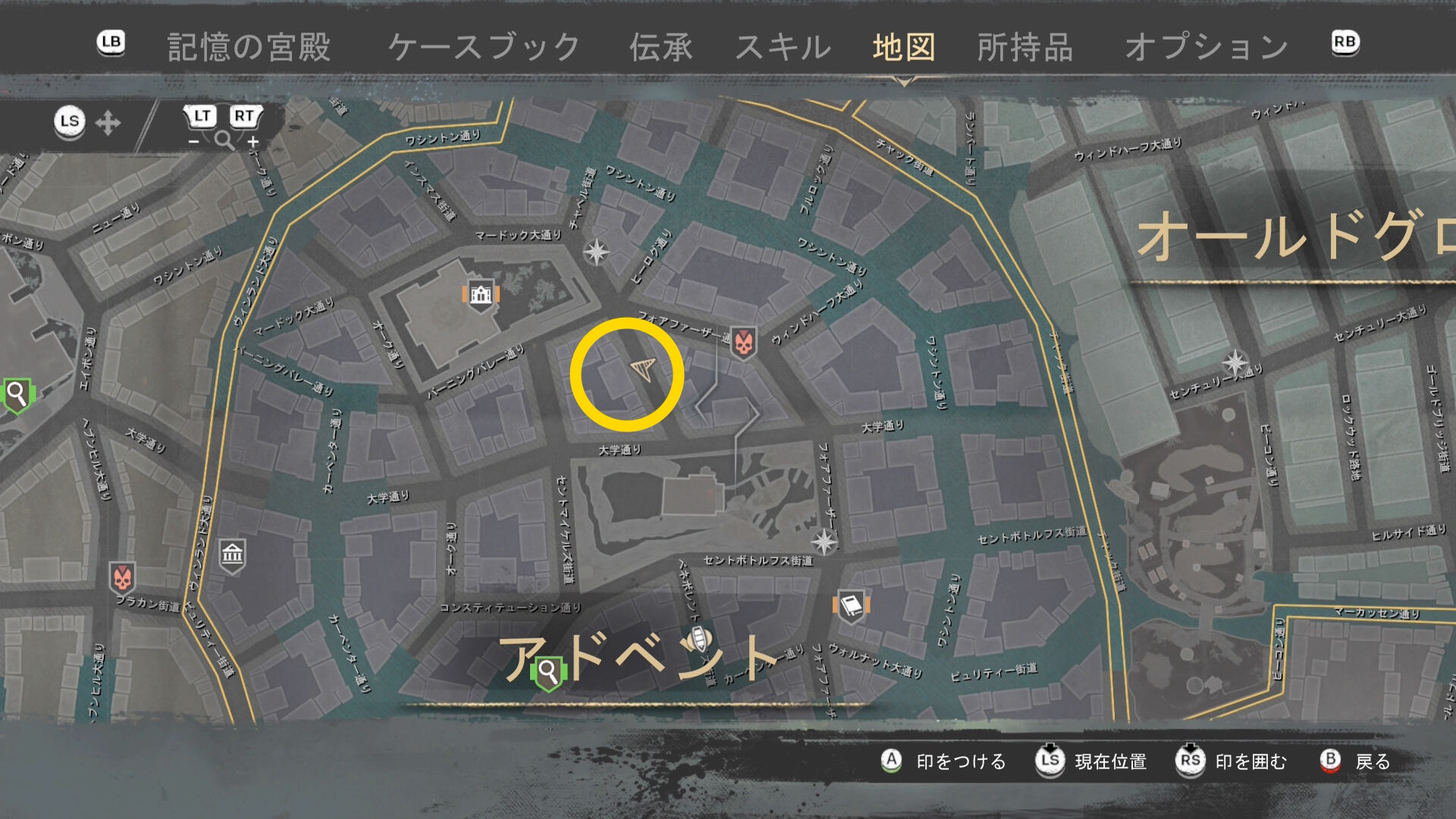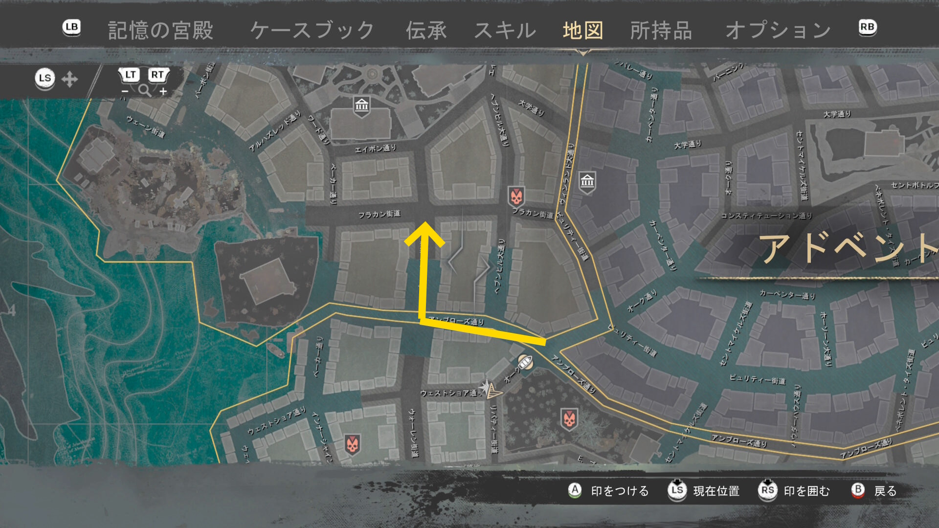 - 上陸したら大学の西側に進み、ファストトラベルポイント をアンロック(リードハイツ 南)