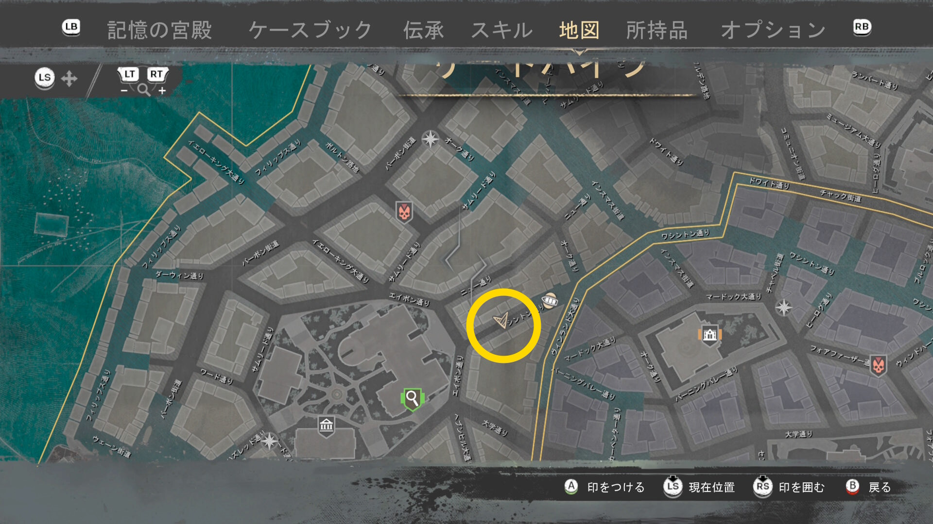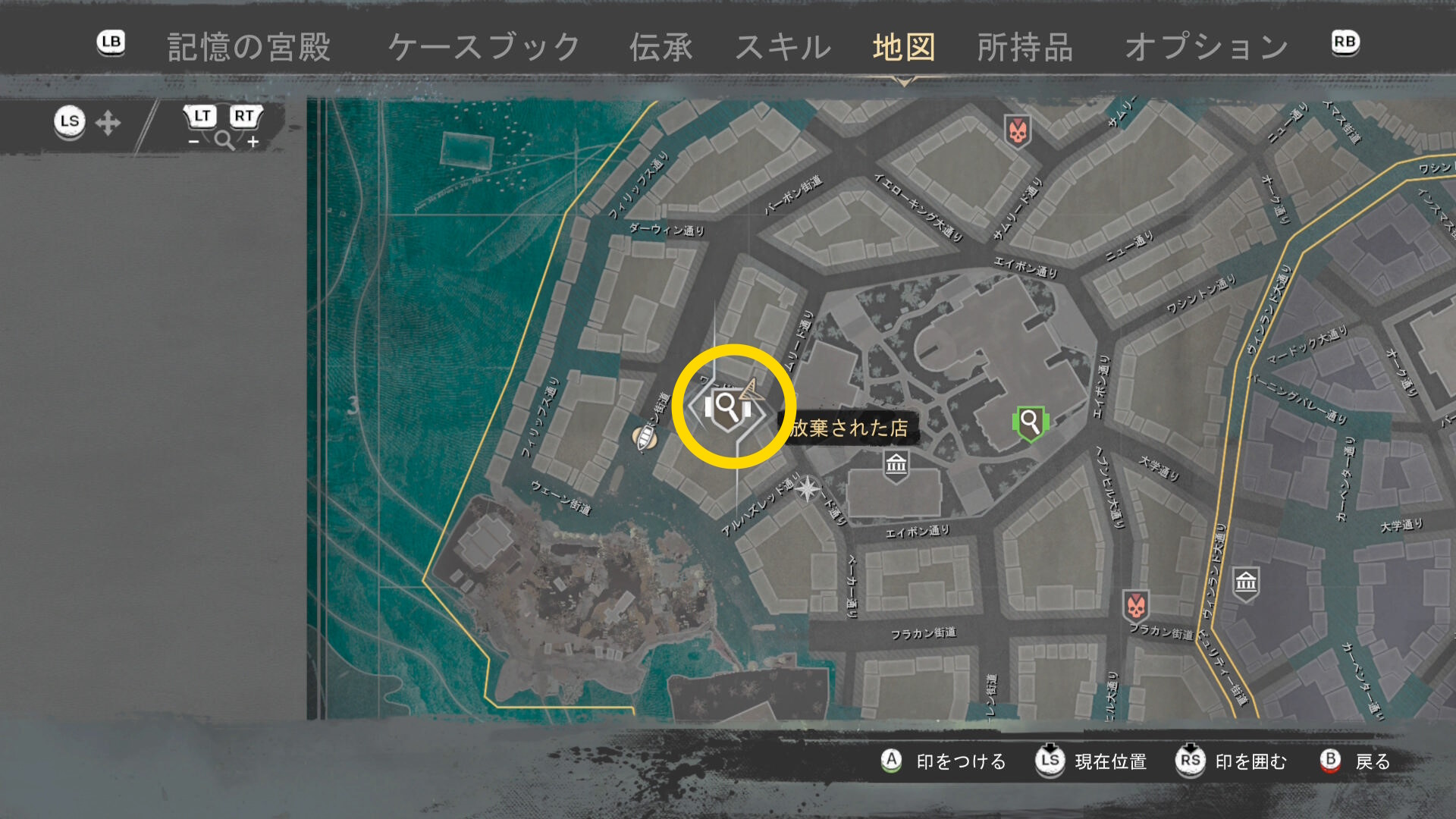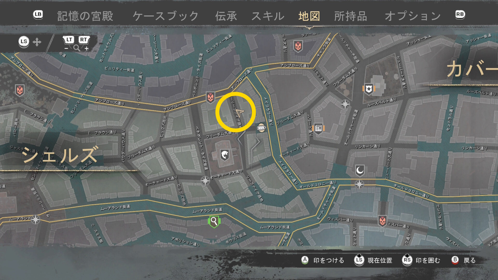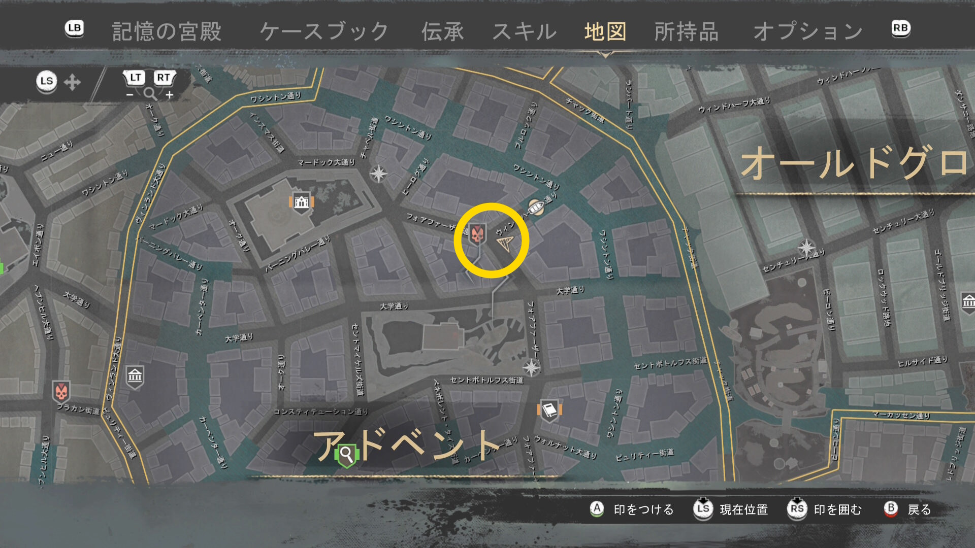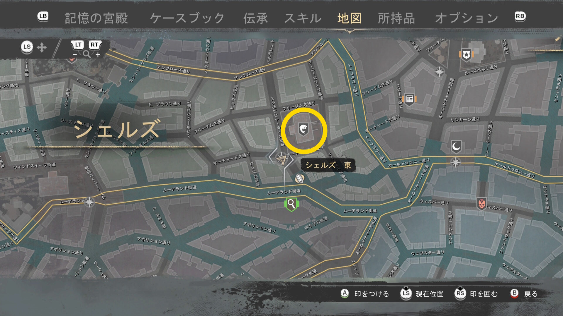 - 上陸したら大学の西側に進み、ファストトラベルポイント をアンロック(リードハイツ 南)