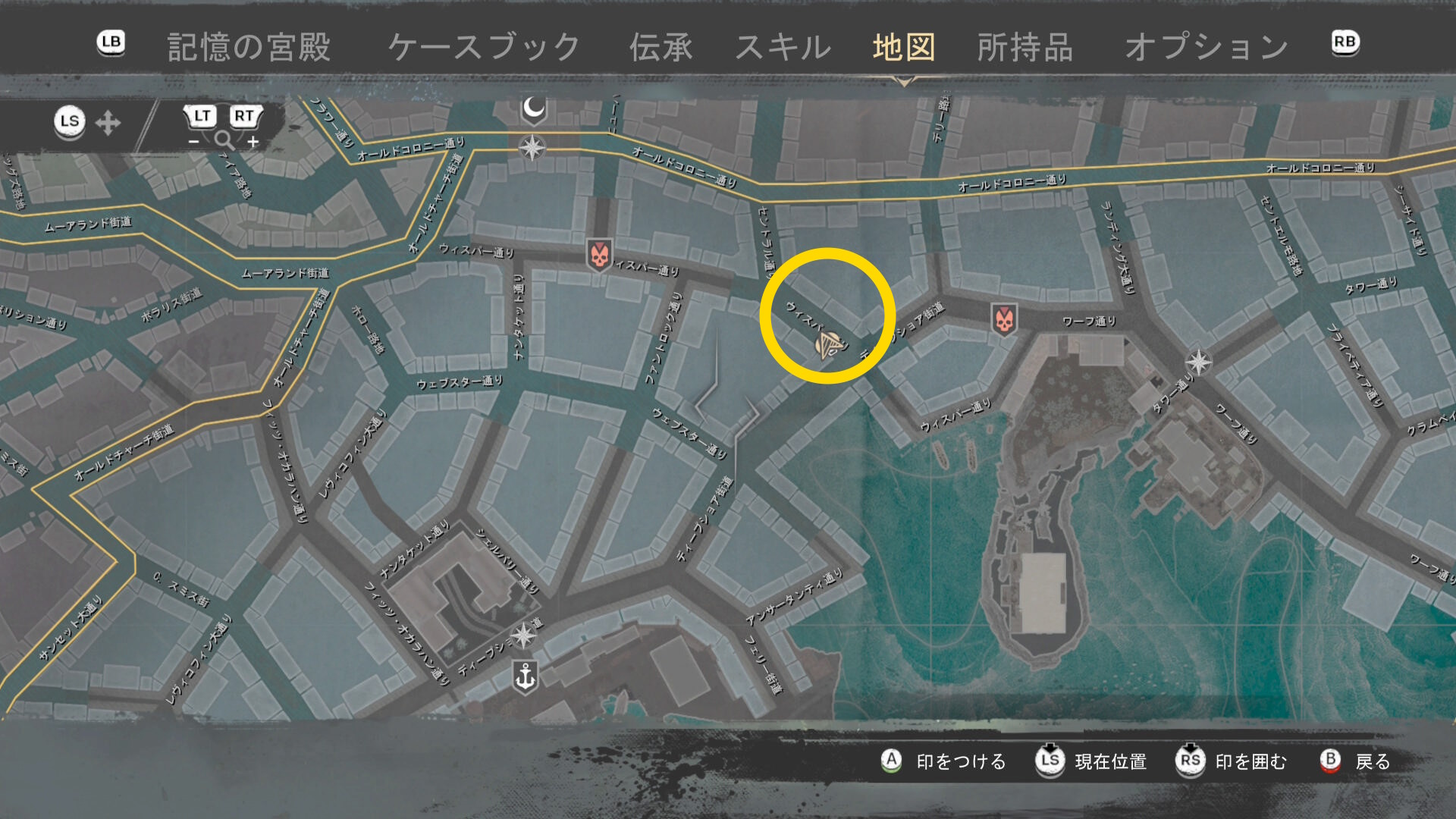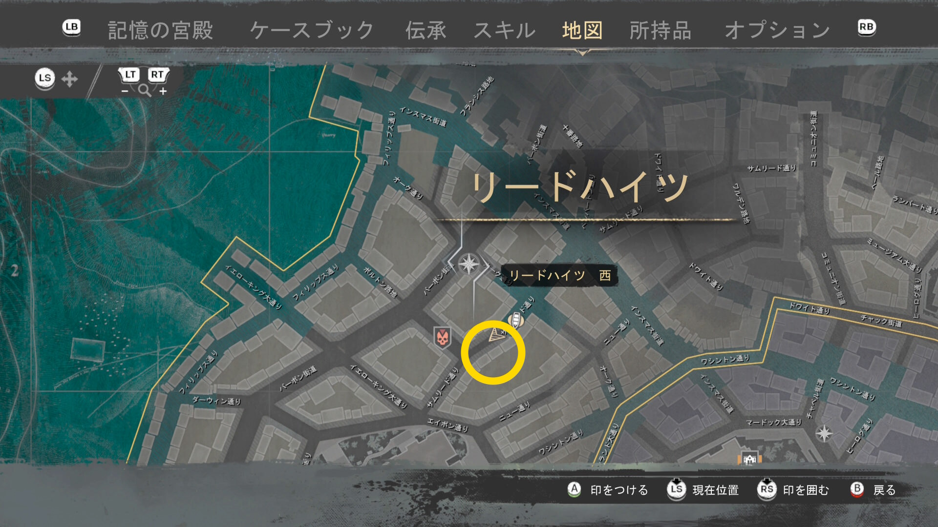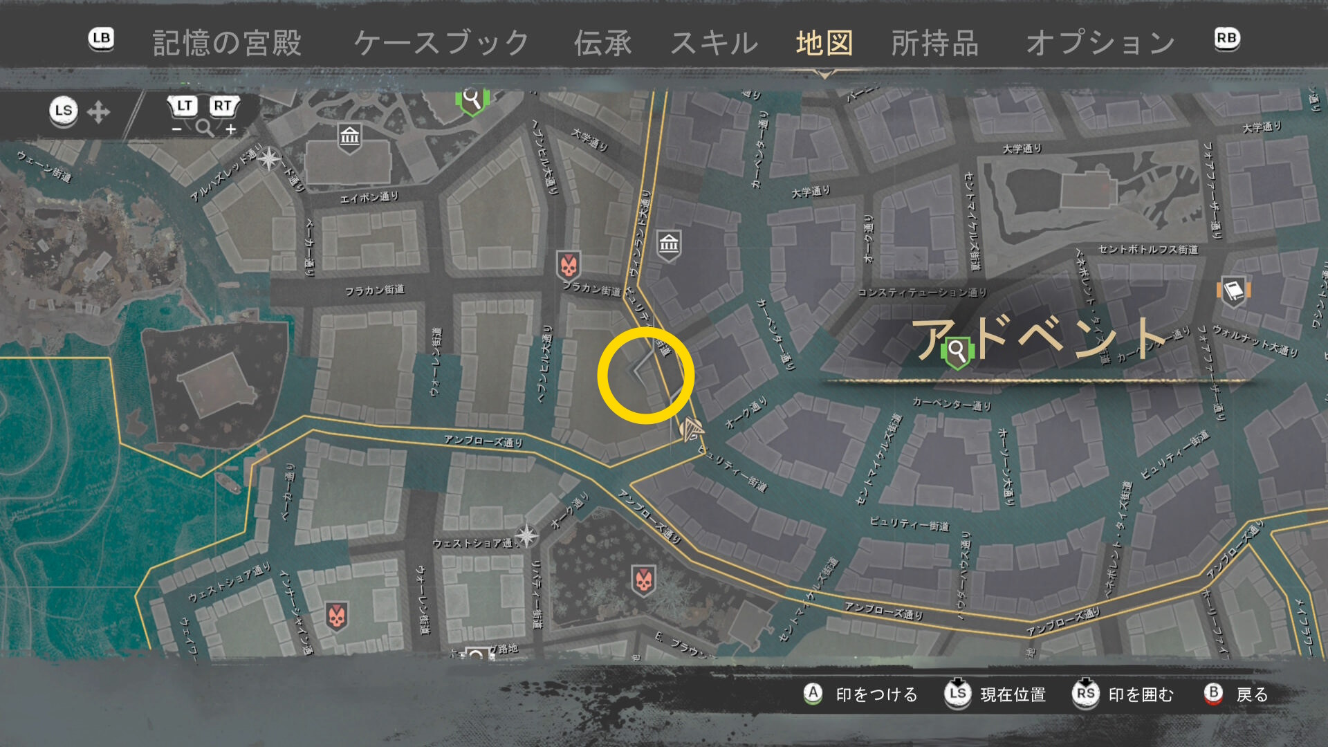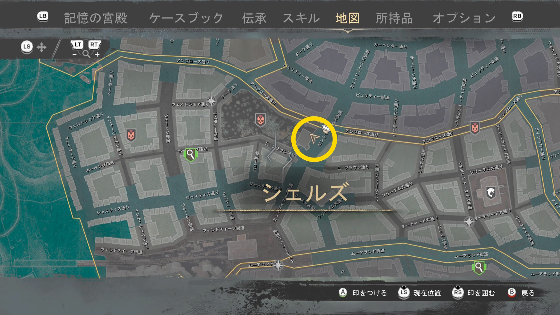 - 上陸したら大学の西側に進み、ファストトラベルポイント をアンロック(リードハイツ 南)