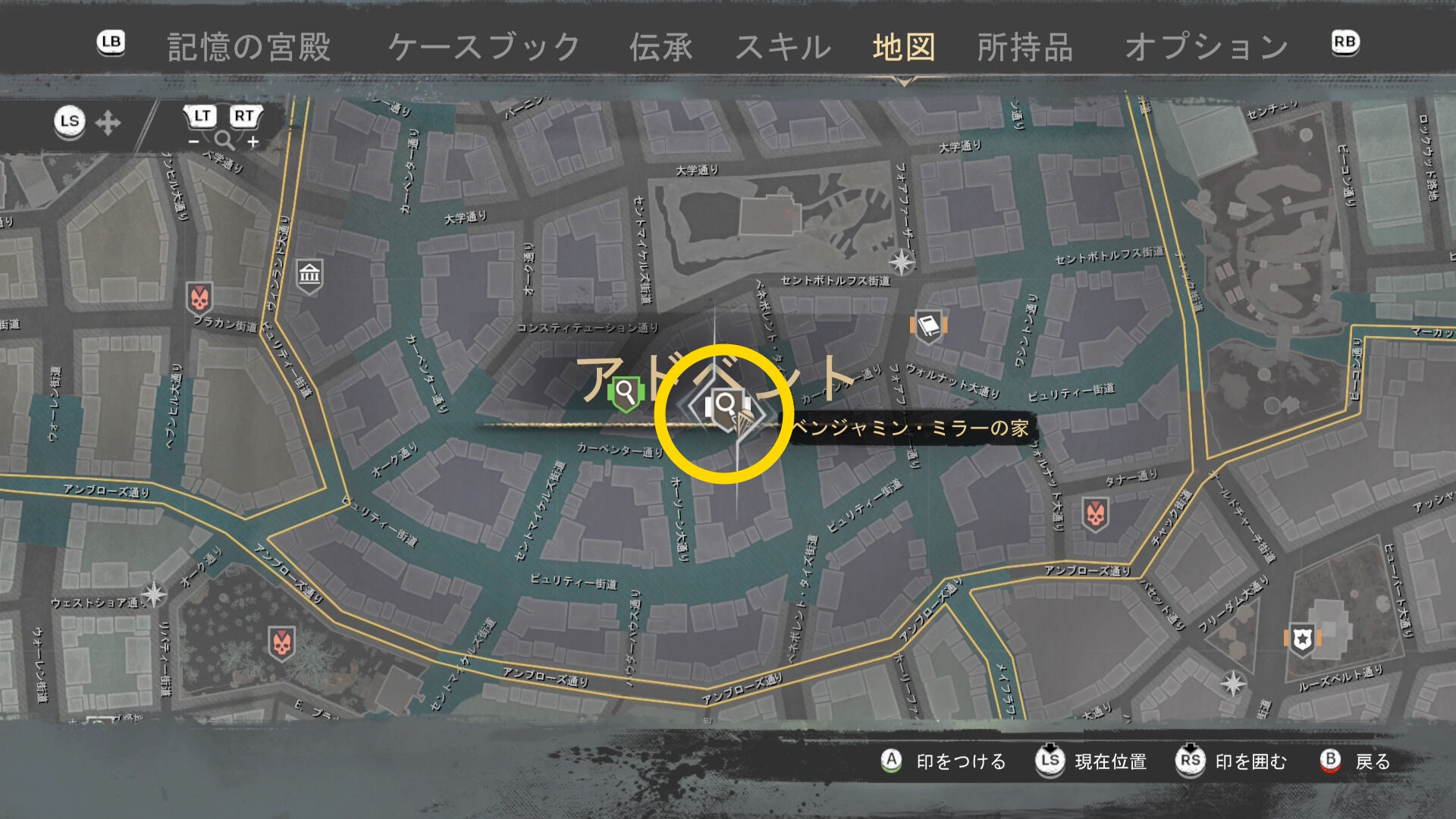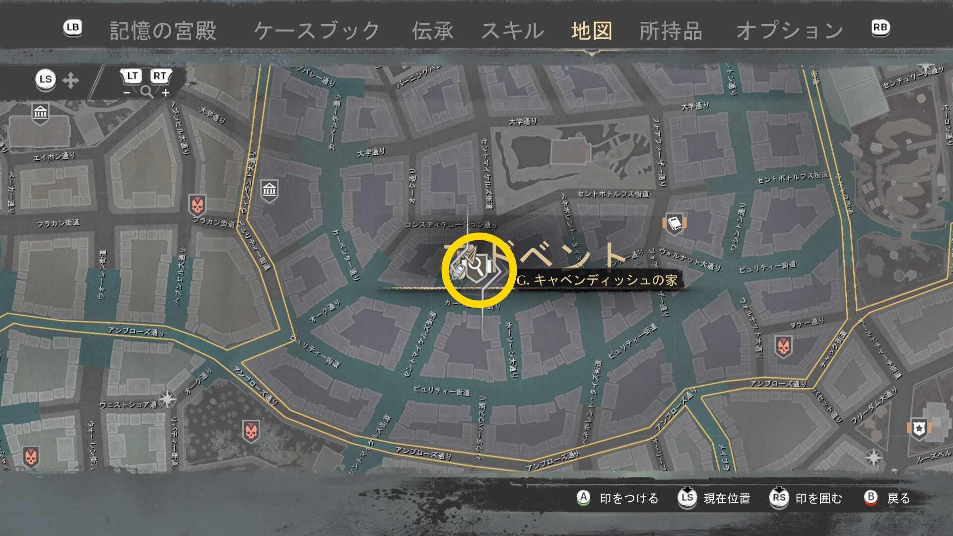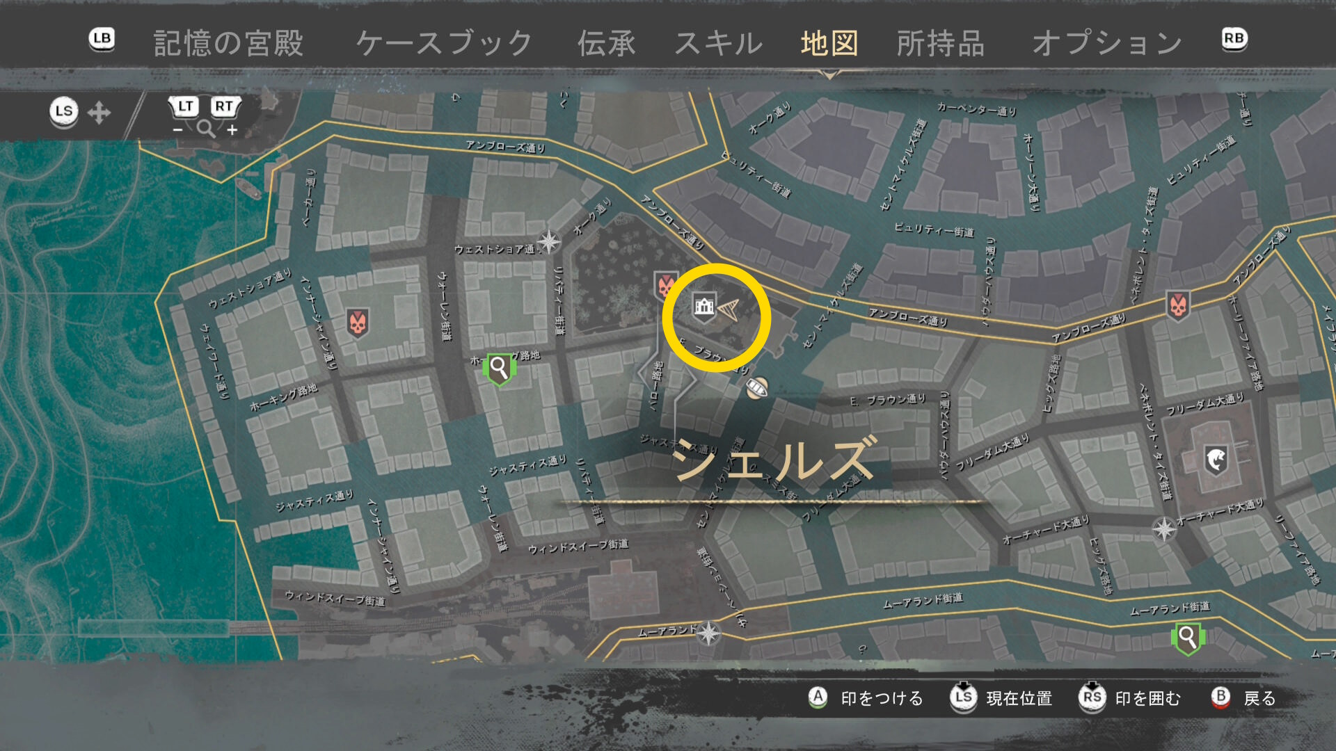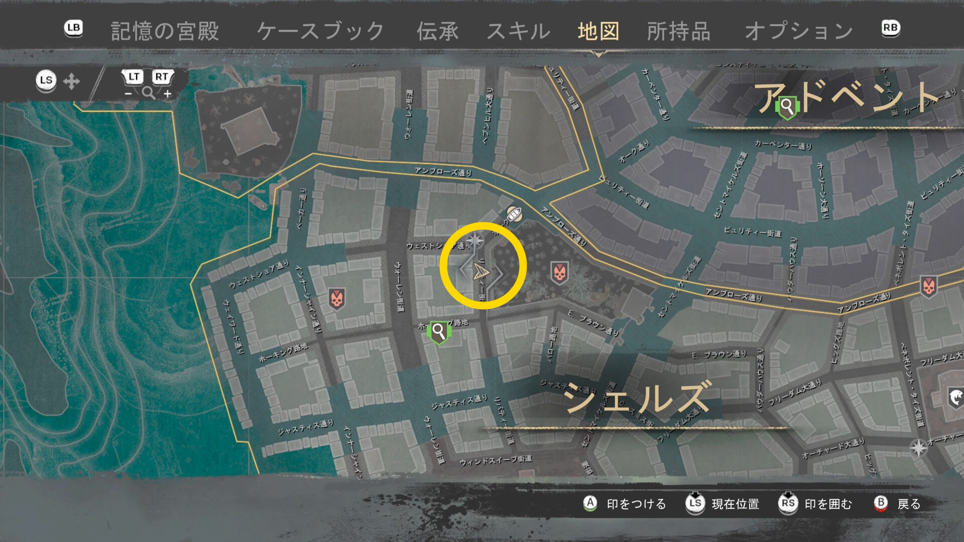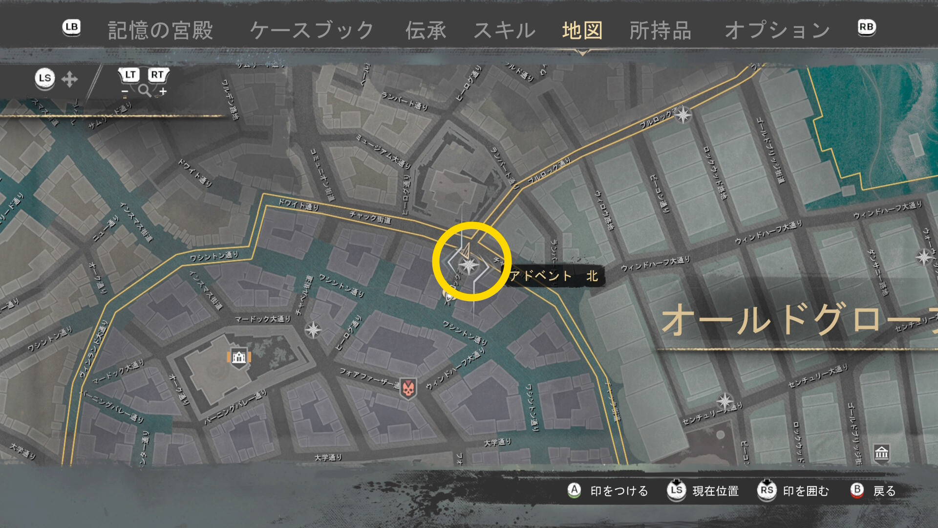 - 上陸したら大学の西側に進み、ファストトラベルポイント をアンロック(リードハイツ 南)