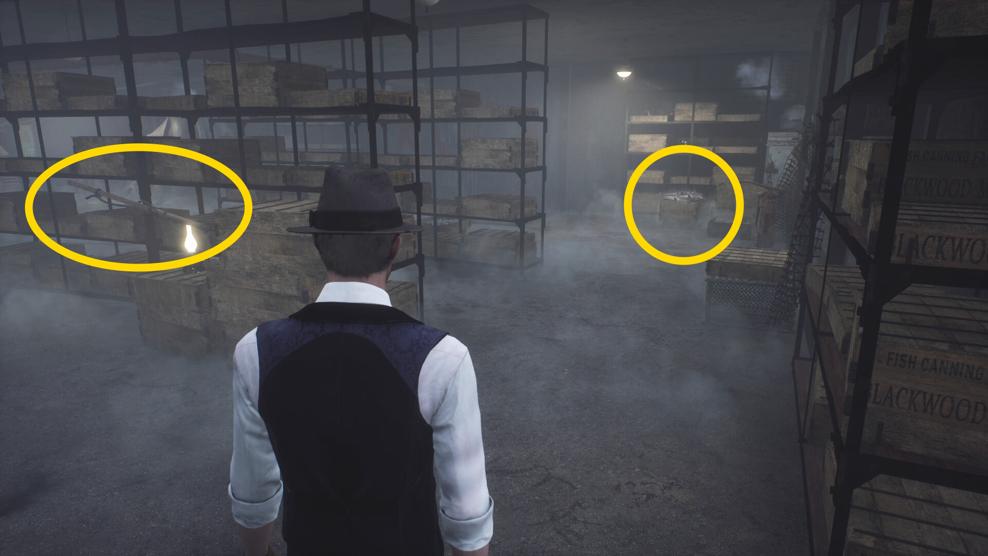 - 魚貯蔵室から出てしまうと中に入れなくなるが、ストーリー後半に再び入れるようになる