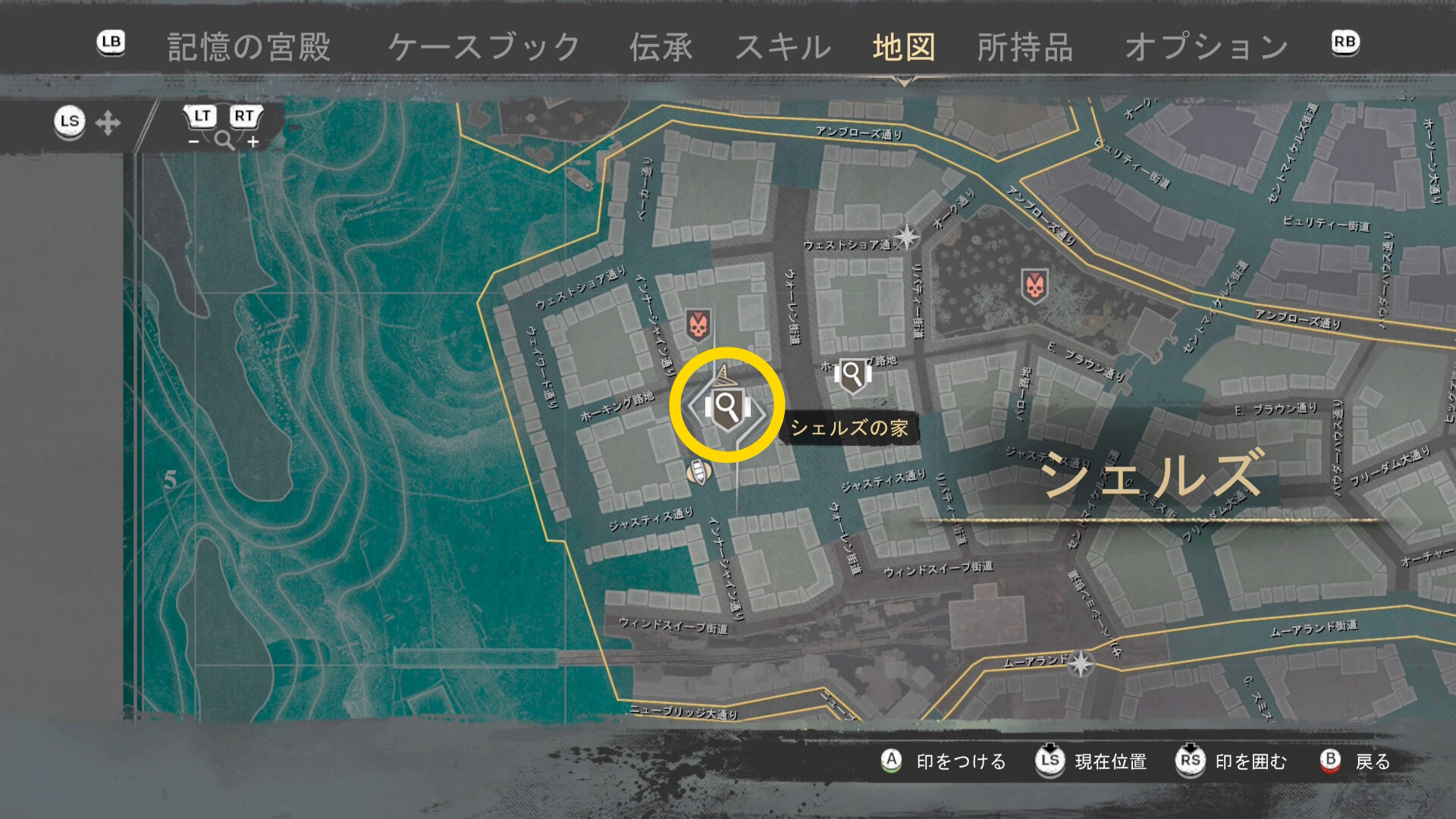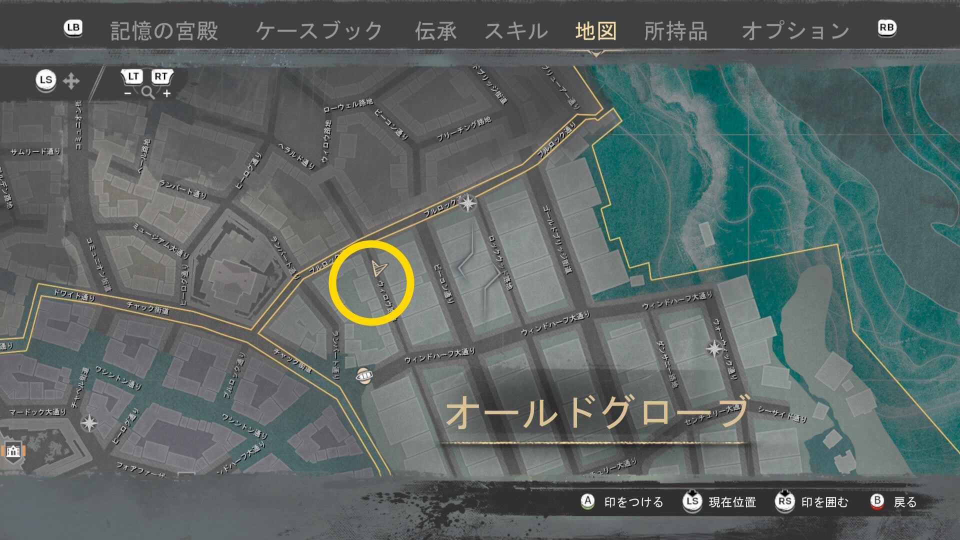 - スログモートン邸を出たら、ファストトラベルポイント「オールドグローブ 南」へ