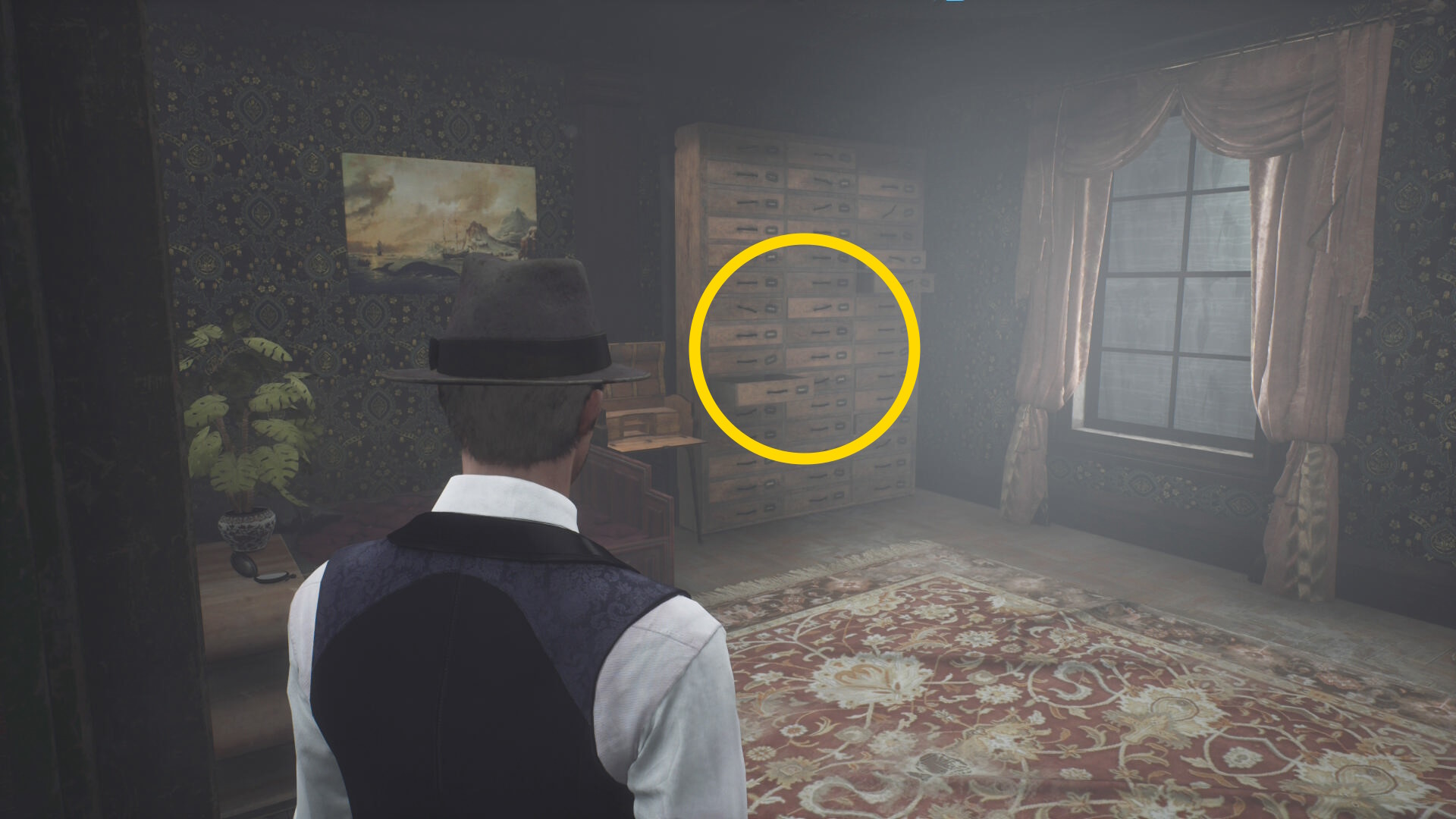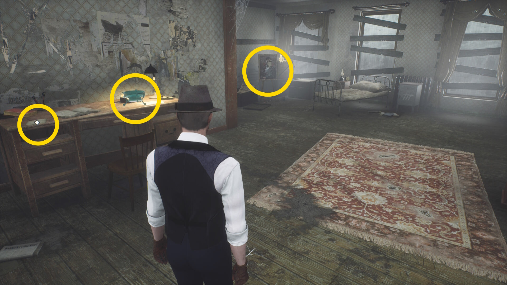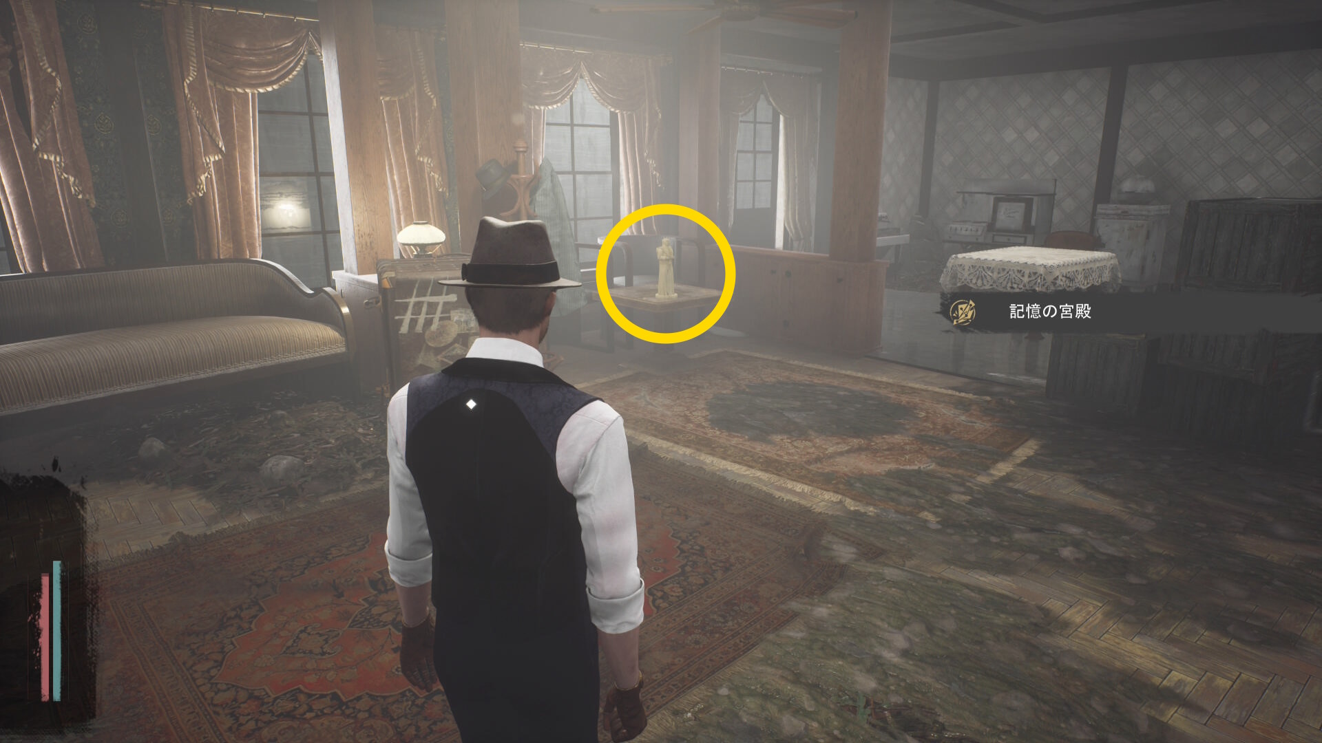 - なお、香炉が置かれた机の左と右奥の絵画に貼られたメモを回収できる