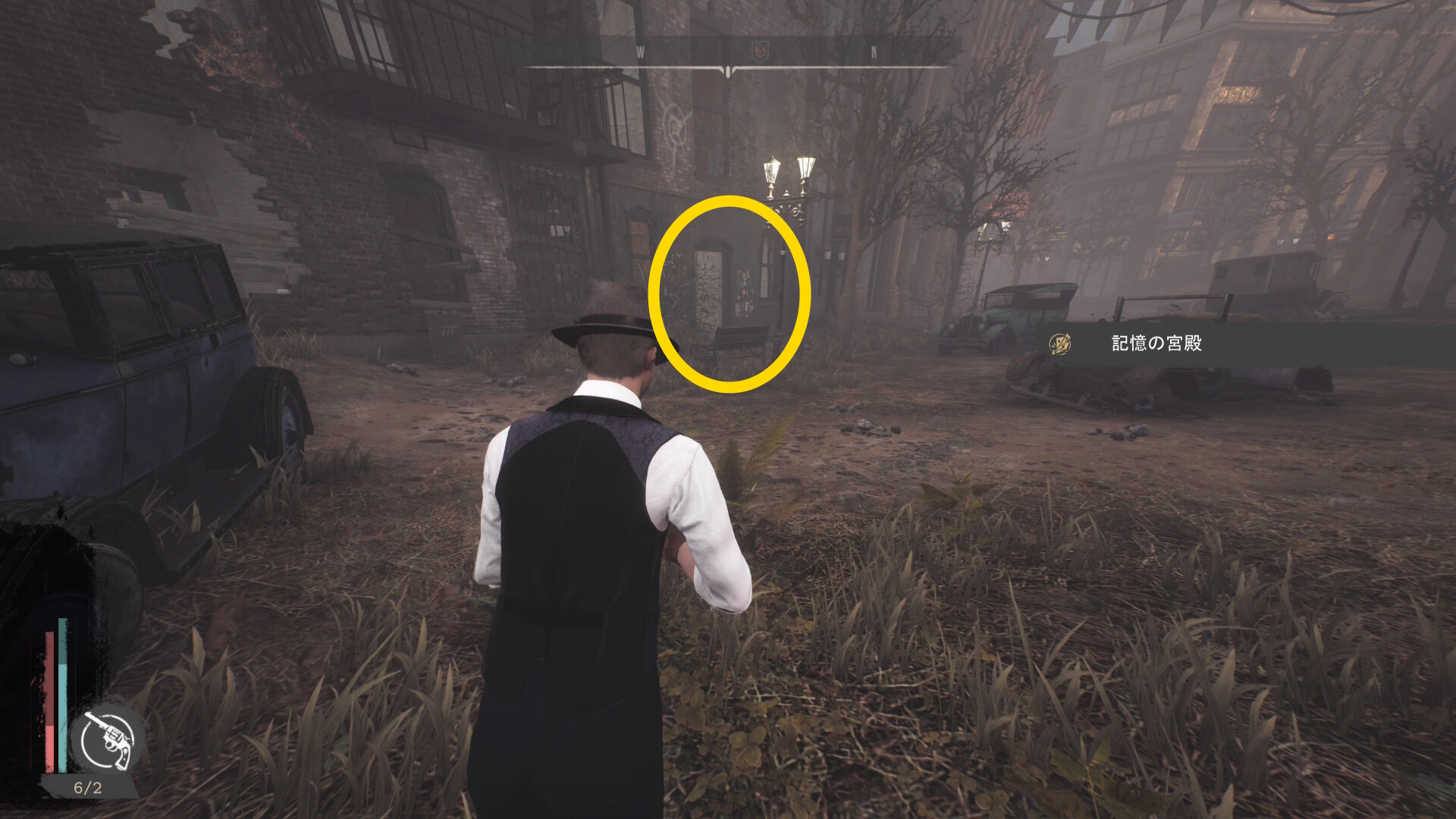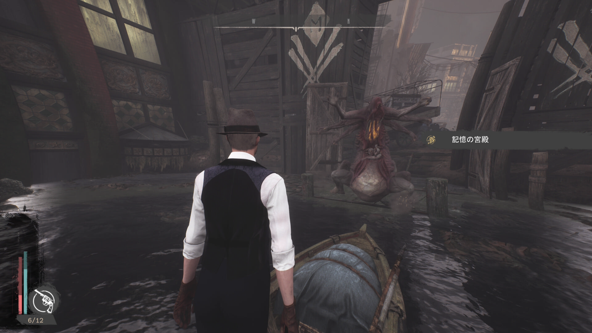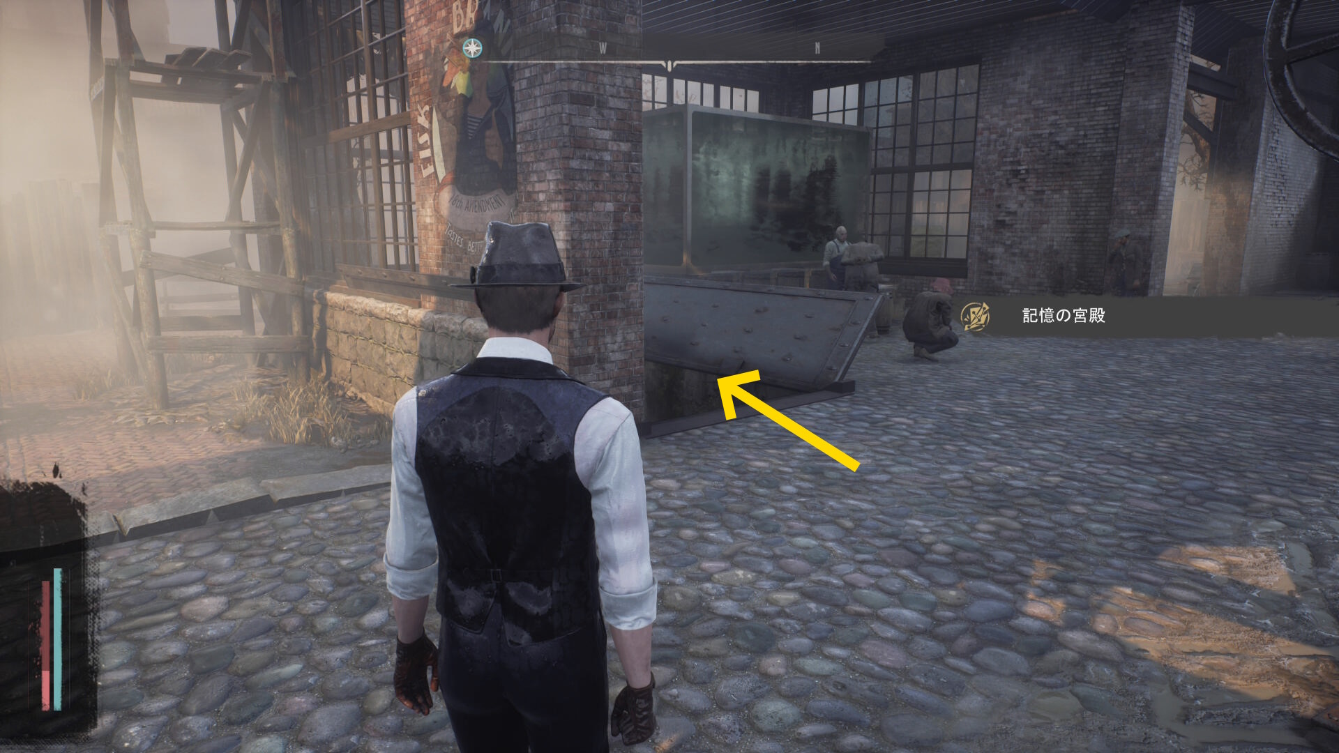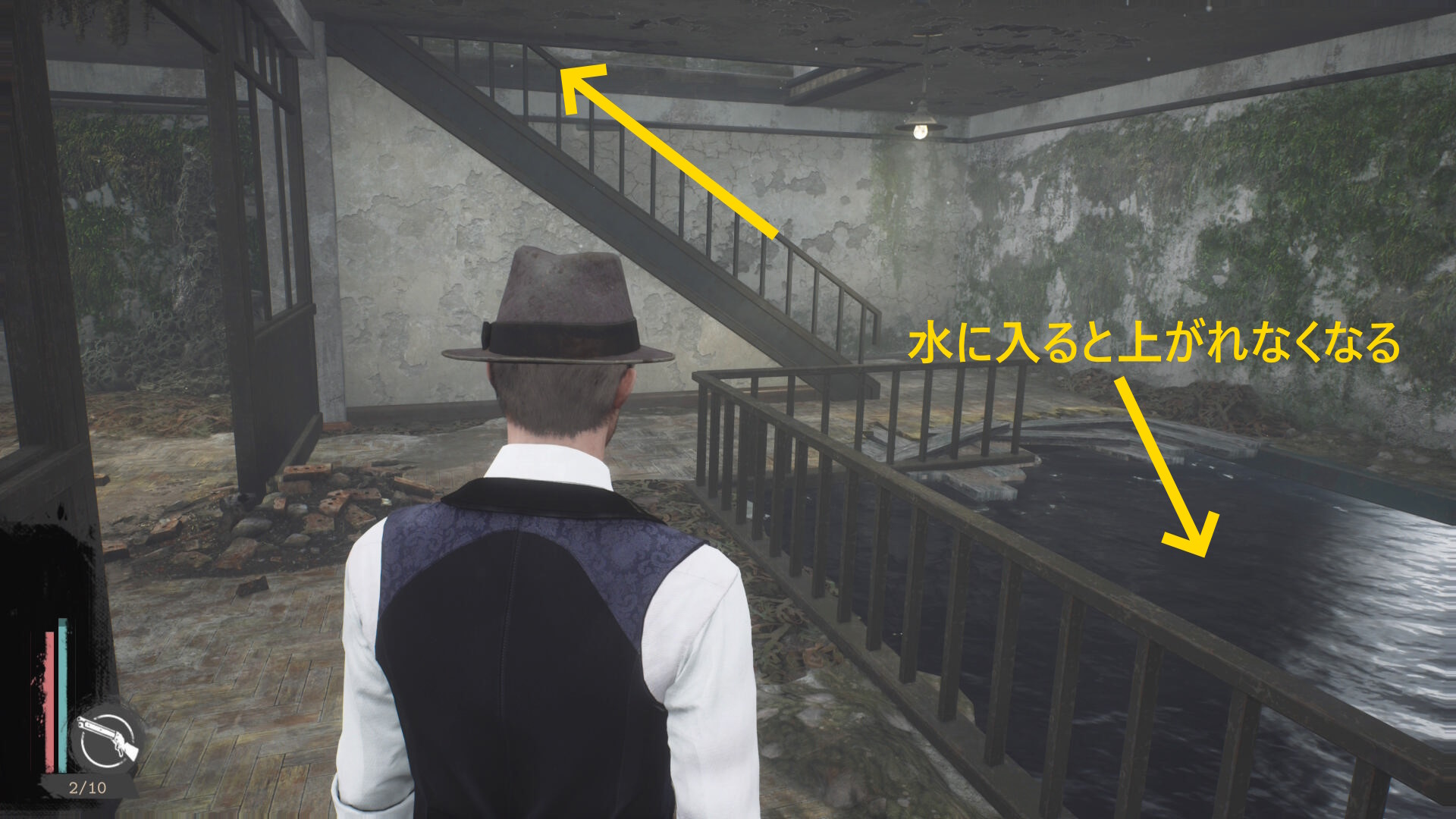- 建物を出て、水路と陸路を移動してカバーサイドエリアの精神科病院の手前に向かう