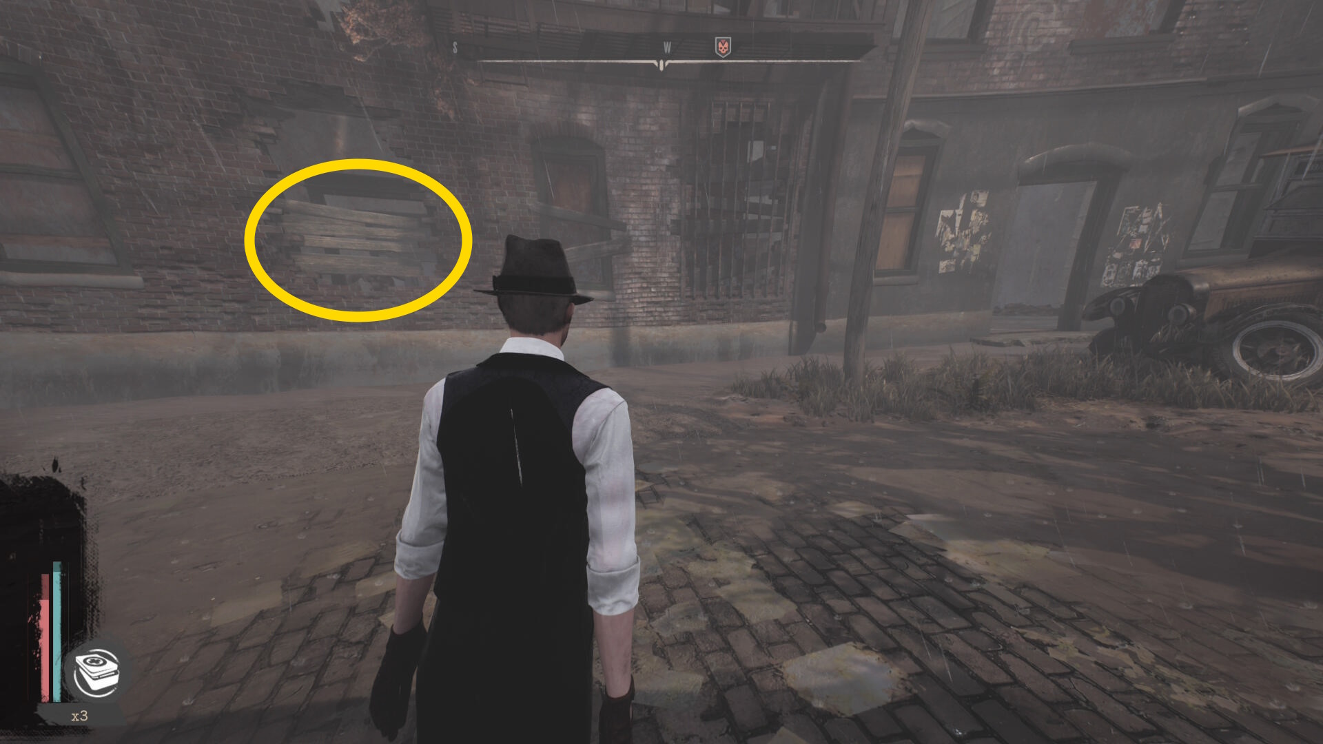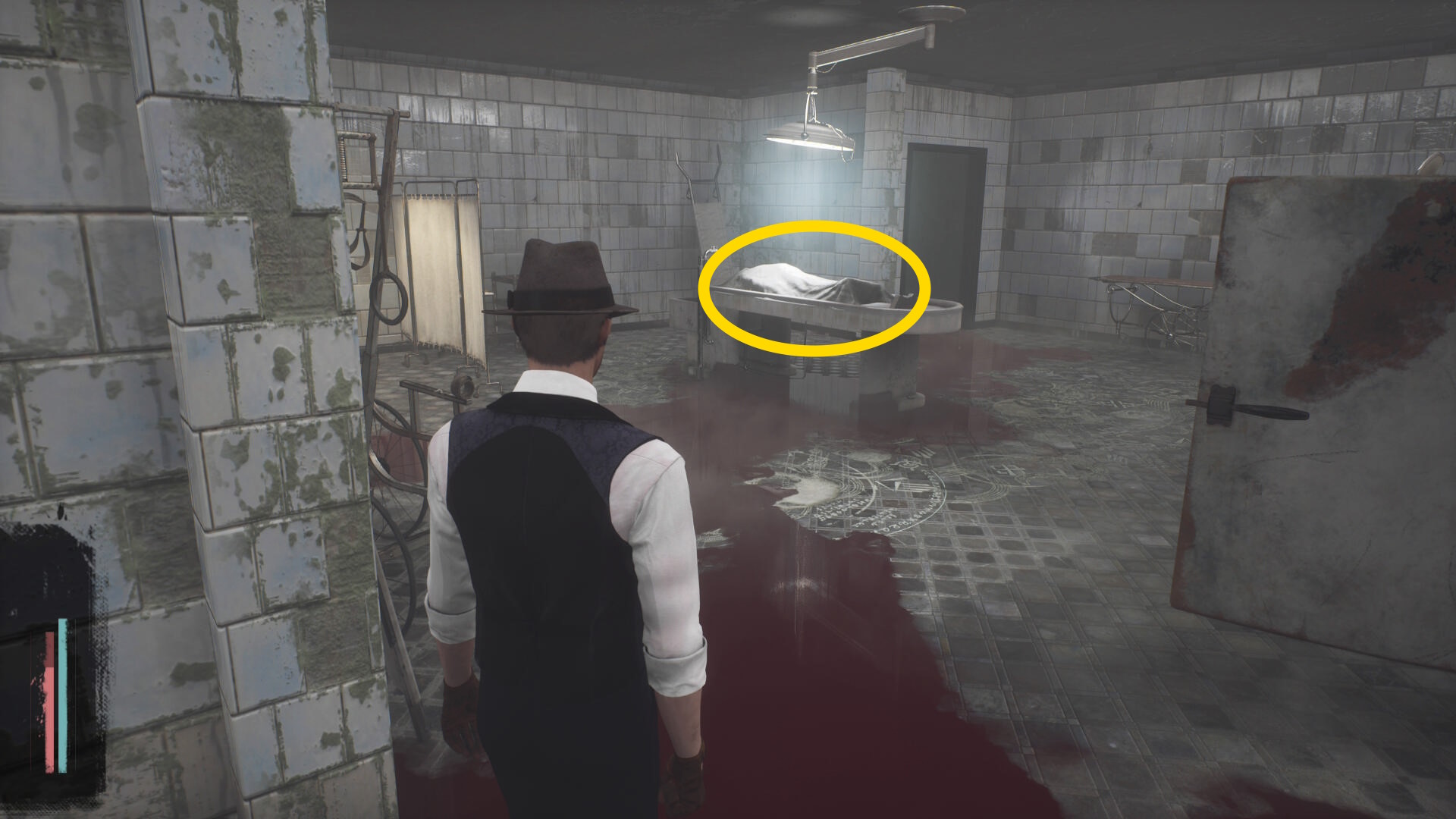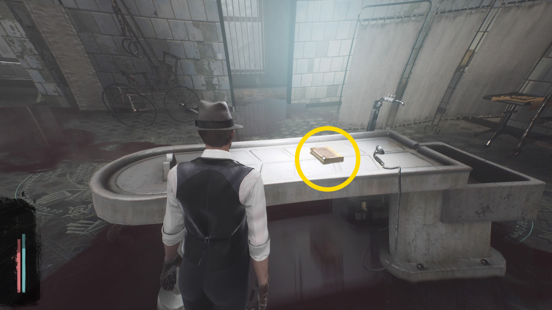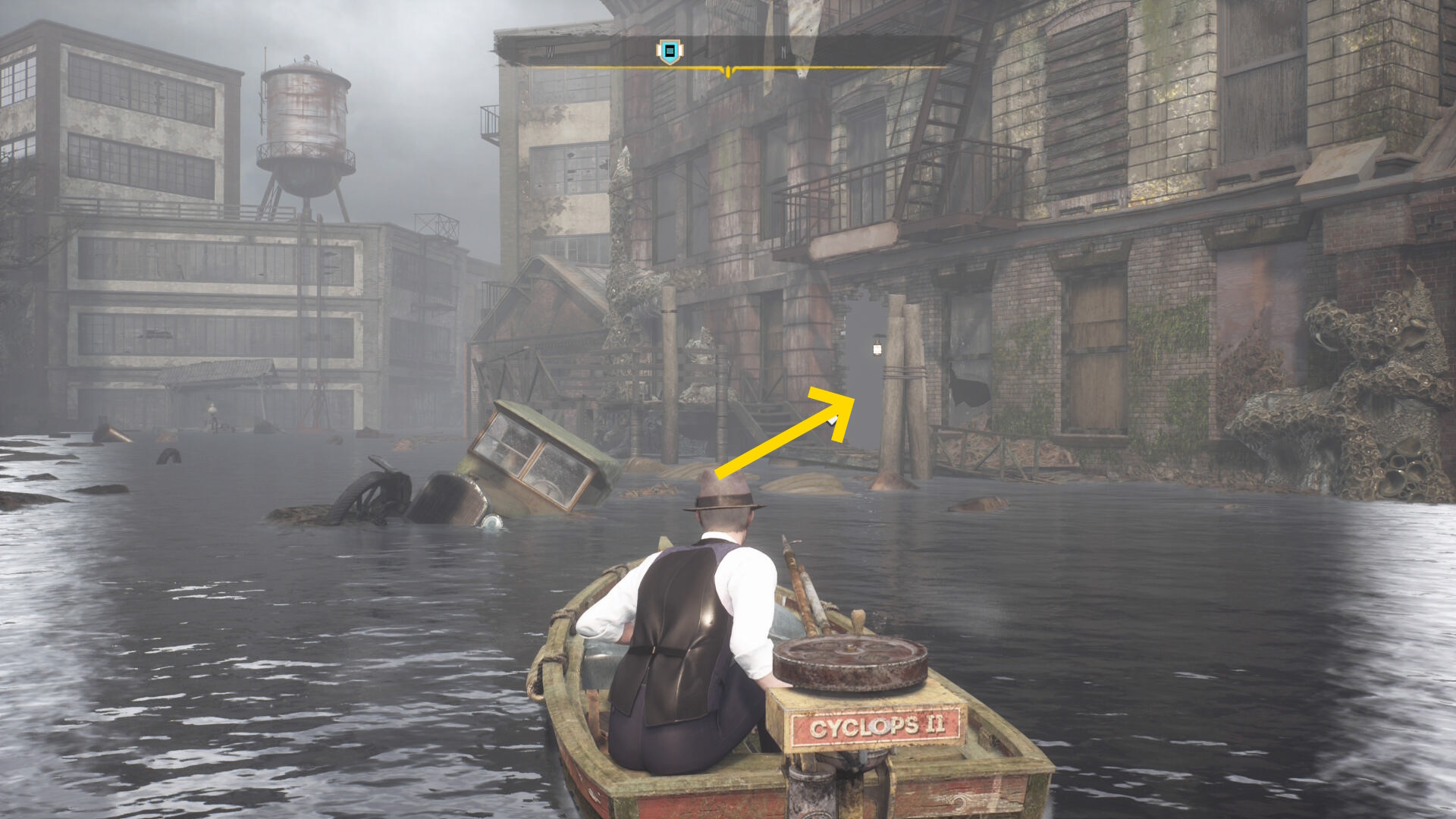- 建物を出て、水路と陸路を移動してカバーサイドエリアの精神科病院の手前に向かう