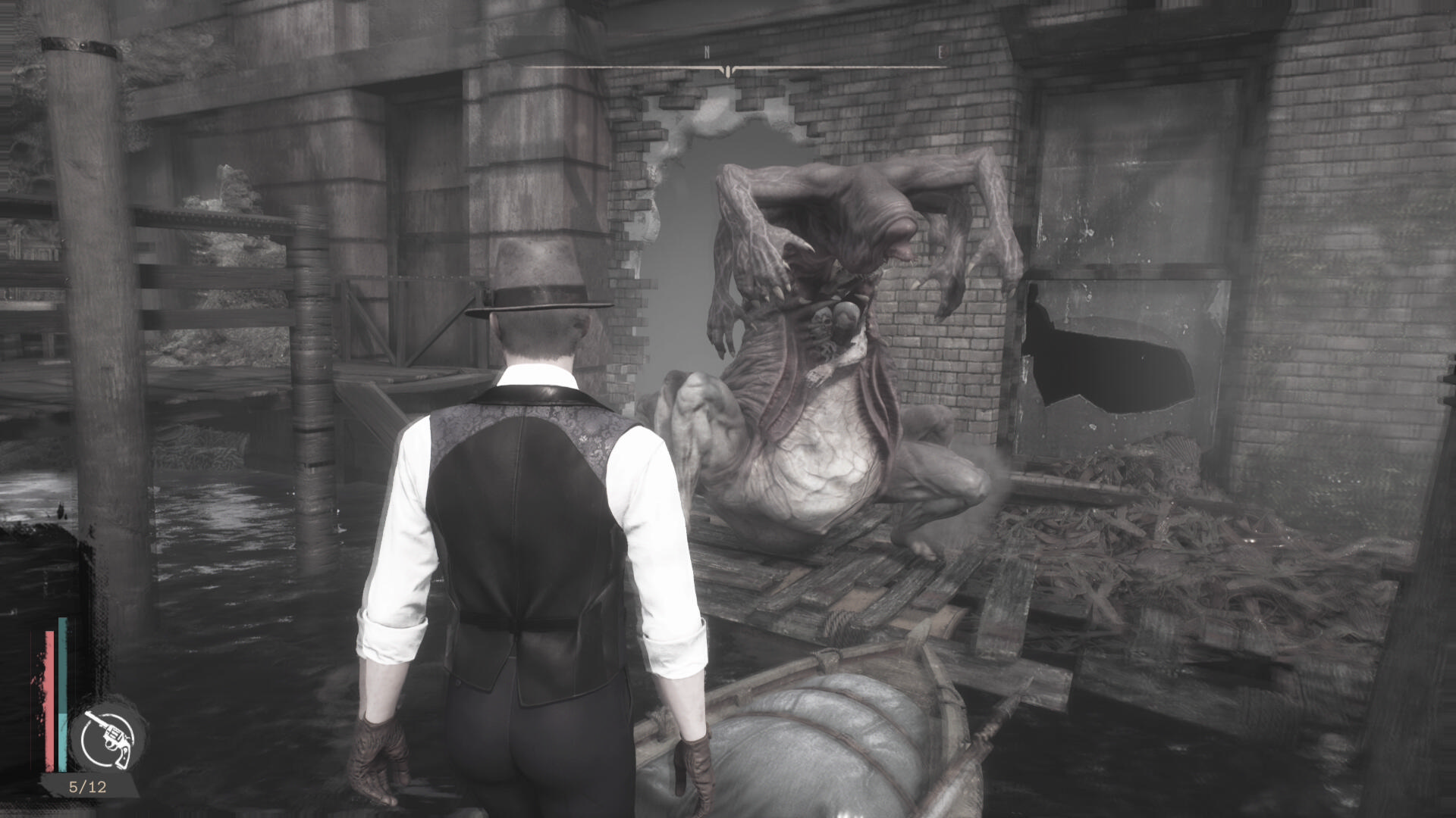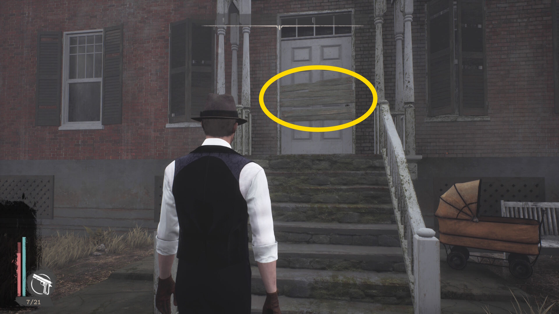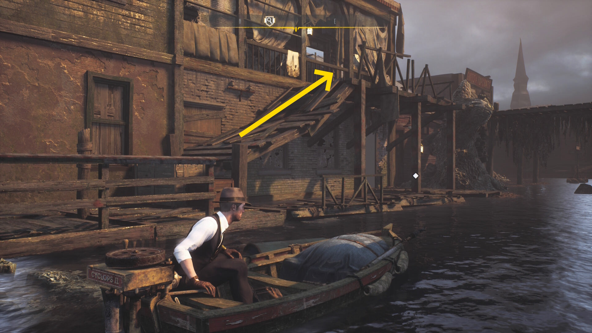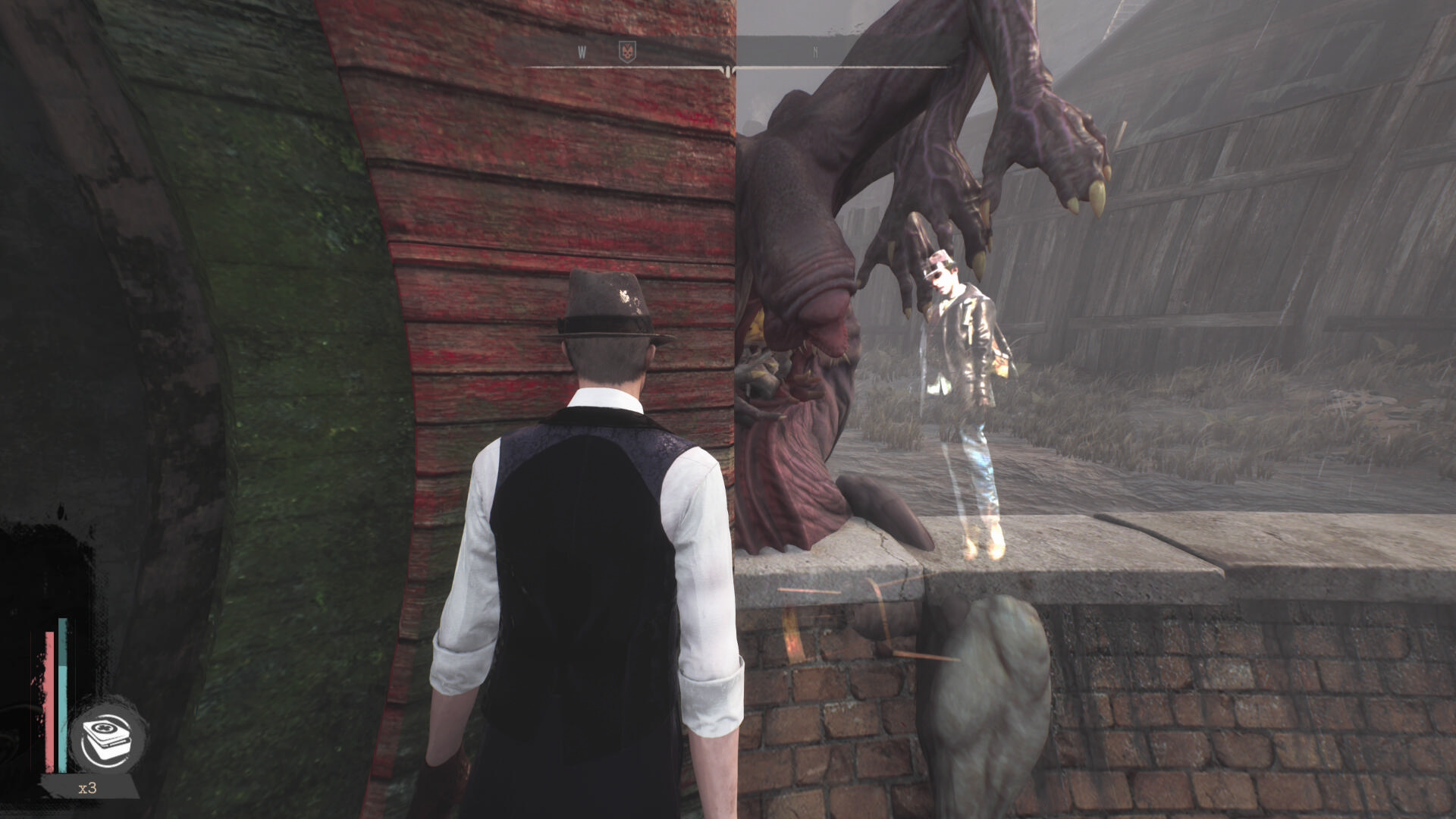 - 建物を出て、水路と陸路を移動してカバーサイドエリアの精神科病院の手前に向かう