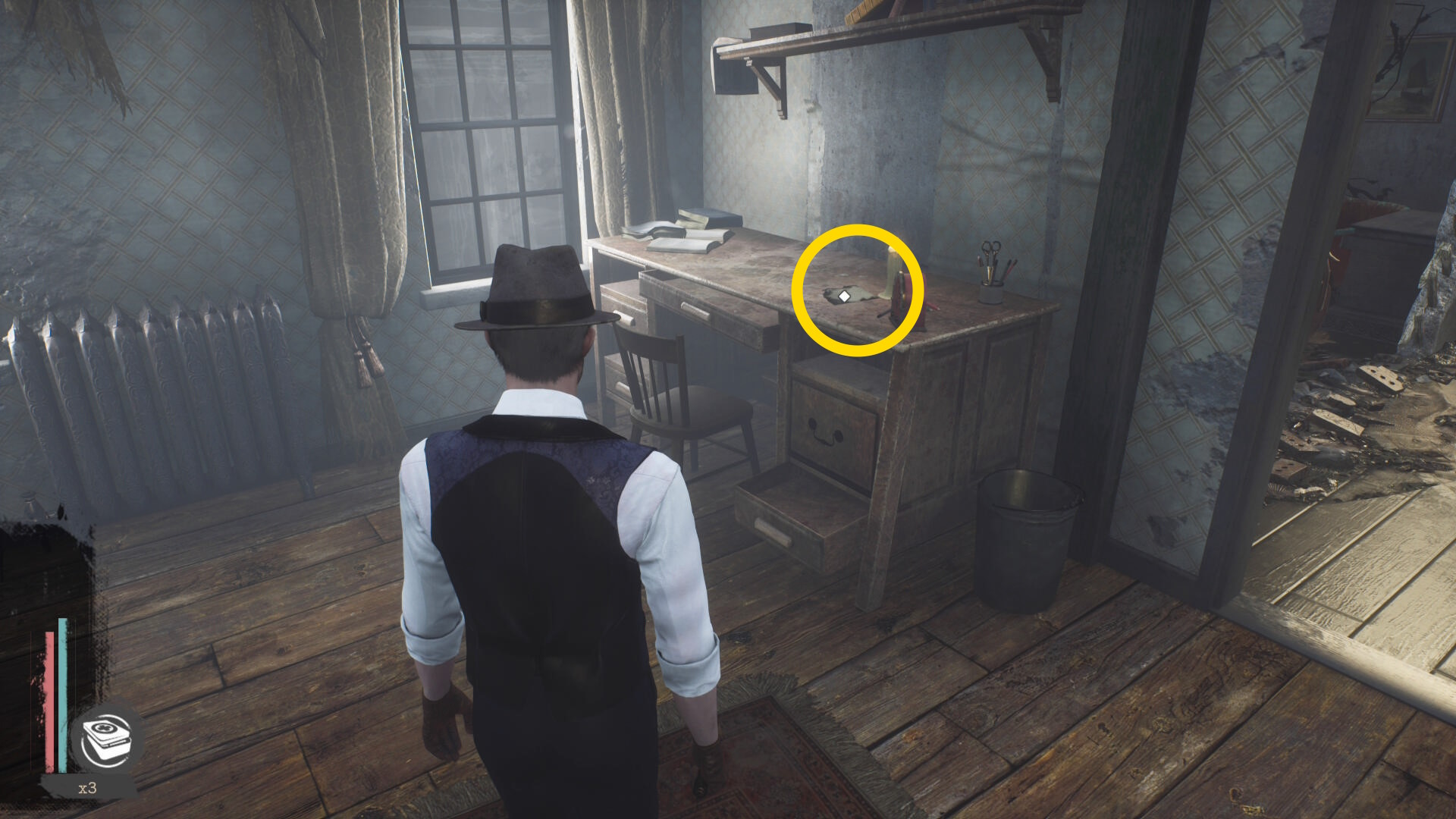 - 隣の部屋に入り、床の日記を回収