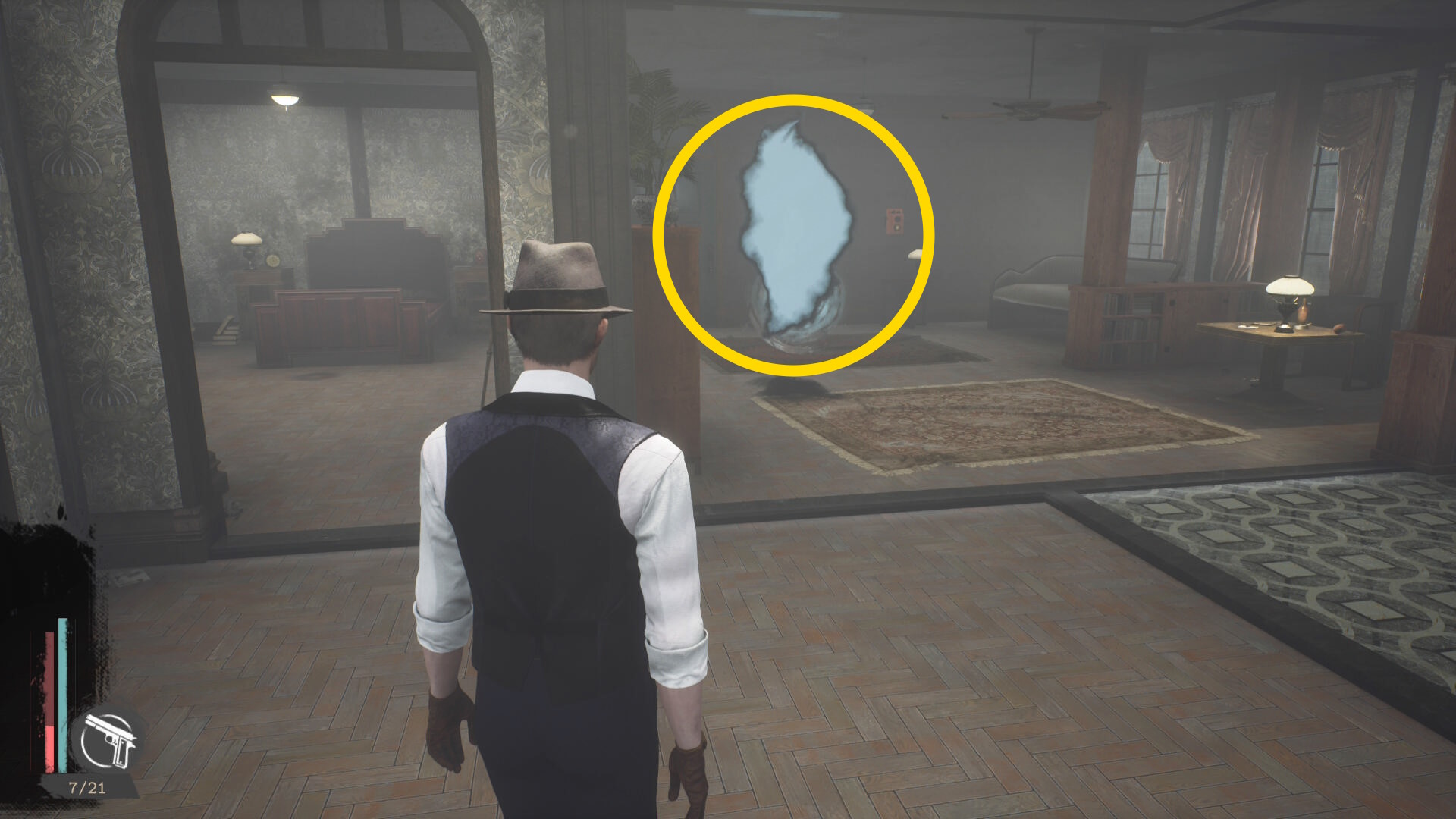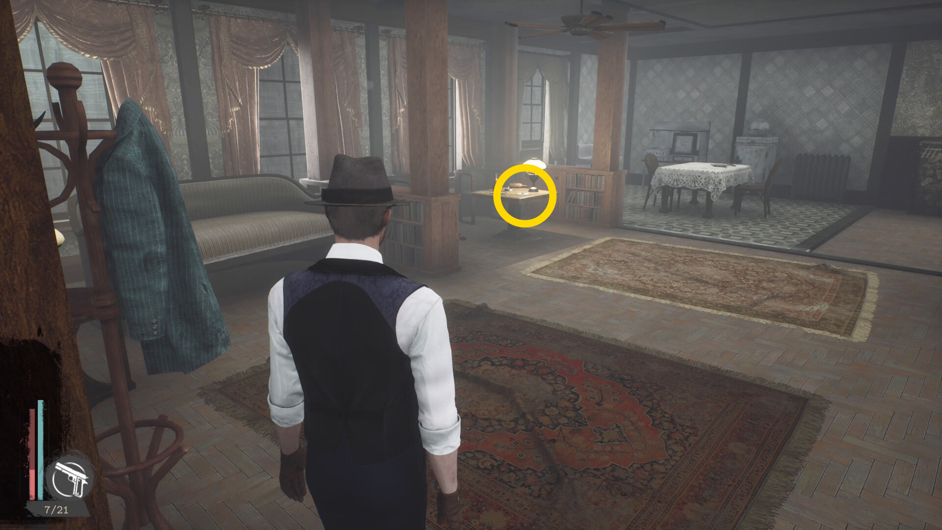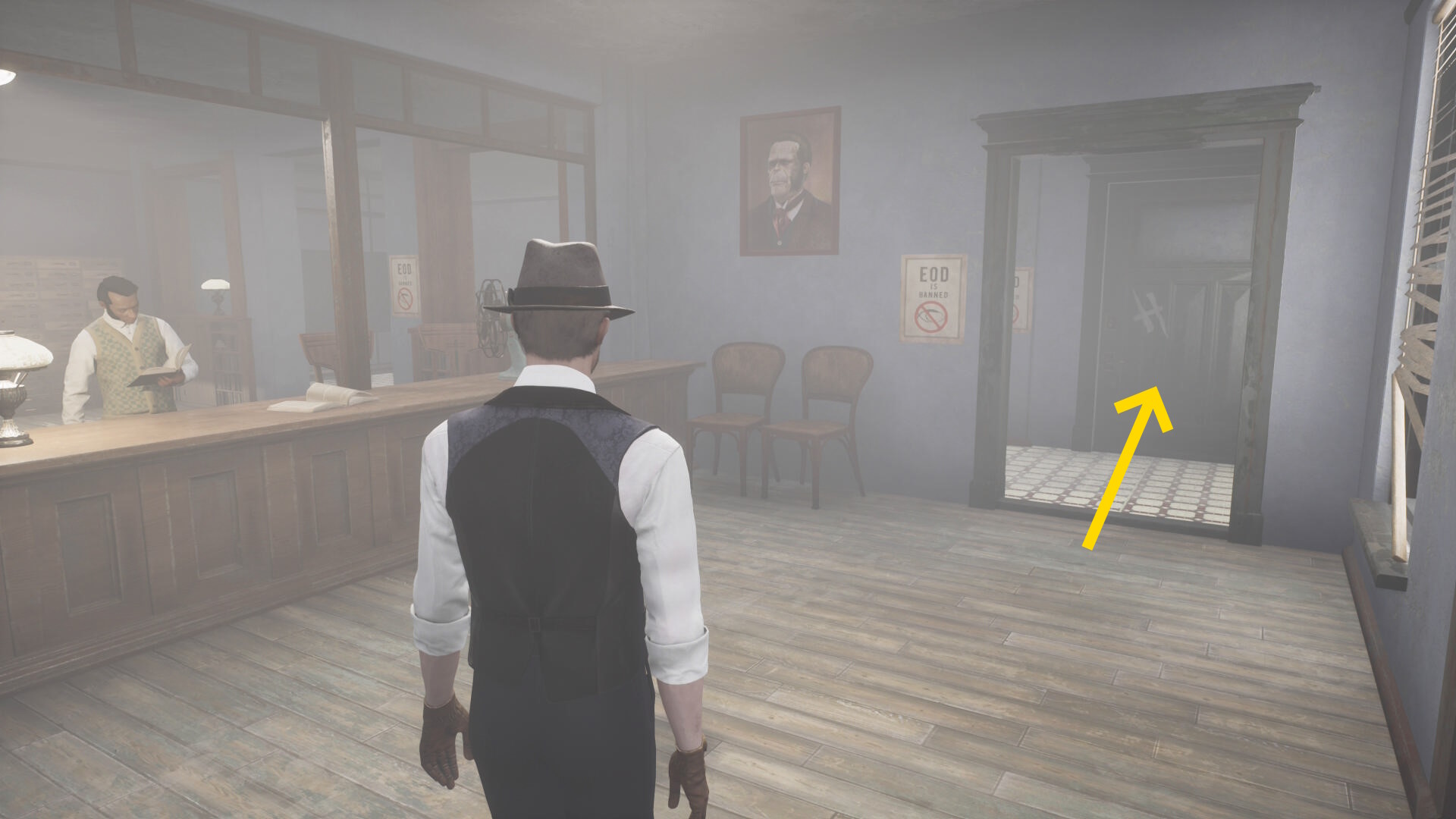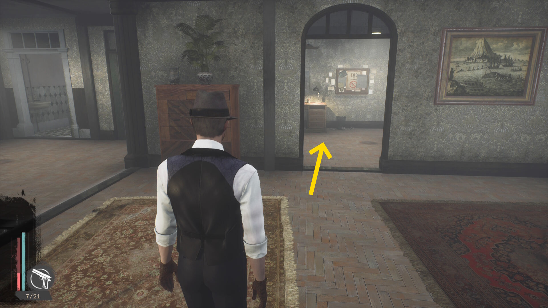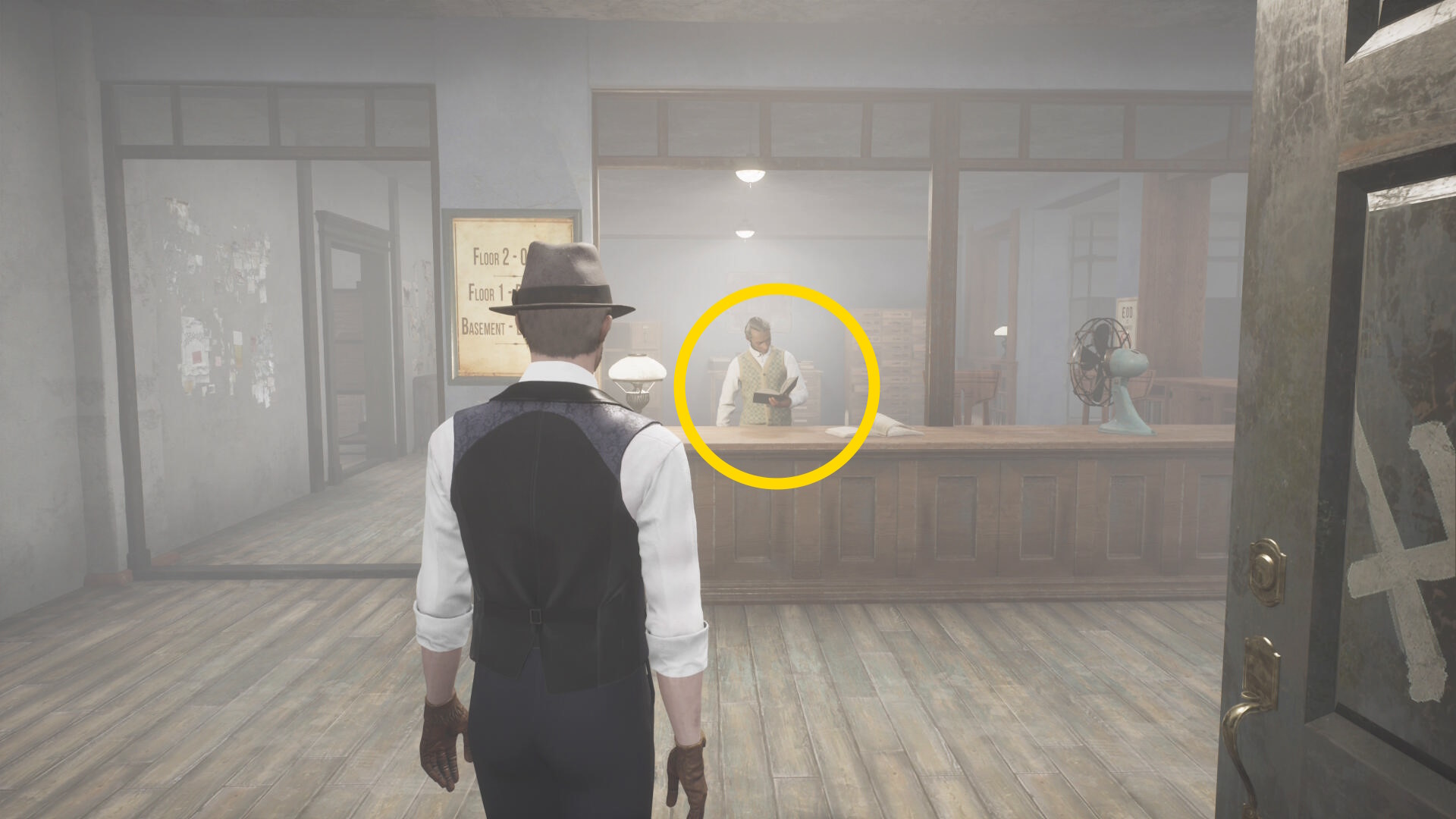 - エバーノートとの会話後、奥に見える水槽の前にウォルターがいるので会話