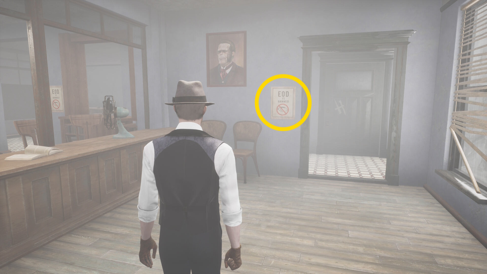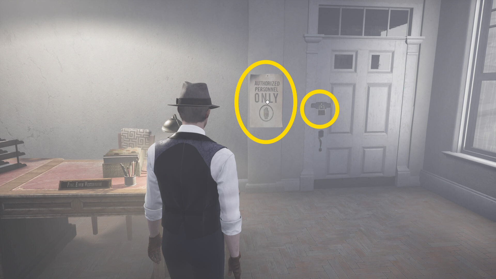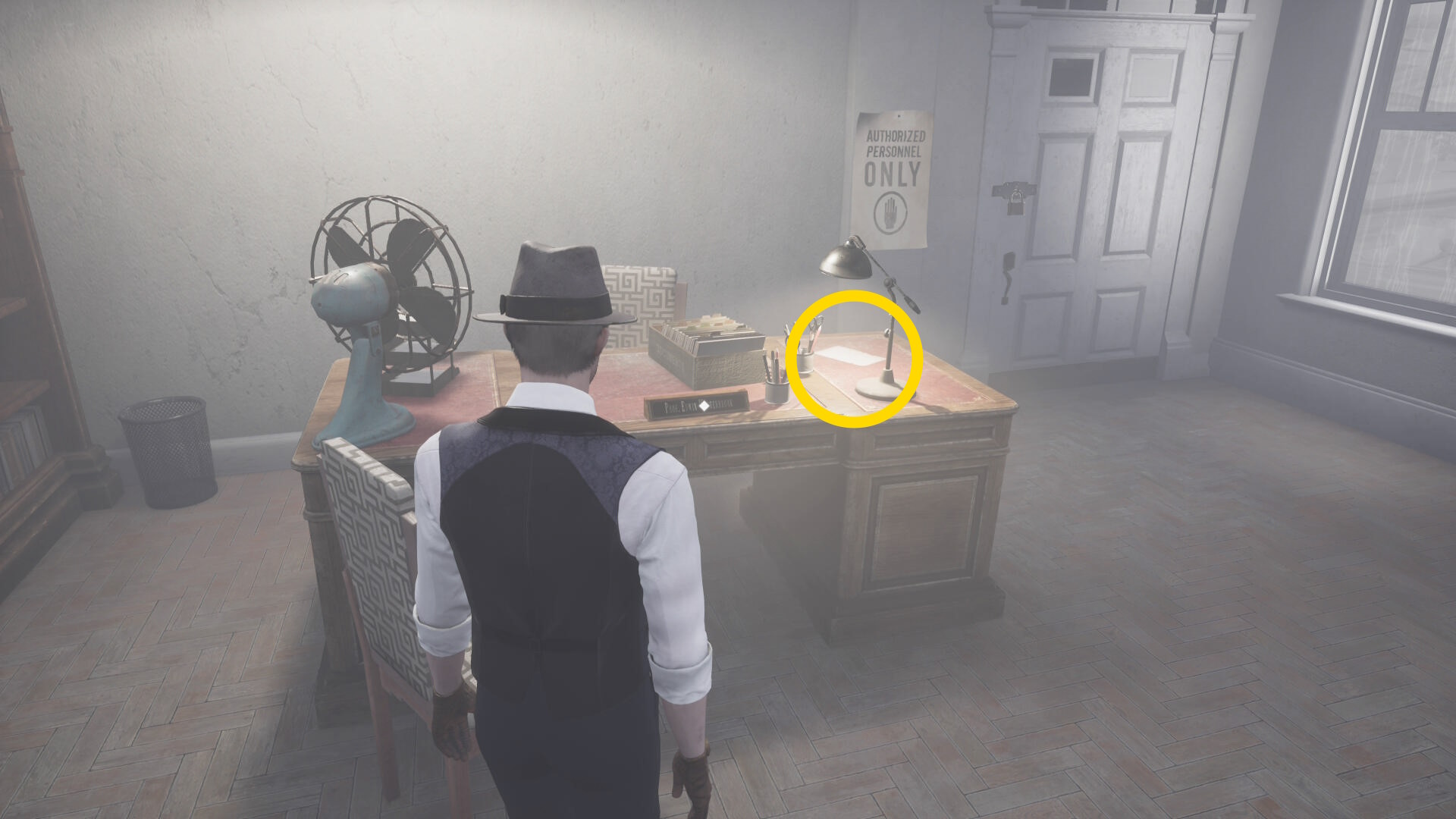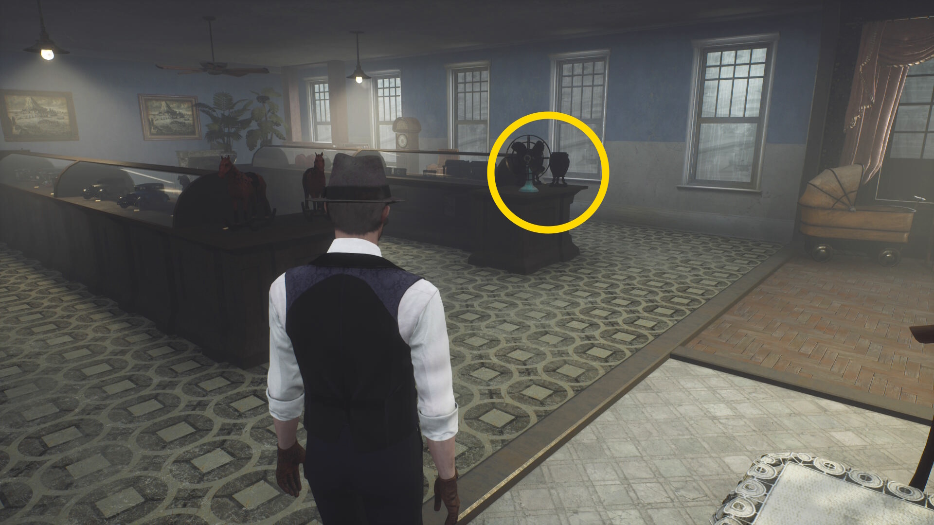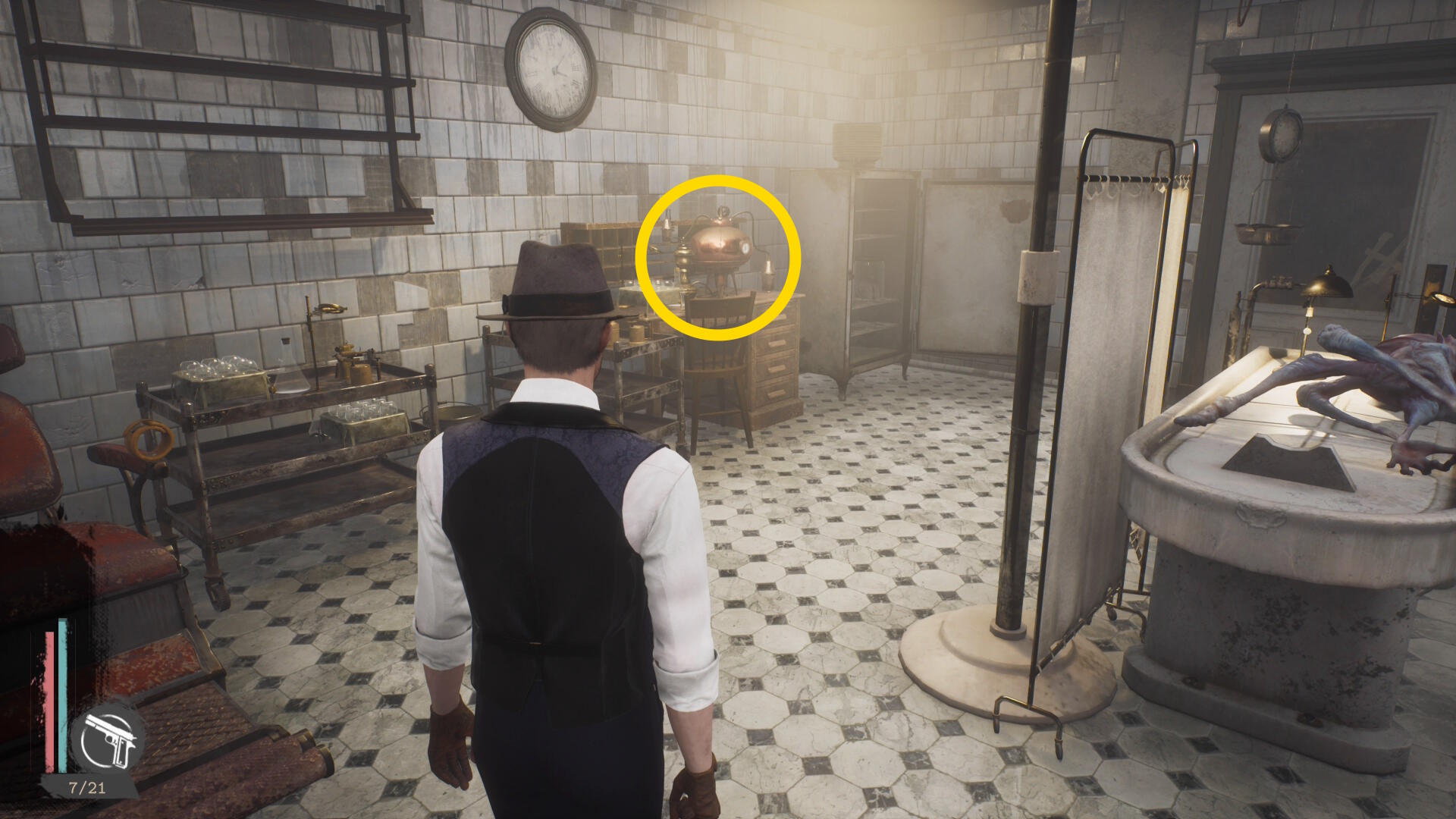 - エバーノートとの会話後、奥に見える水槽の前にウォルターがいるので会話