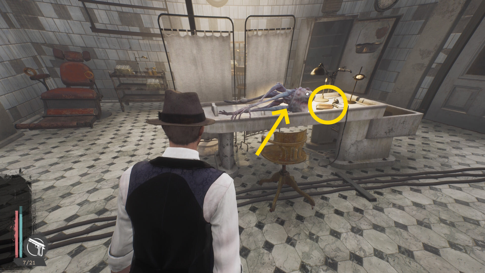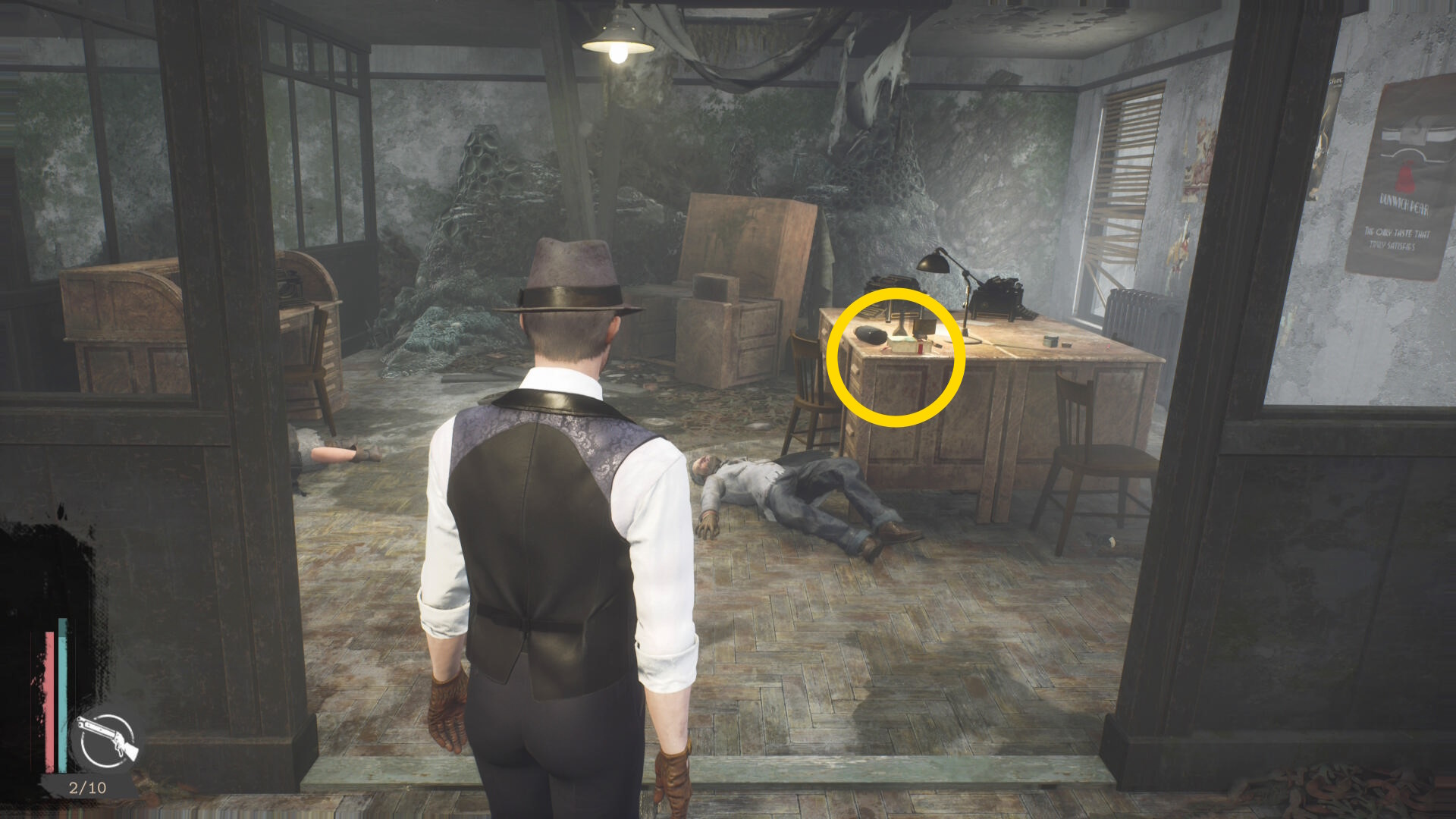 - 遺体がある部屋、机の素材(今回はショットガン弾)のところに手紙があるので調べる