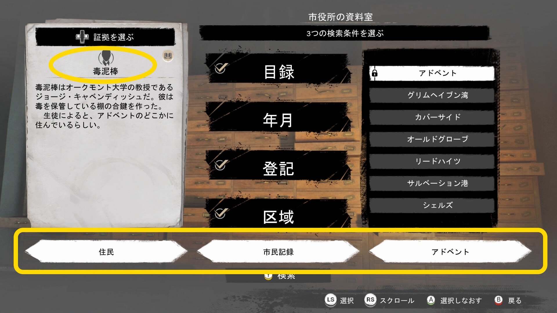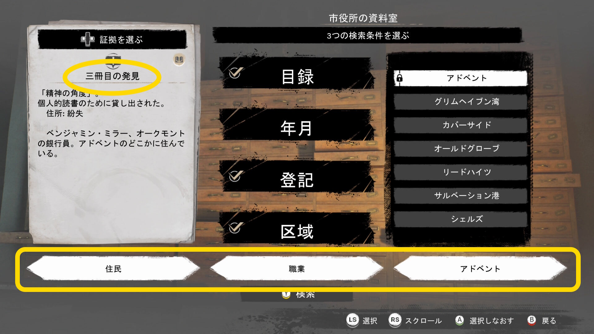 - 新しい手がかりを入手するので記憶の宮殿を開き、手がかりのペアを作る