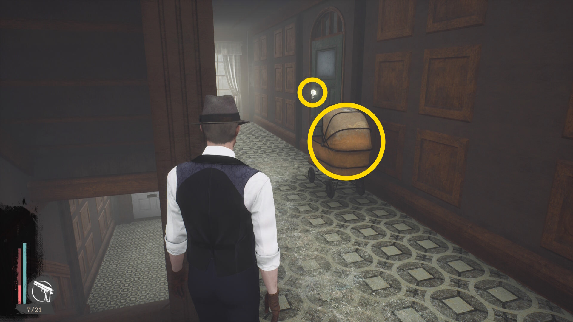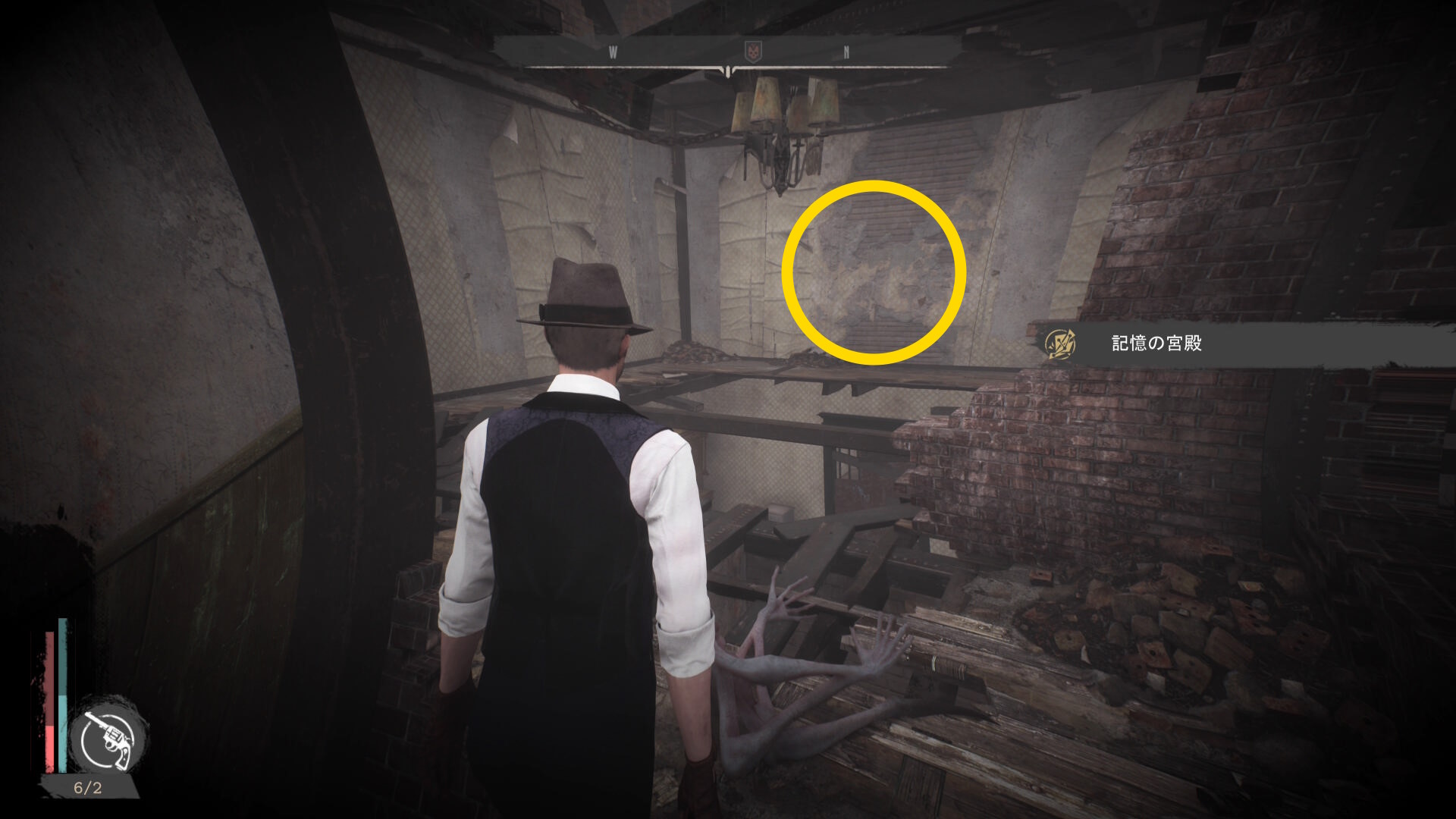 - 中に入り(敵が出現しなかった)、2階に上がる