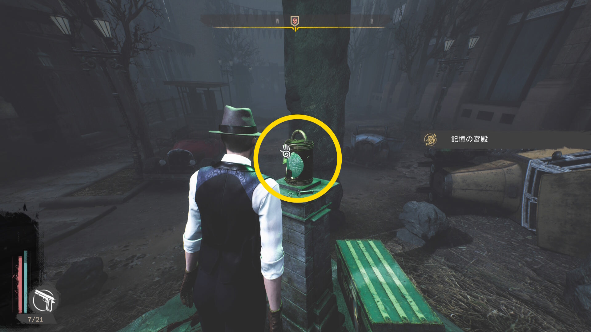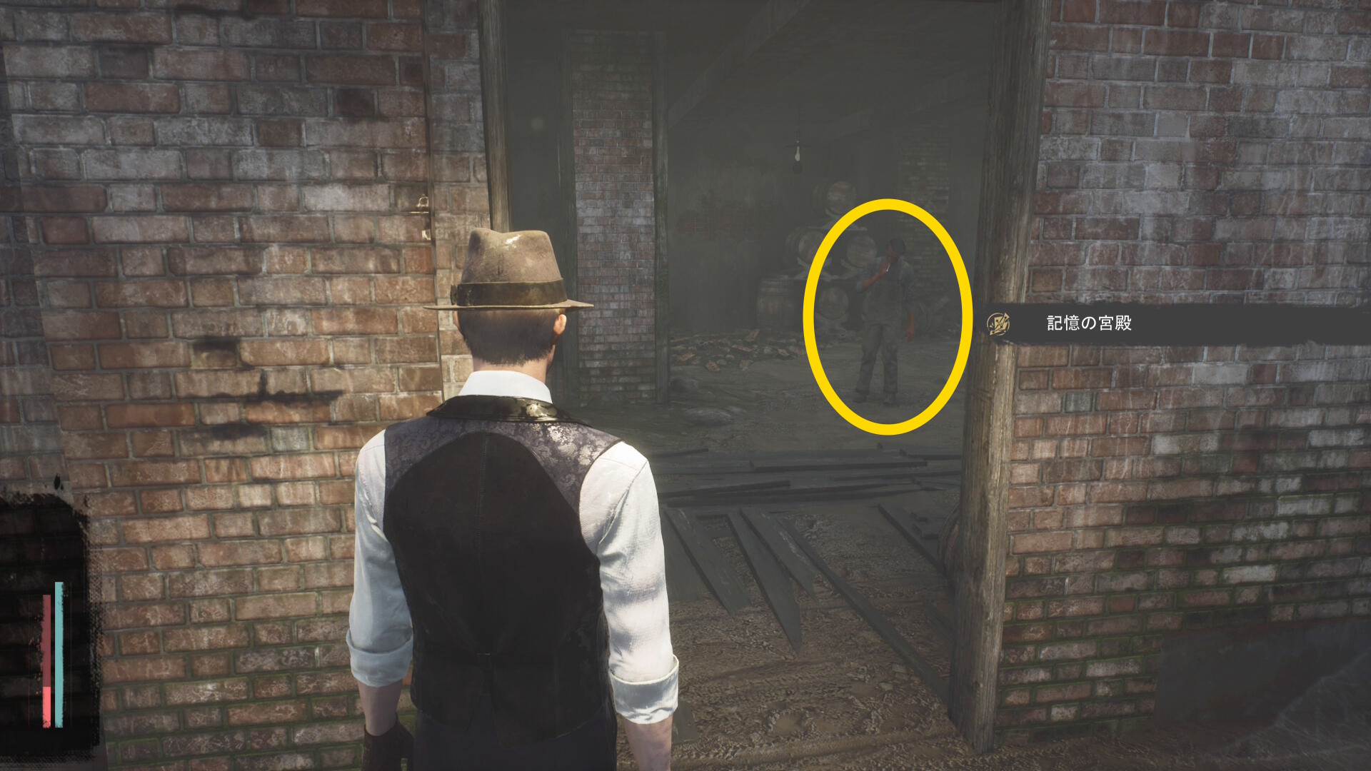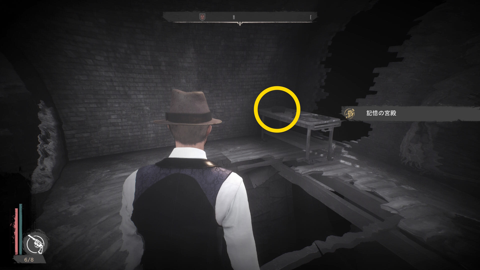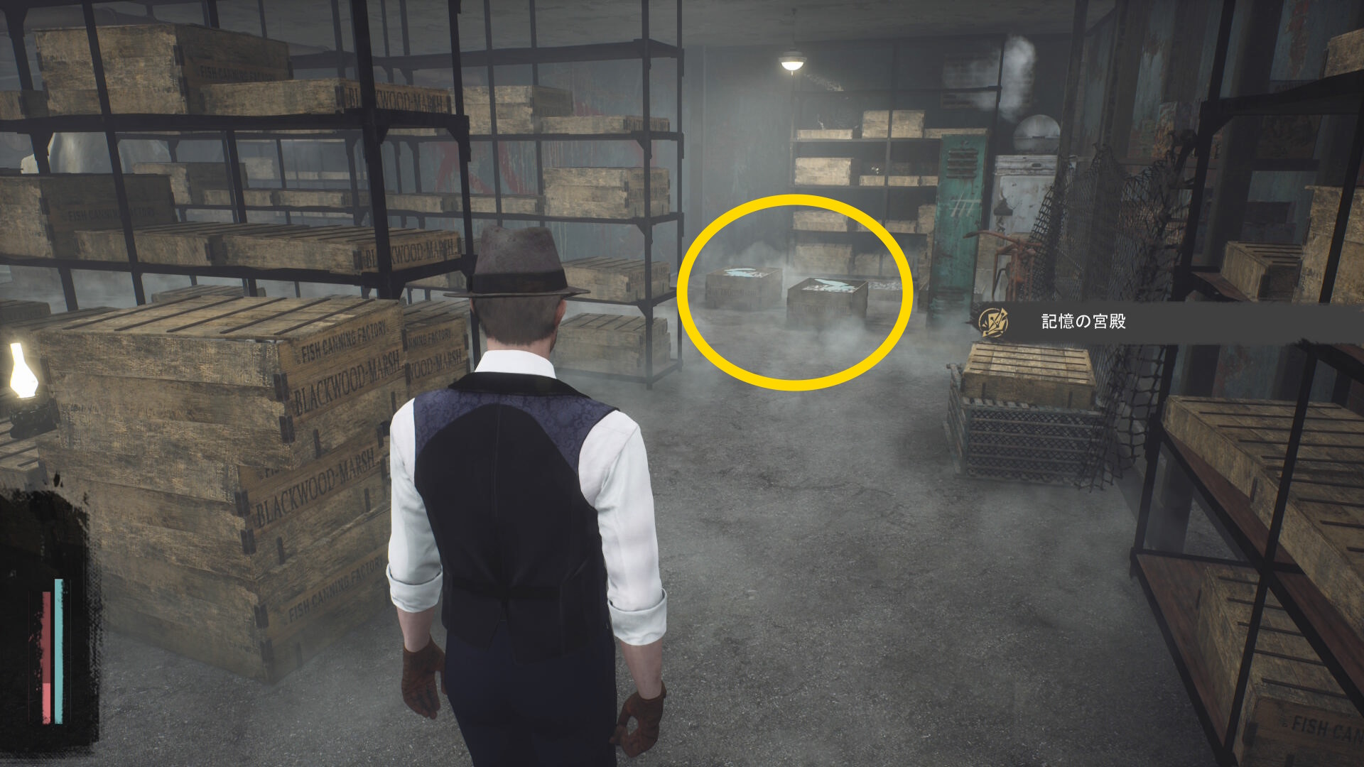 - 壁が消えたら正面の樽の上に 円筒( R.オルムステッド)があるので回収(経験値入手)