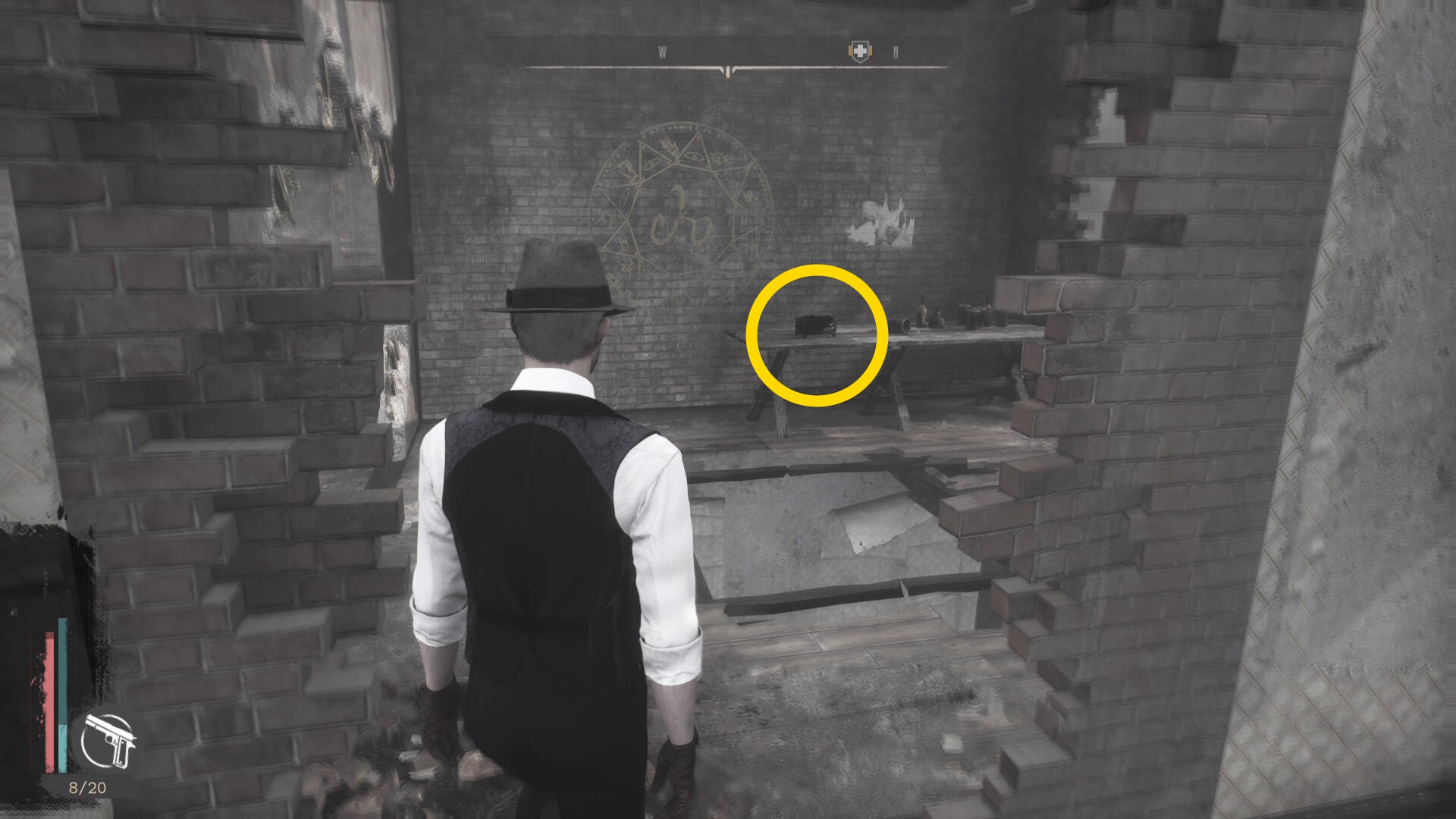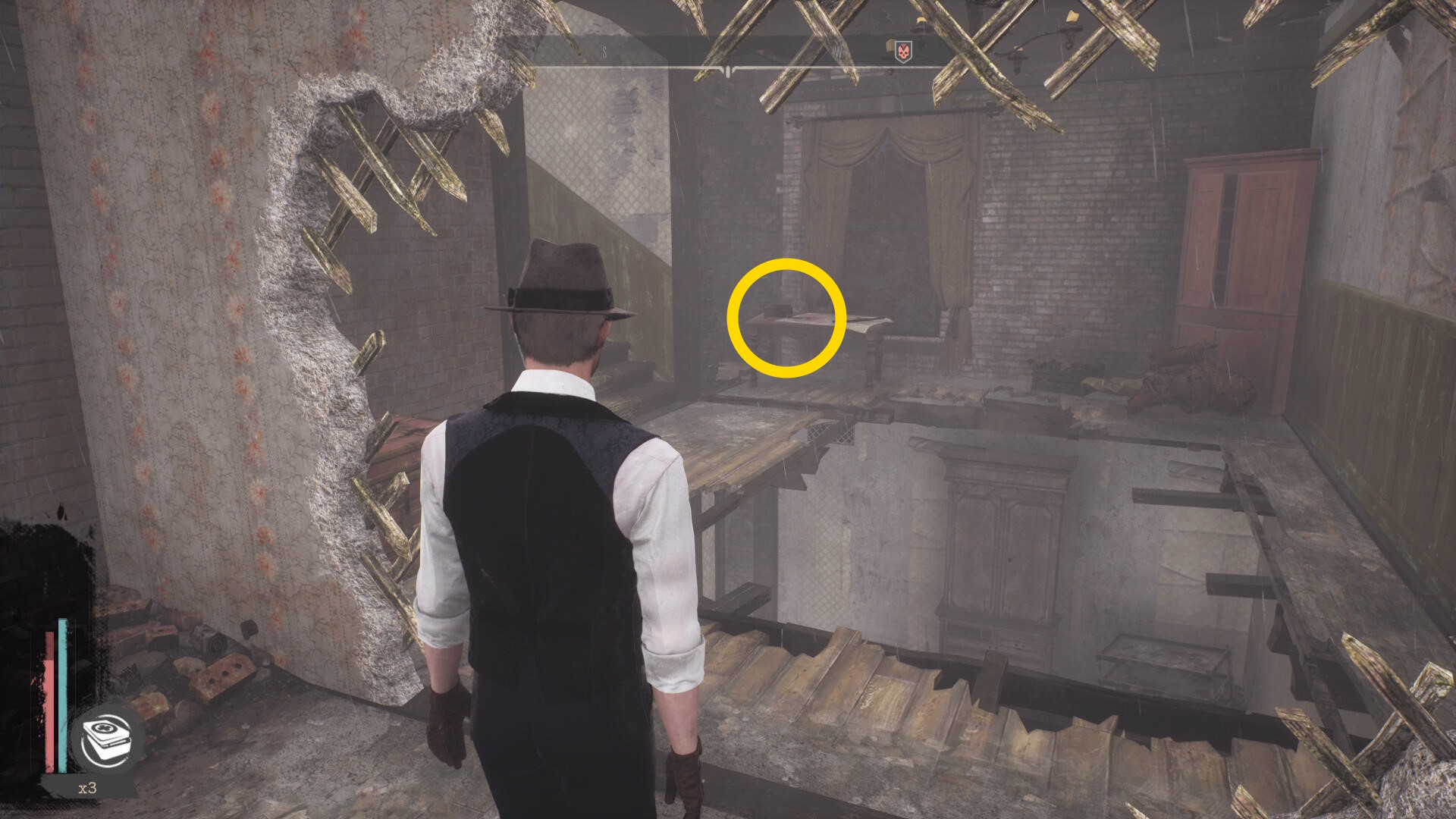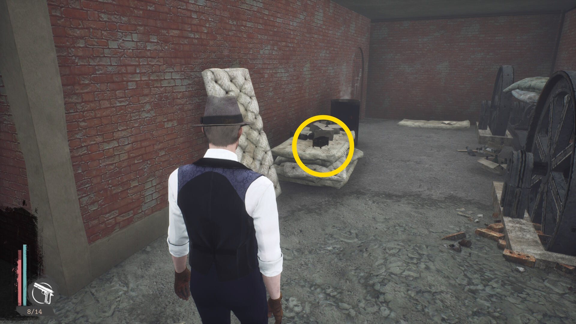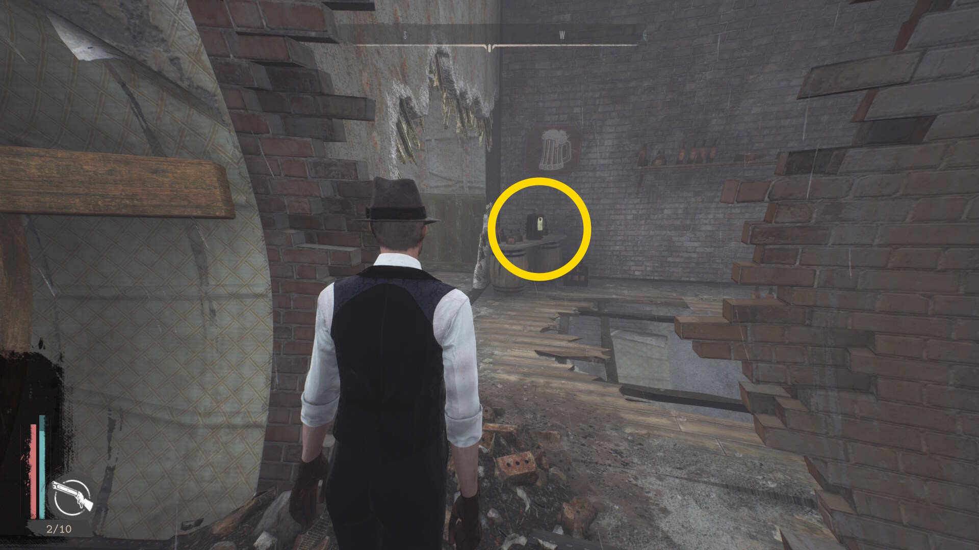 - 壁が消えたら正面の樽の上に 円筒( R.オルムステッド)があるので回収(経験値入手)