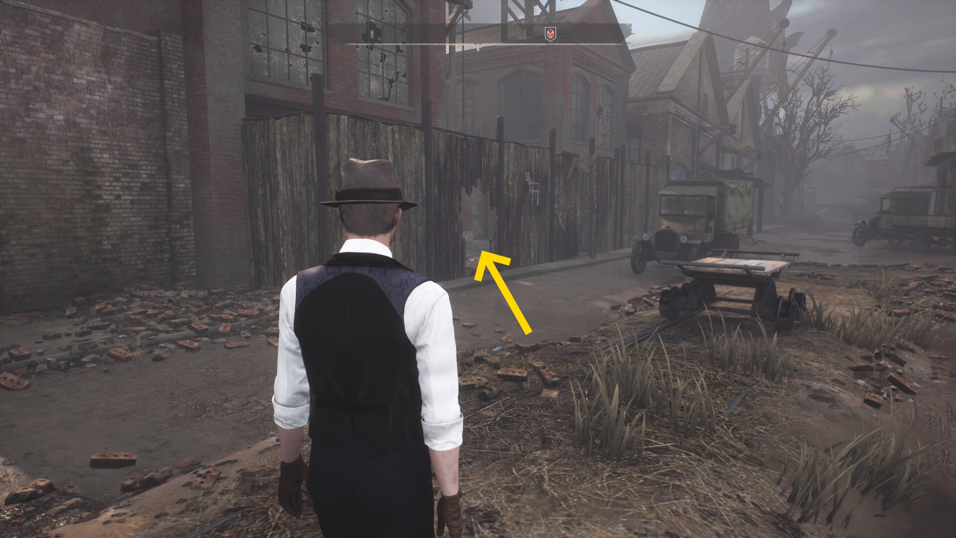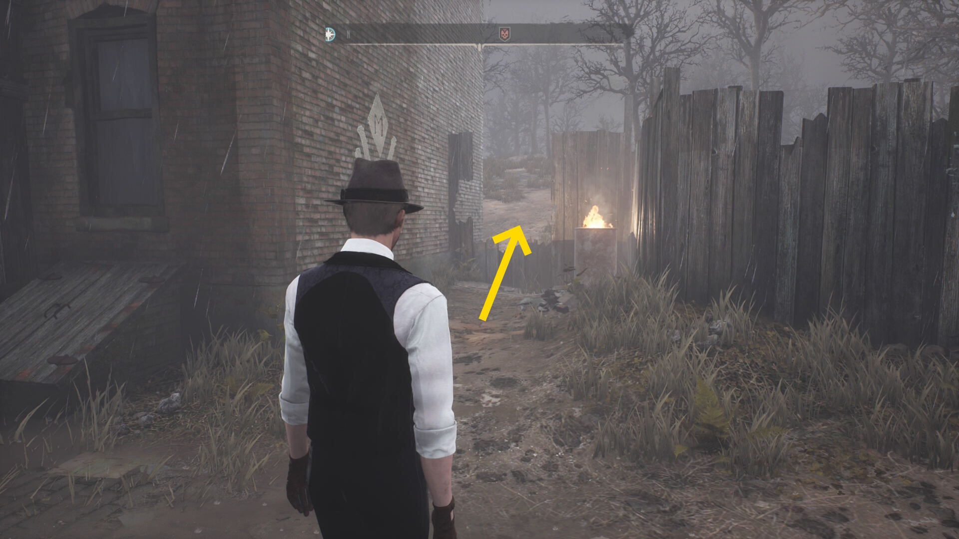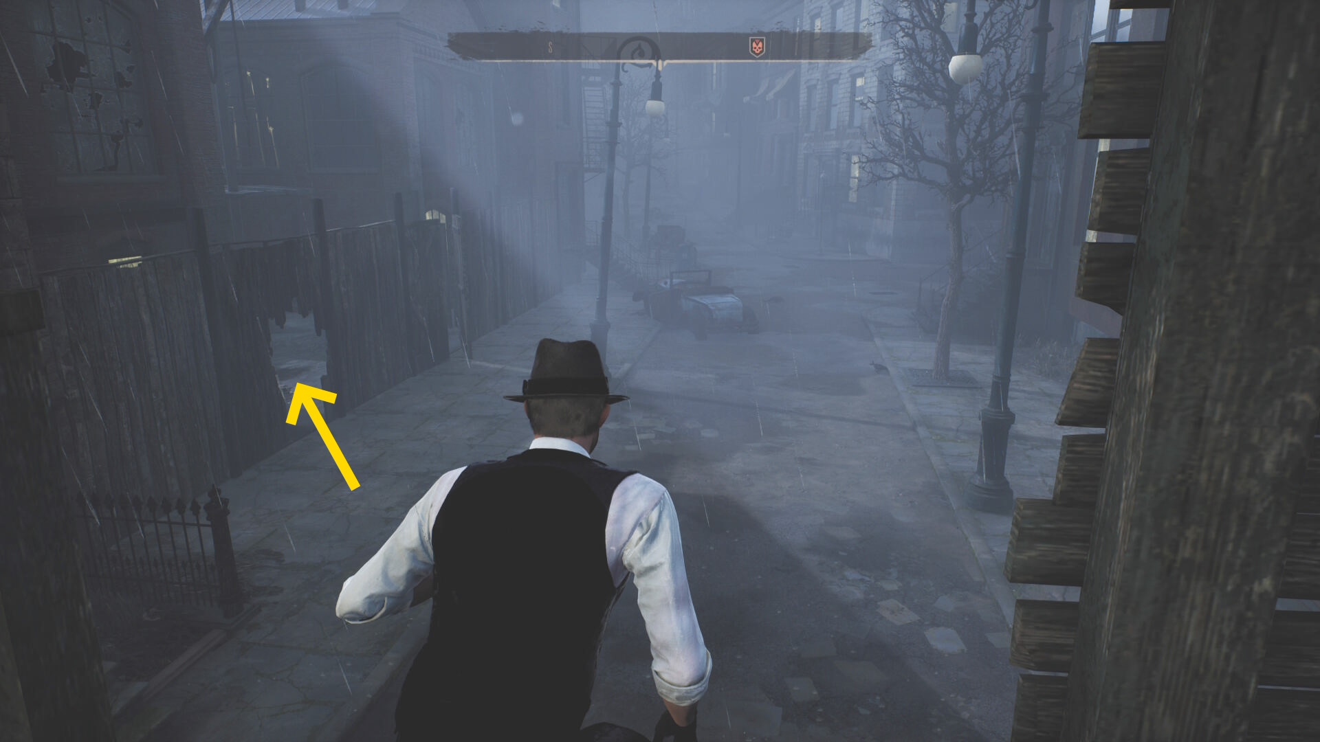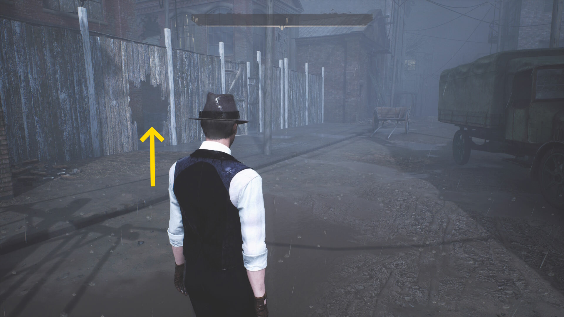 - 木の塀に穴が空いているところから侵入