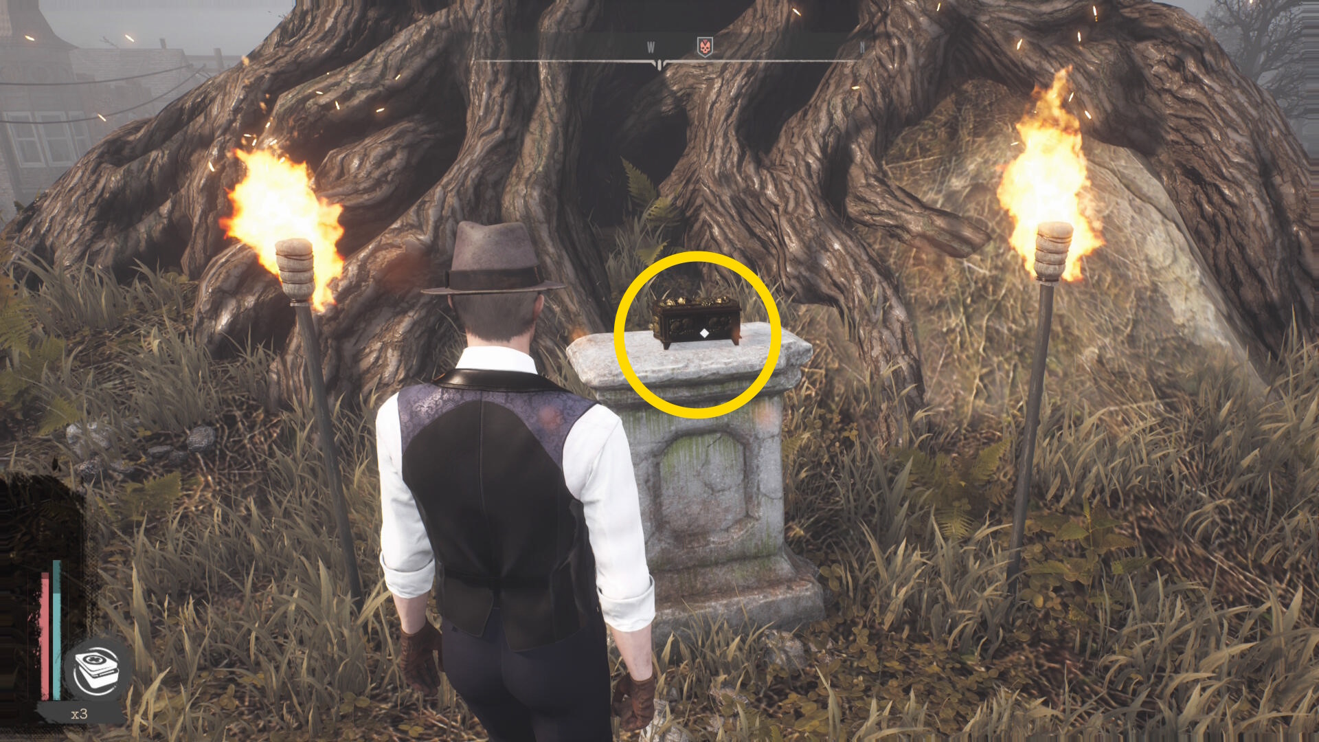 - 中に入って左を向くと 箱(冠)があるので回収(経験値入手)