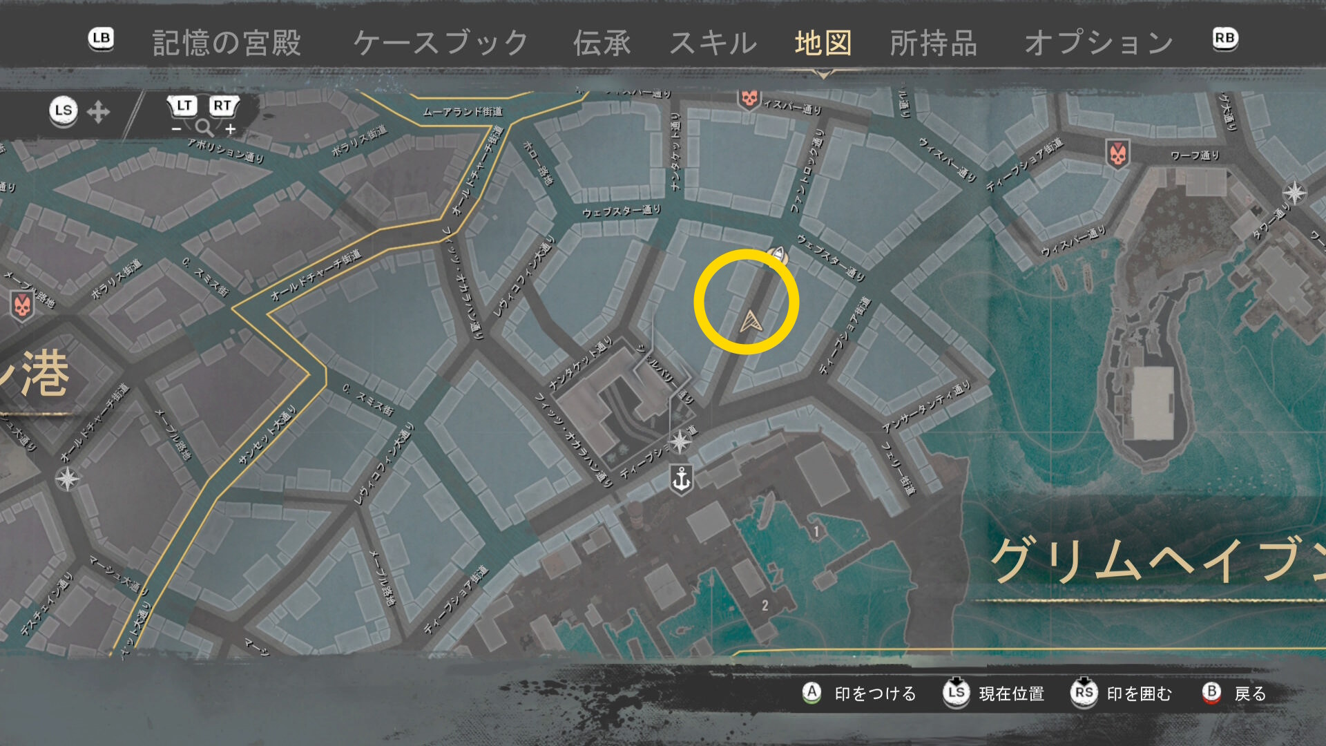- そこから「グリムヘイブン湾 中央」にファストトラベル