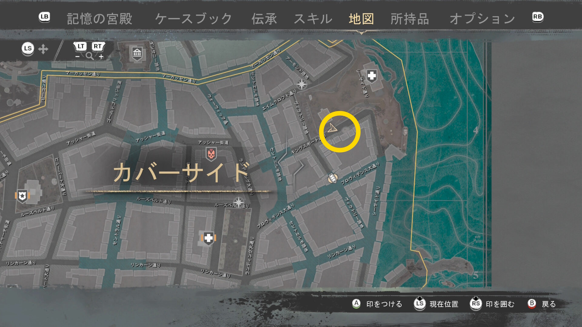 - ファストトラベルポイント「カバーサイド 中央」に戻る