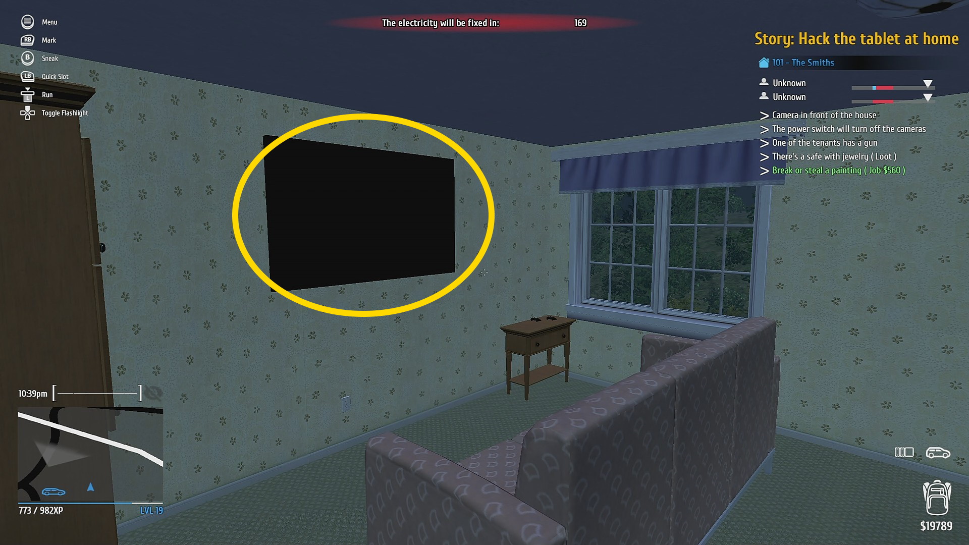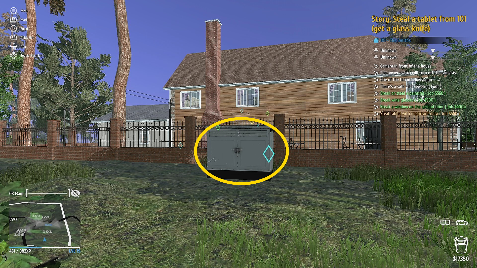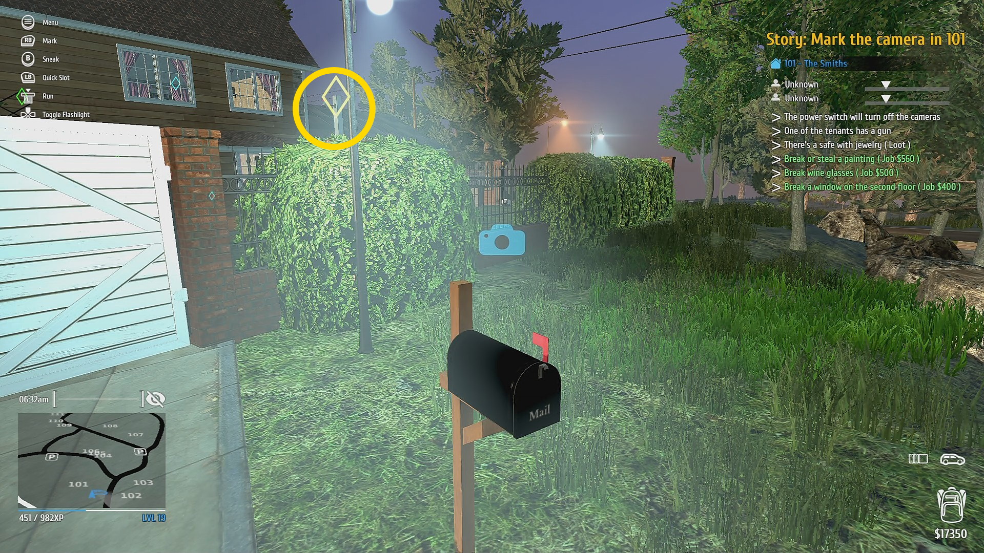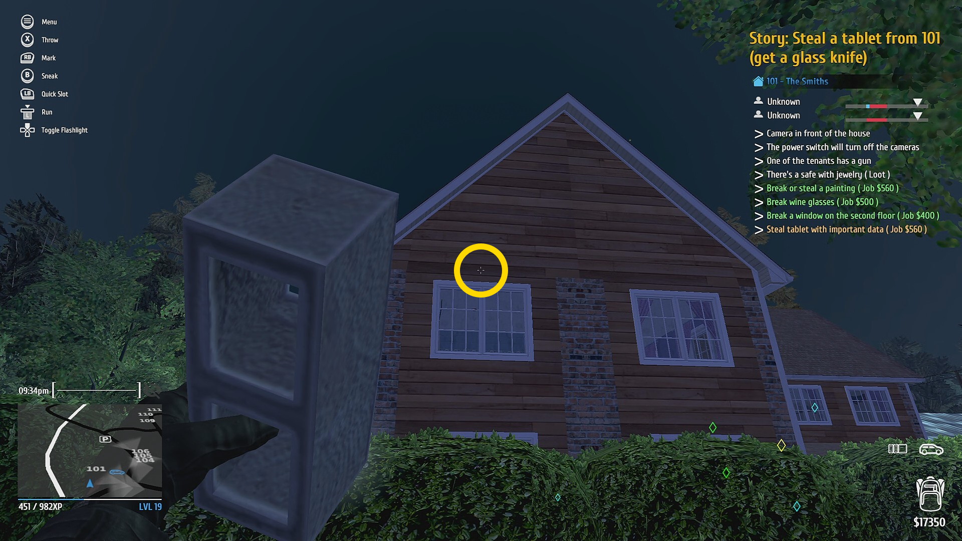 - 正面玄関を Mini Electric Lockpick で解錠し、2階へ (家に入る前、ゲートを開けておくと後で脱出がスムーズ)
