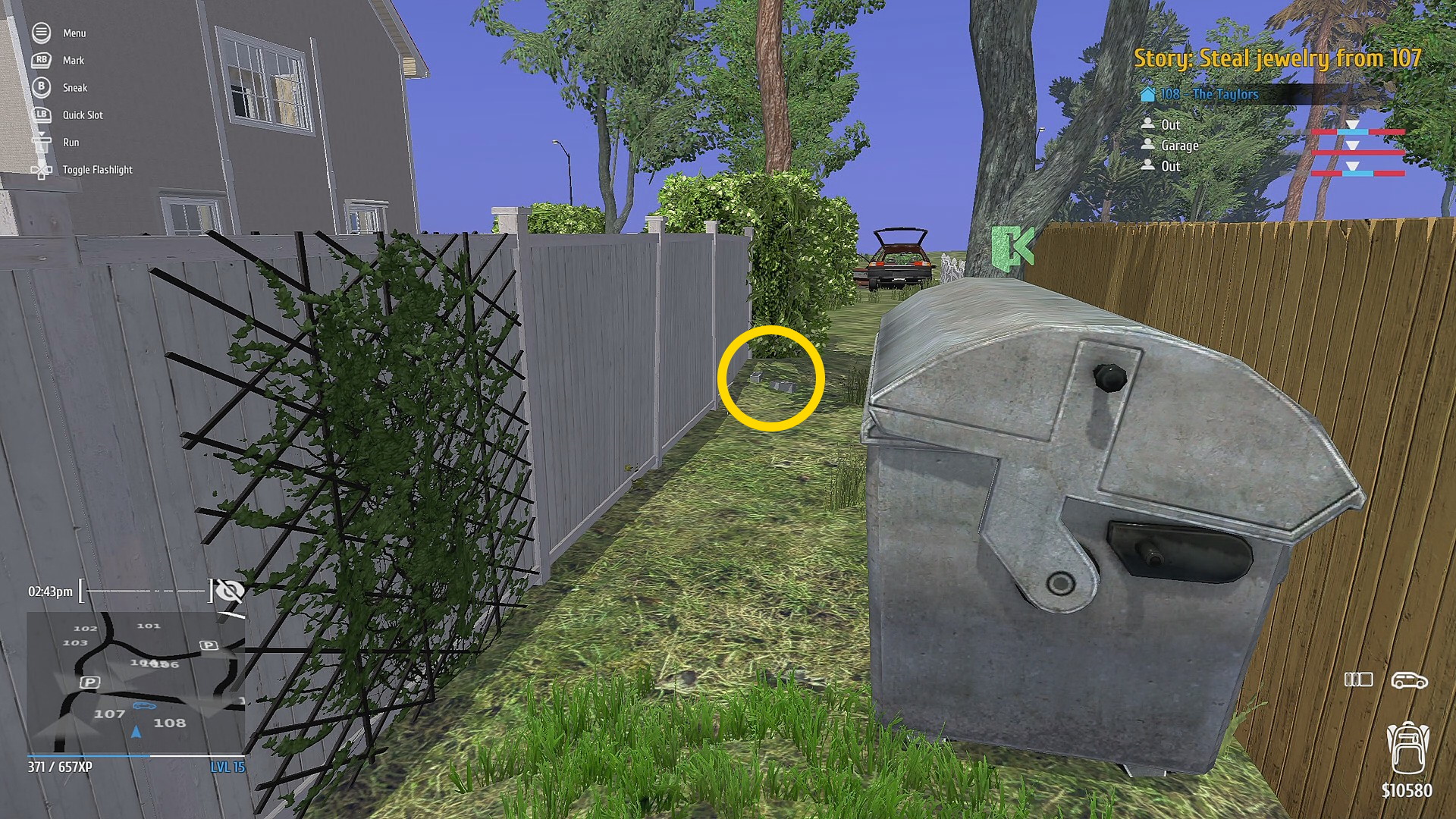 - 自宅に戻り、102に向かう前にパソコンで Rent-a-Thug にアクセスし、2件の依頼を受諾しておくこと