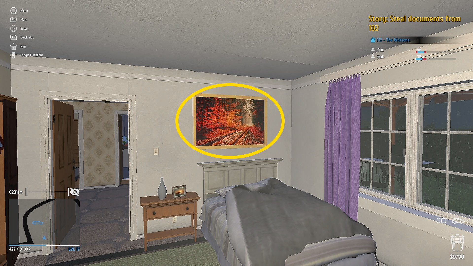 - バックパックに少し余裕があると思うのでリビングの壁に貼られた小さな絵画をいけるだけ回収し脱出