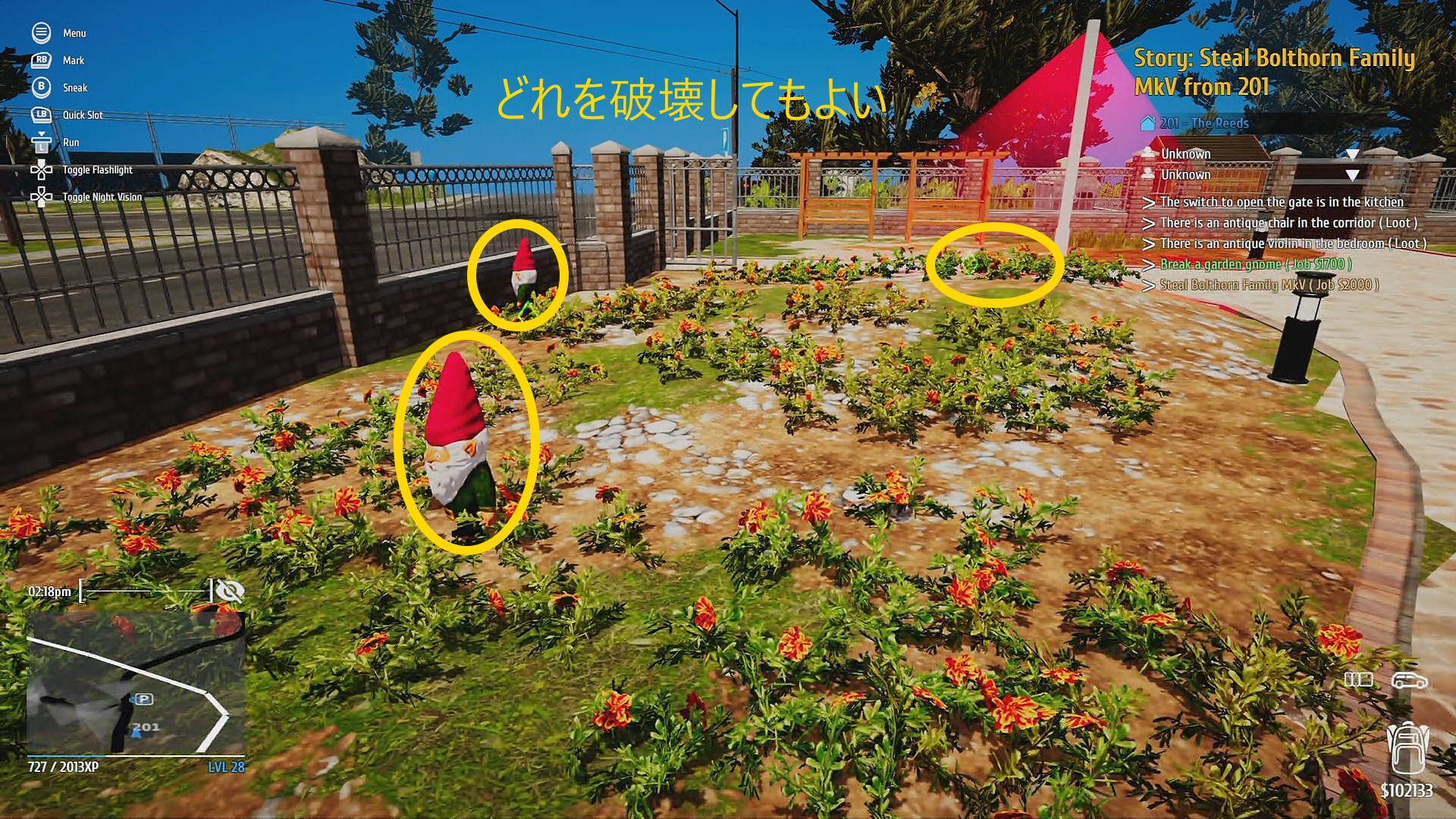 - 中に入ったらすぐ右側の花壇にあるノーム人形を破壊する。どれでもよい (依頼)